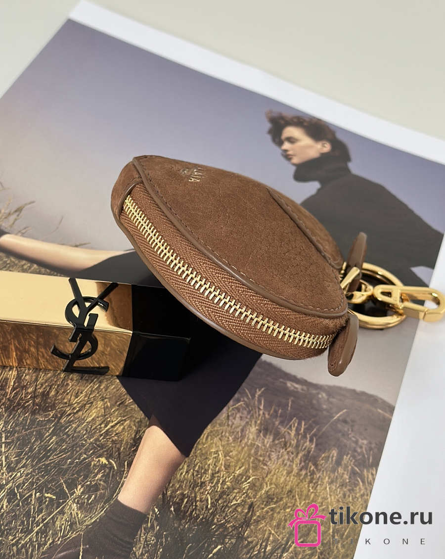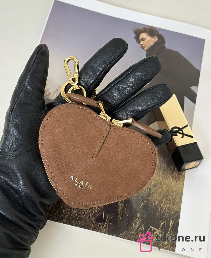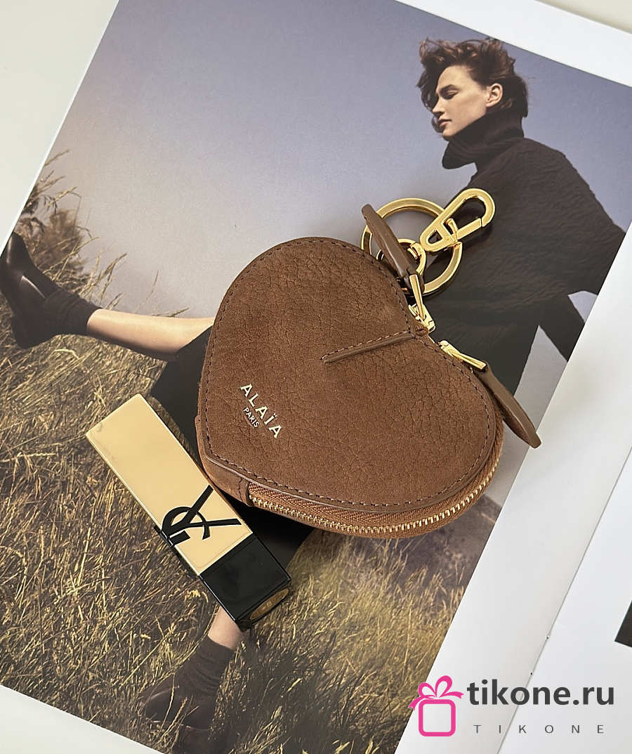 Alaia Le Cœur Mini Grained Nubuck Calfskin Coin Purse in Brown - 10x1.5x7.5cm