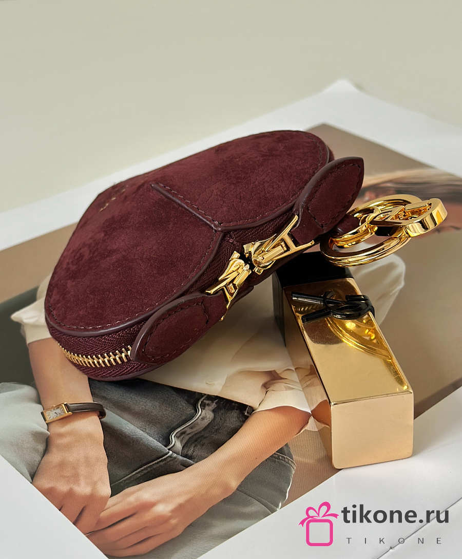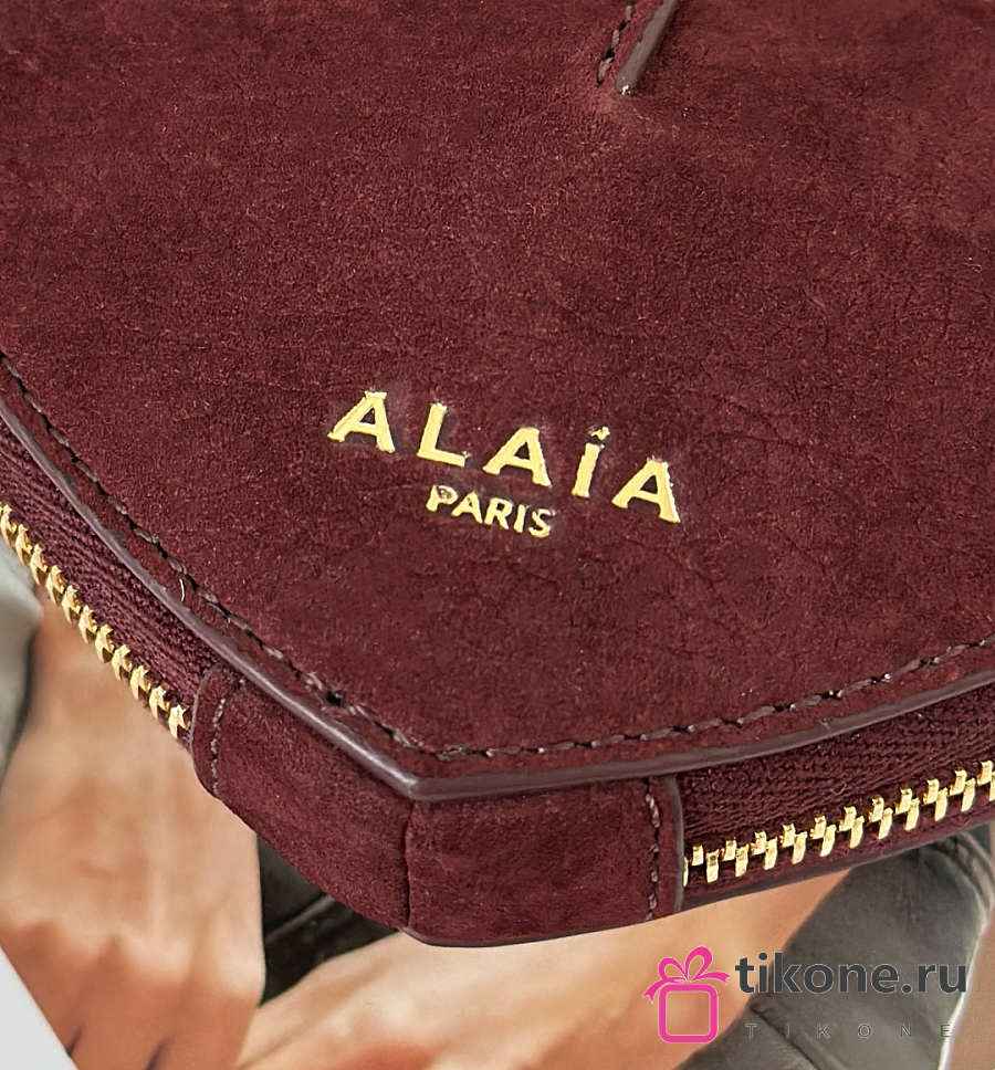 Alaia Le Cœur Mini Grained Nubuck Calfskin Coin Purse in Burgundy - 10x1.5x7.5cm