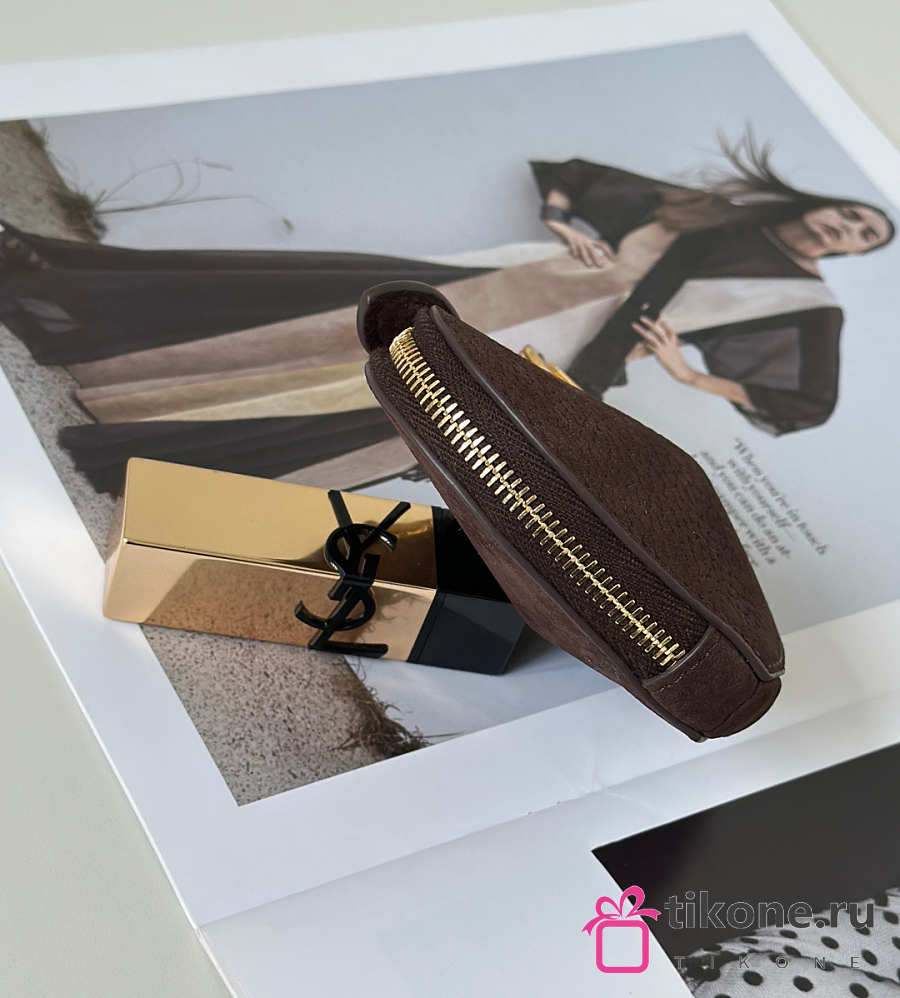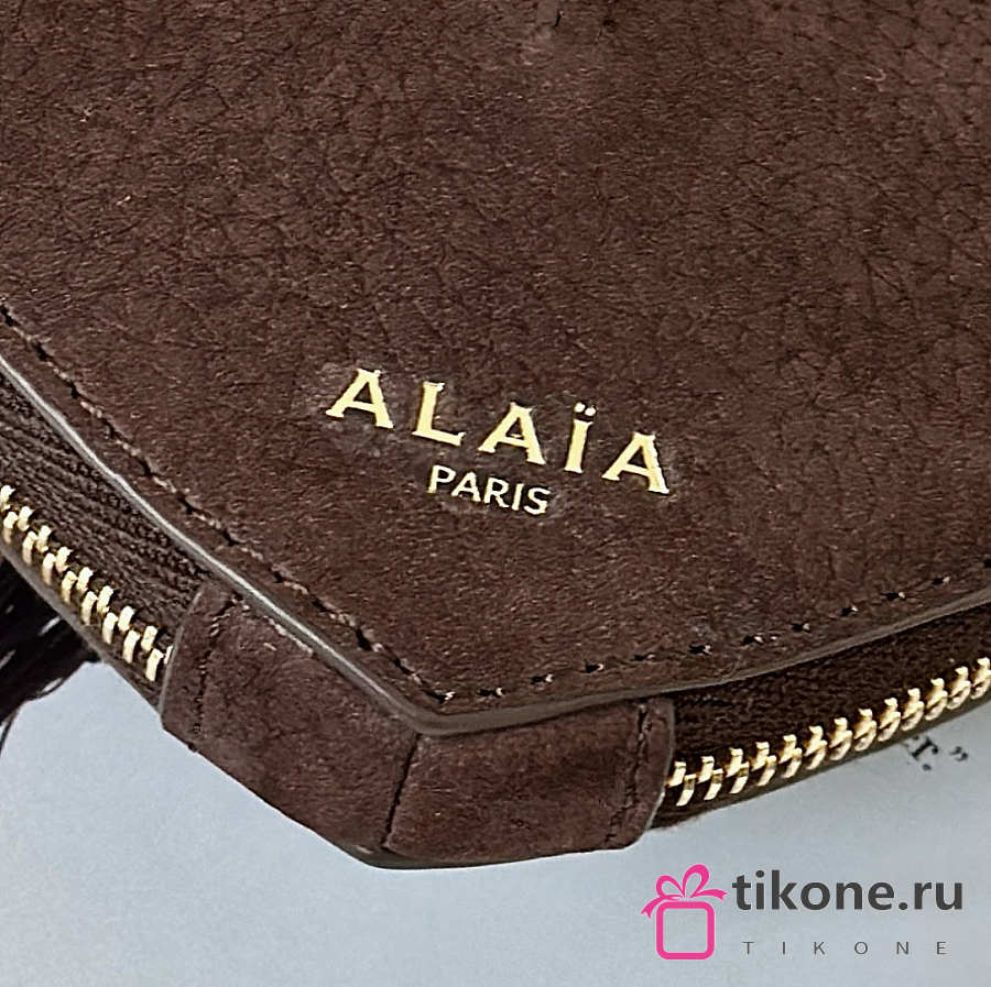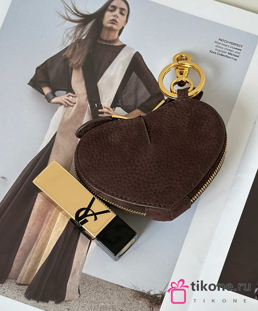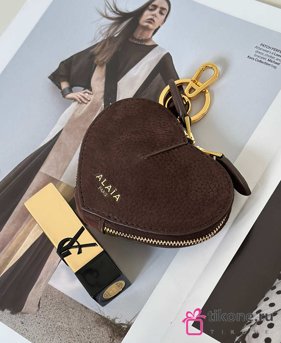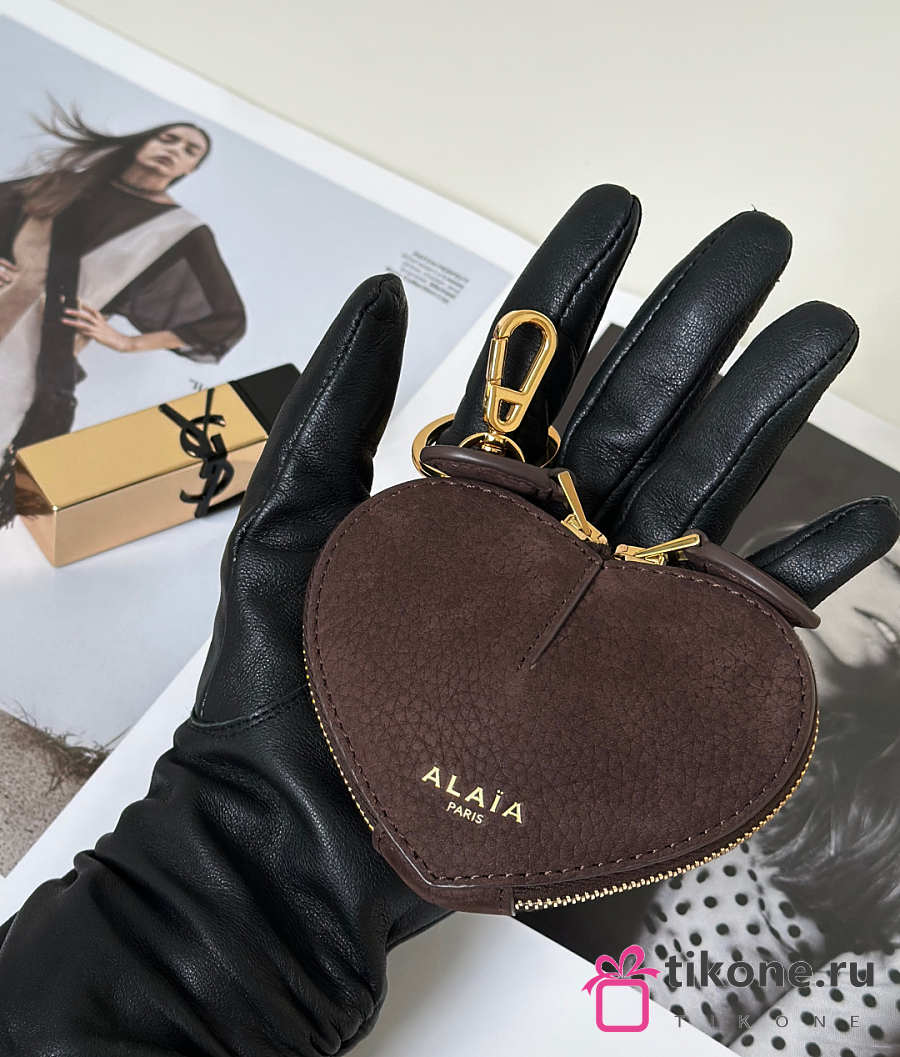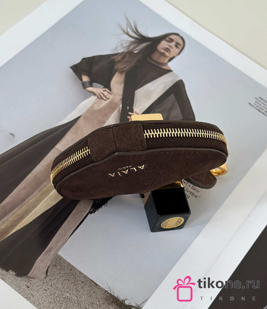 Alaia Le Cœur Mini Grained Nubuck Calfskin Coin Purse in Chocolate - 10x1.5x7.5cm