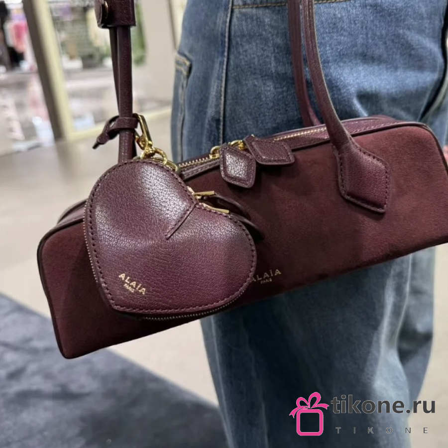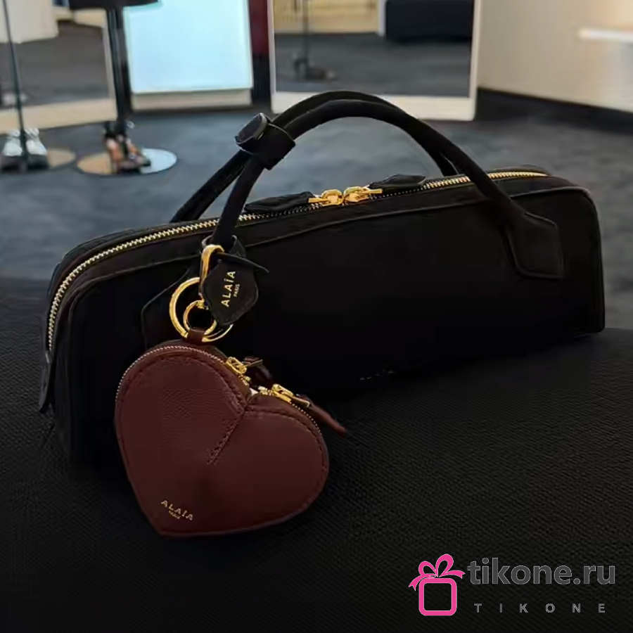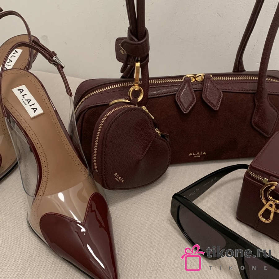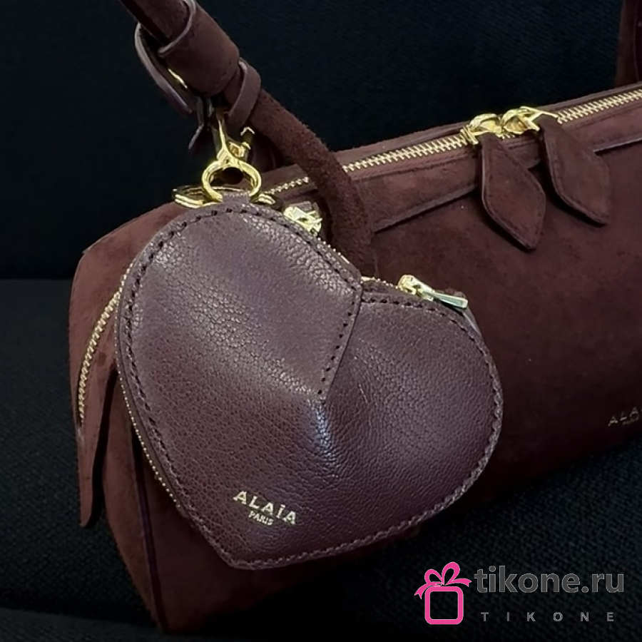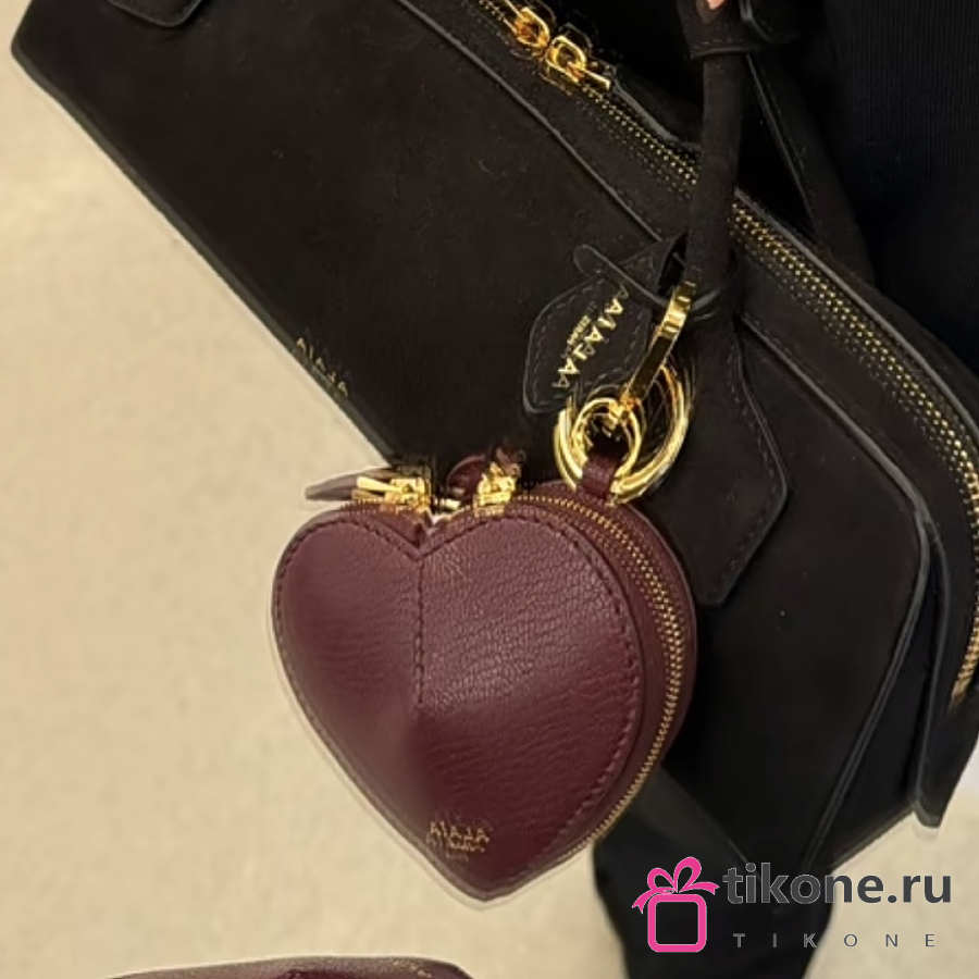 Alaia Le Cœur Mini Leather Coin Purse in Burgundy - 10x1.5x7.5cm