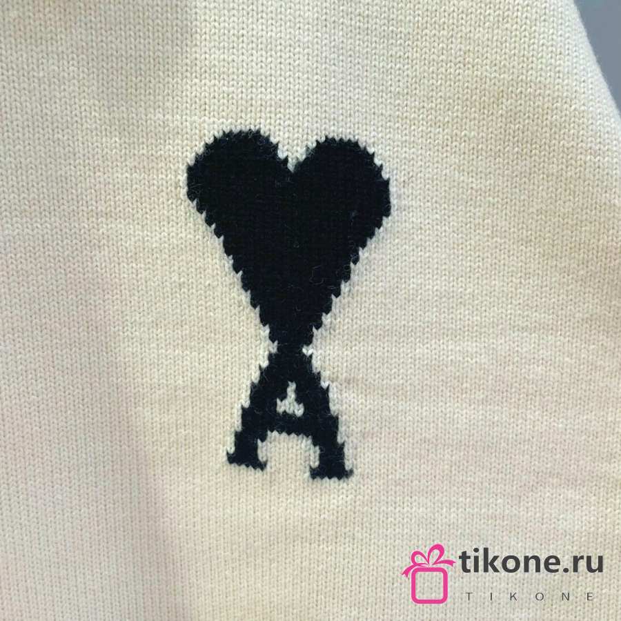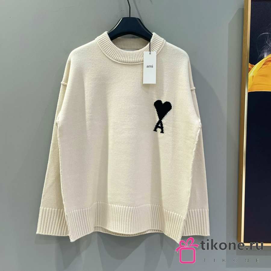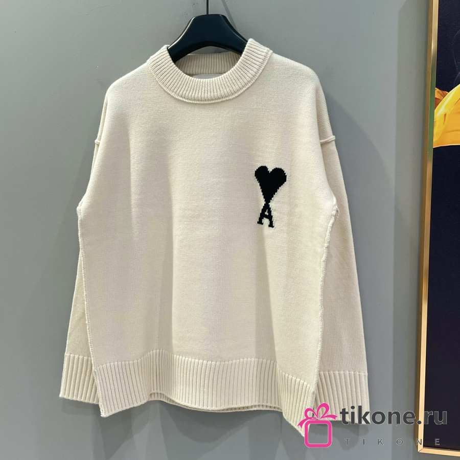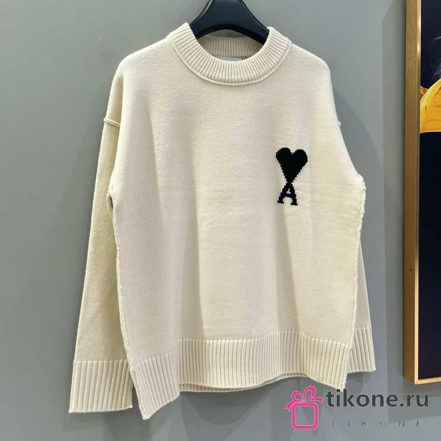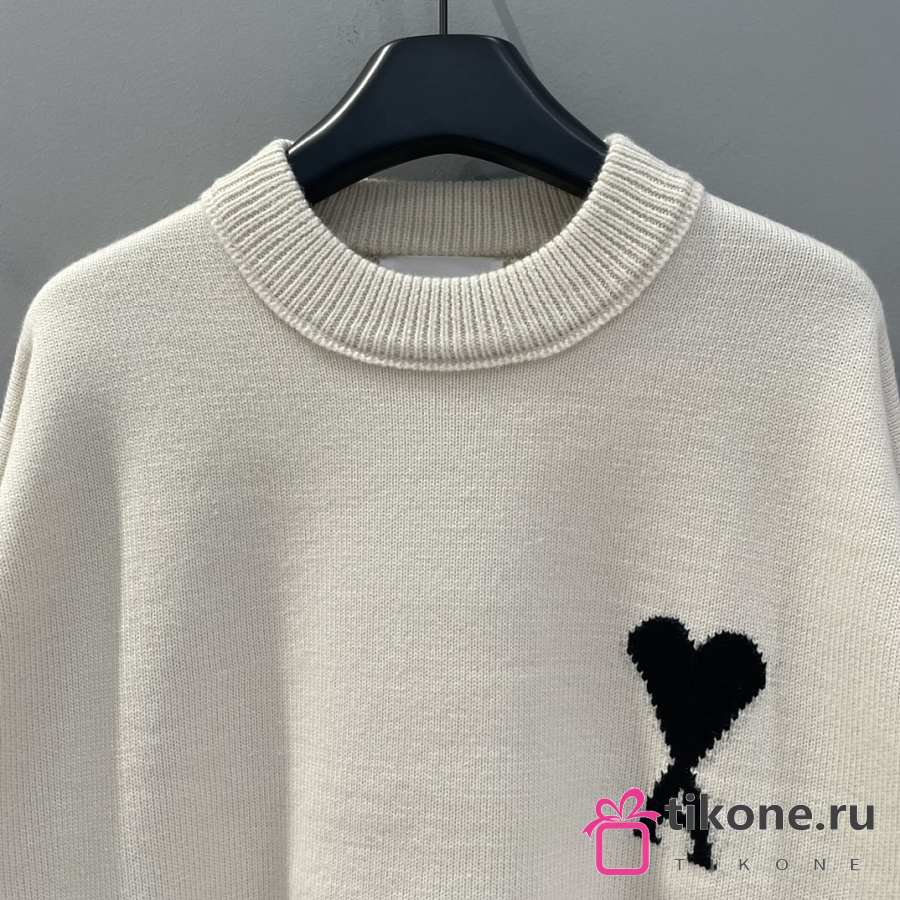 Ami Paris White Wool Ami De Coeur Crewneck Sweater Offwhite/Black