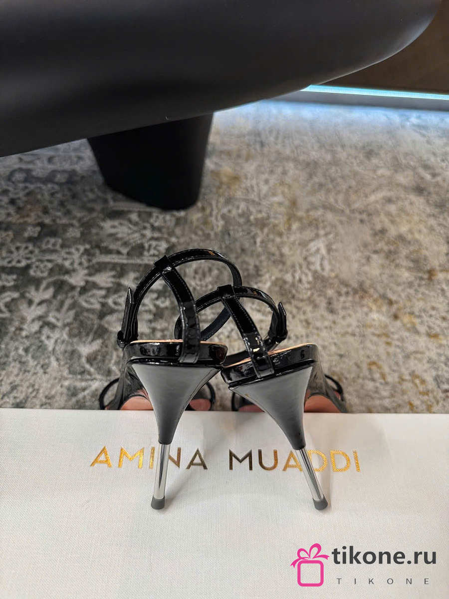 Amina Muaddi Bruna Sandal 95 Black Patent