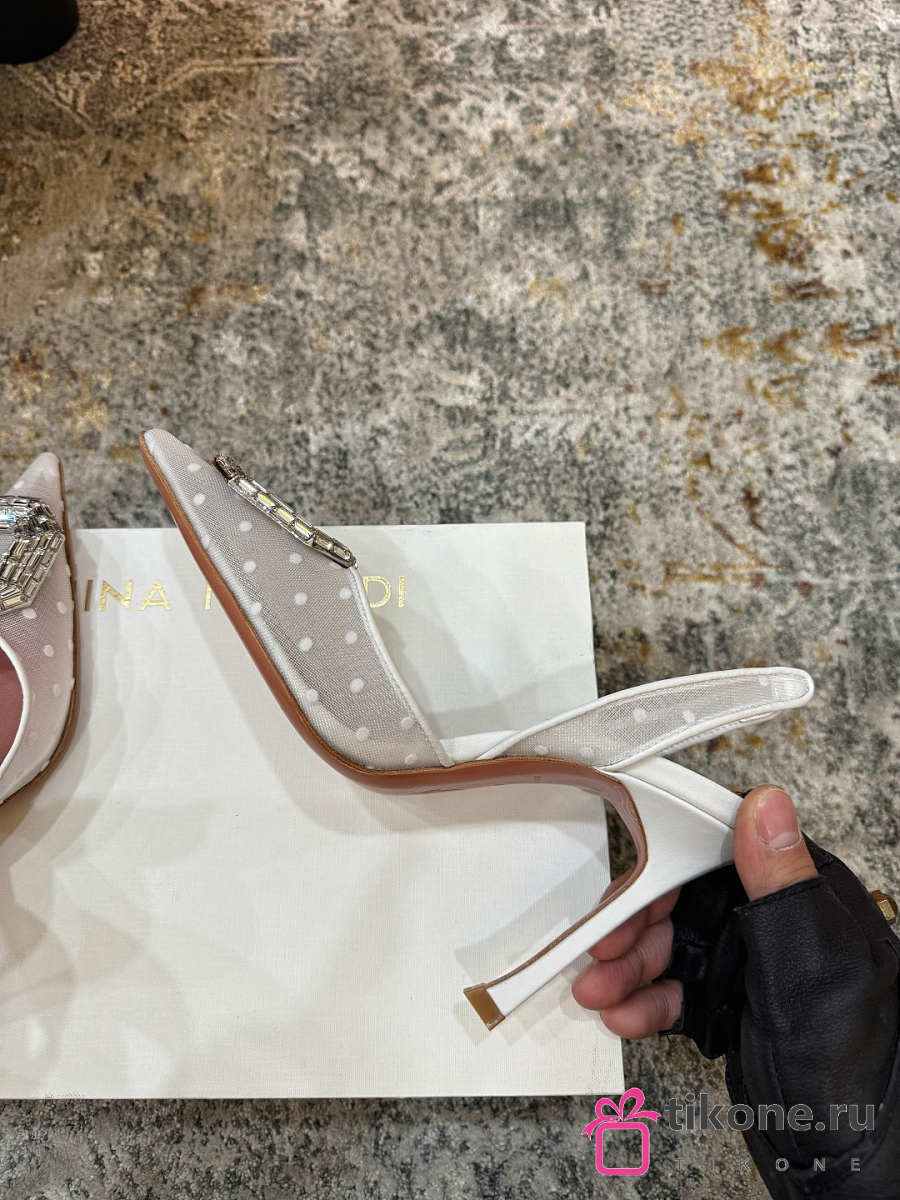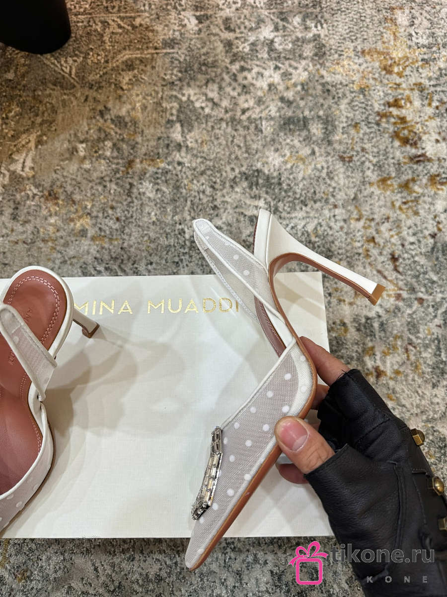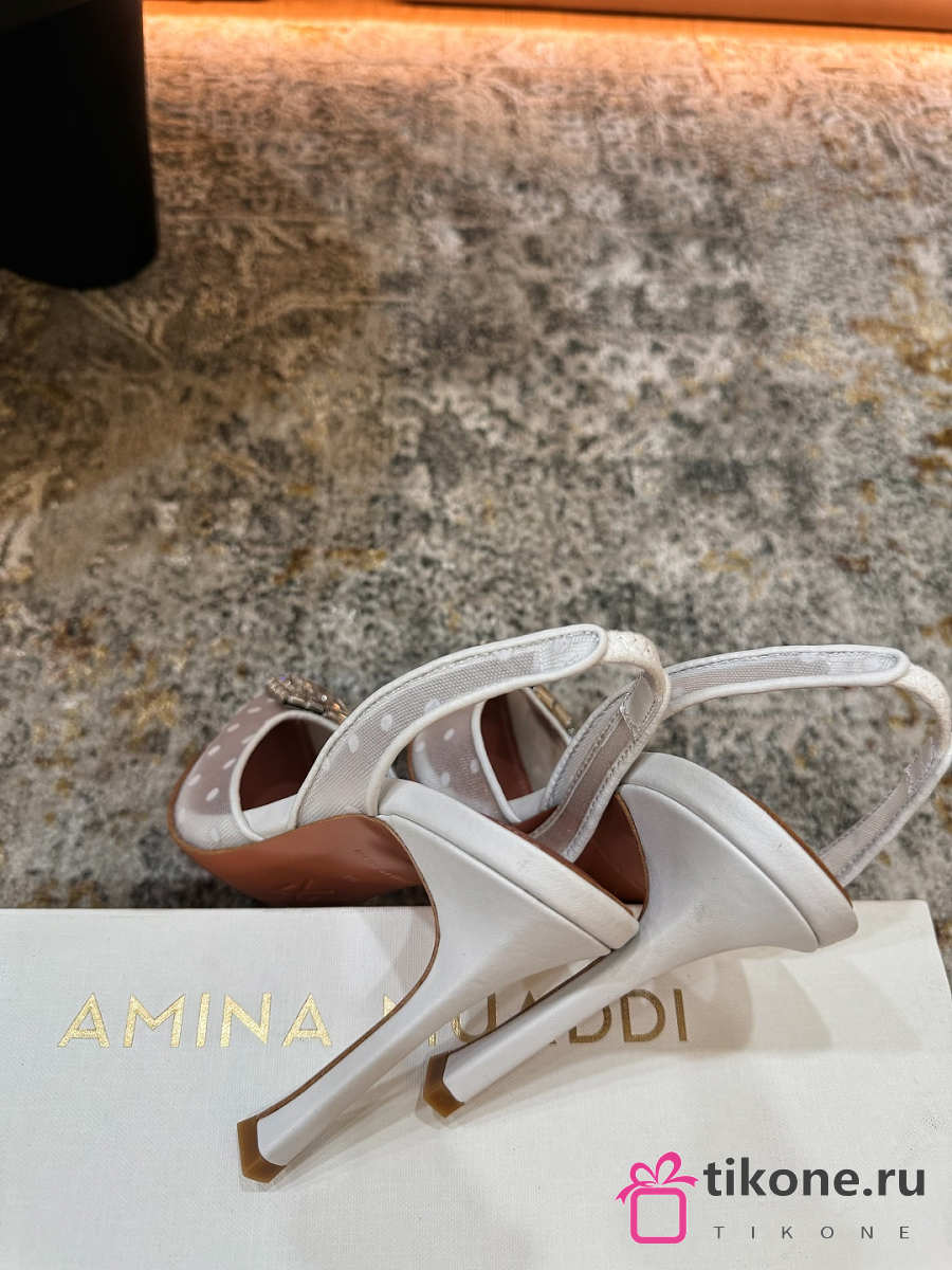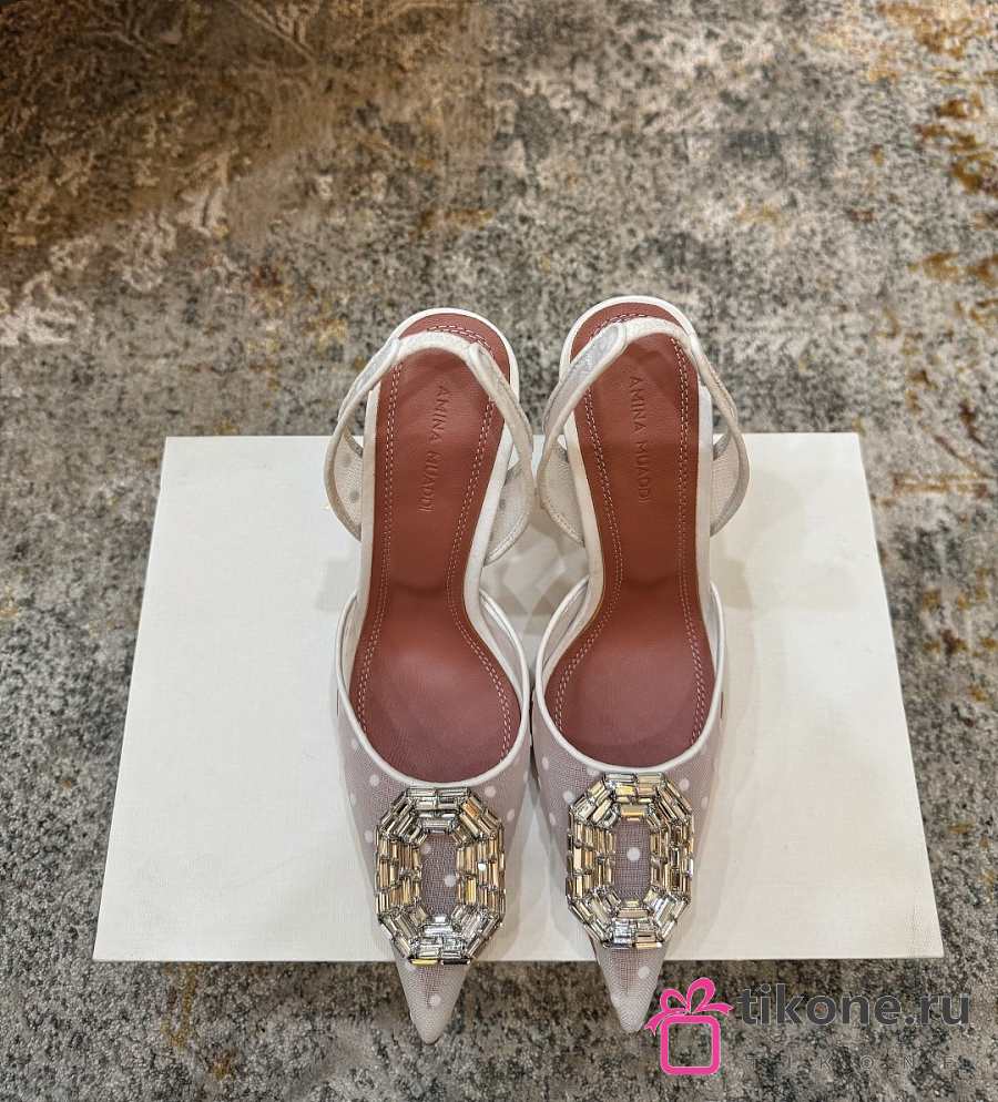 Amina Muaddi Camelia Sling 95 White Polka-Dot Lace