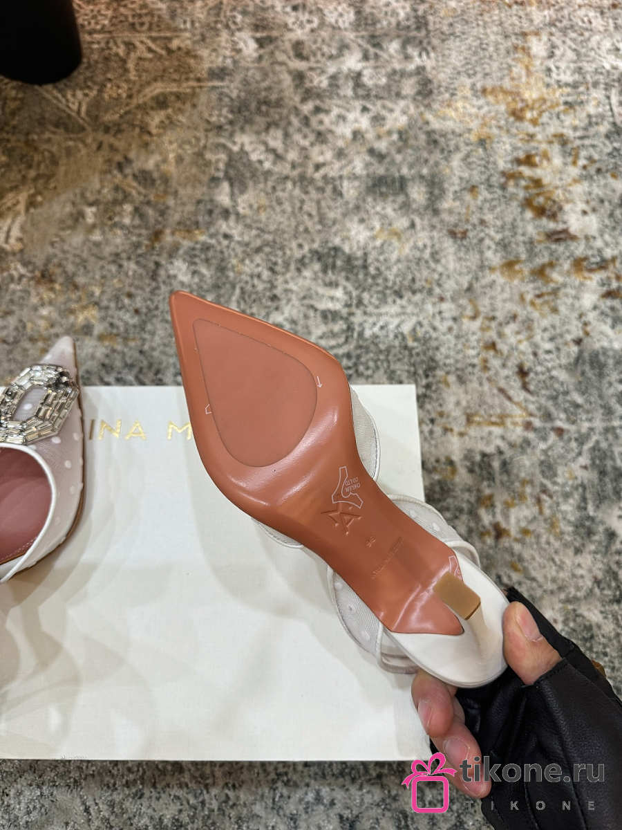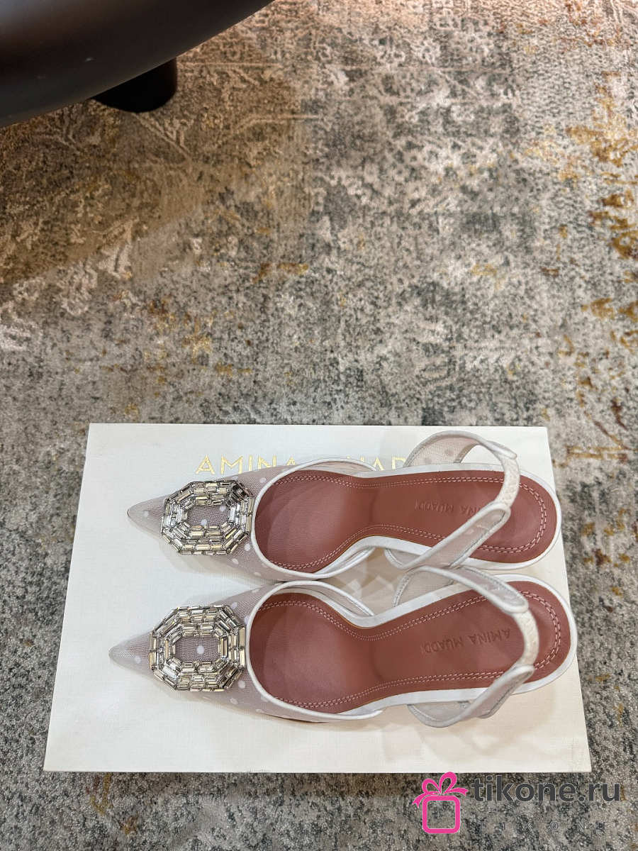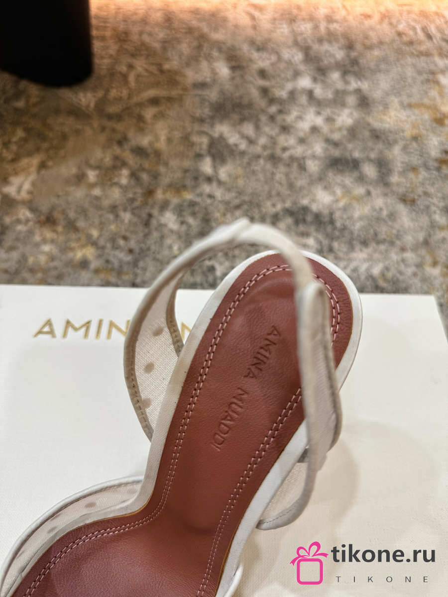 Amina Muaddi Holli Mesh Sling 95 Beige Mesh