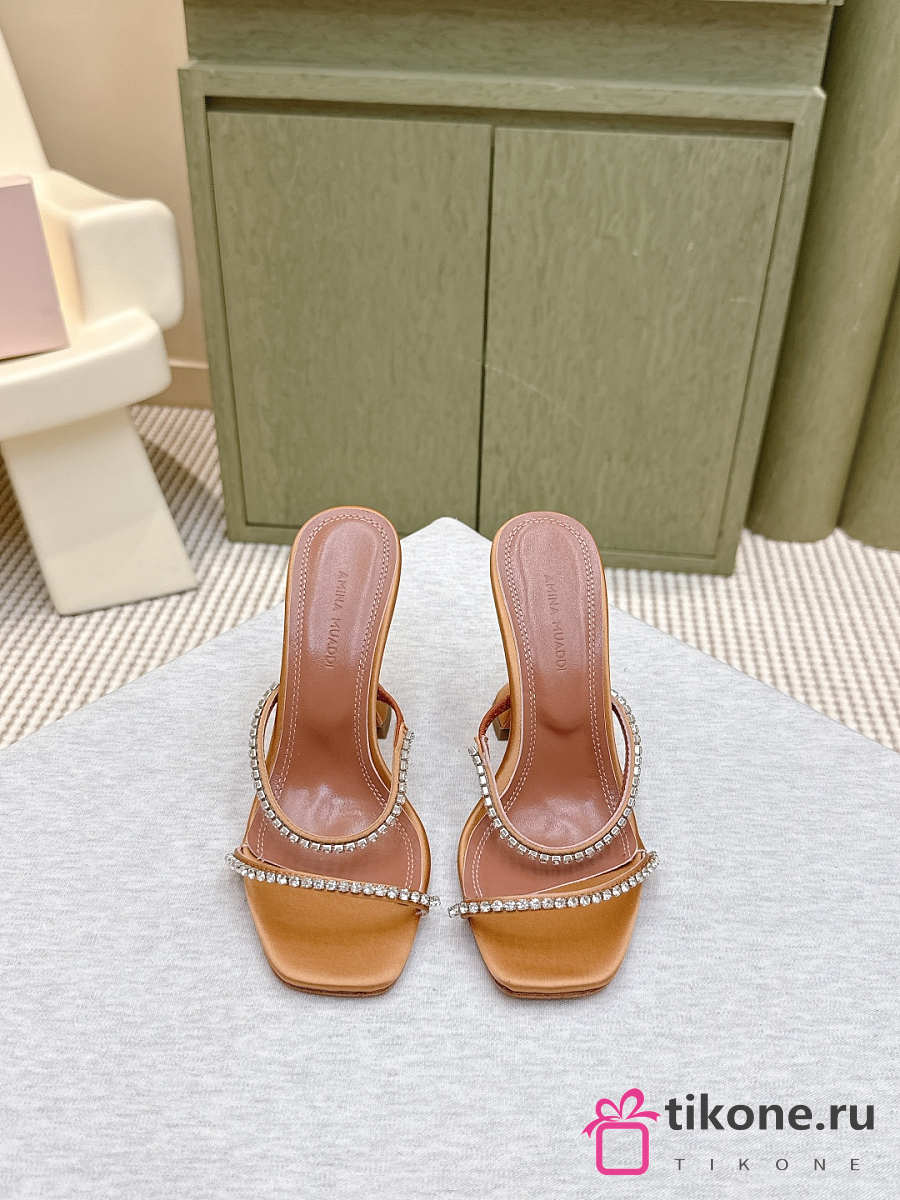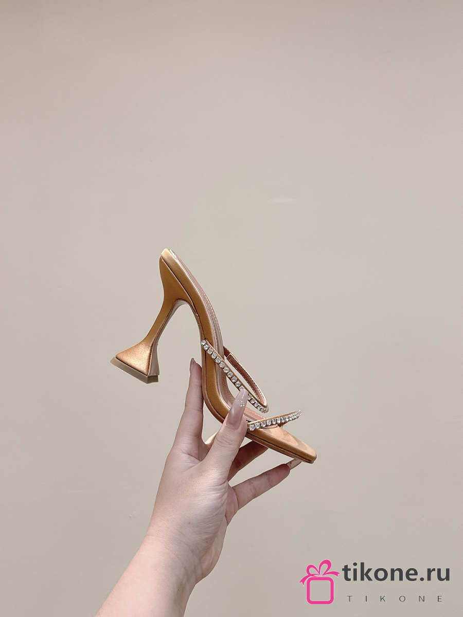 Amina Muaddi Gigi Slipper 95 Gold Satin And White Crystals