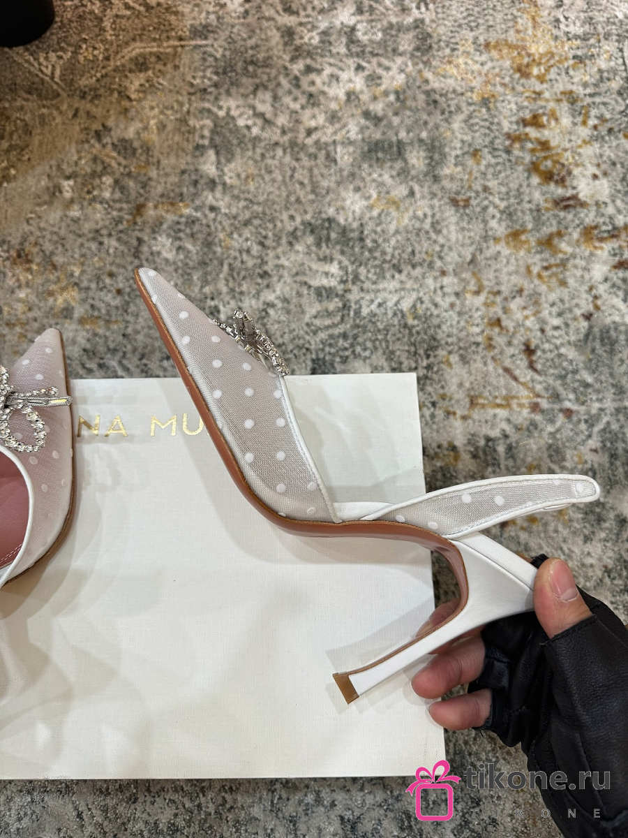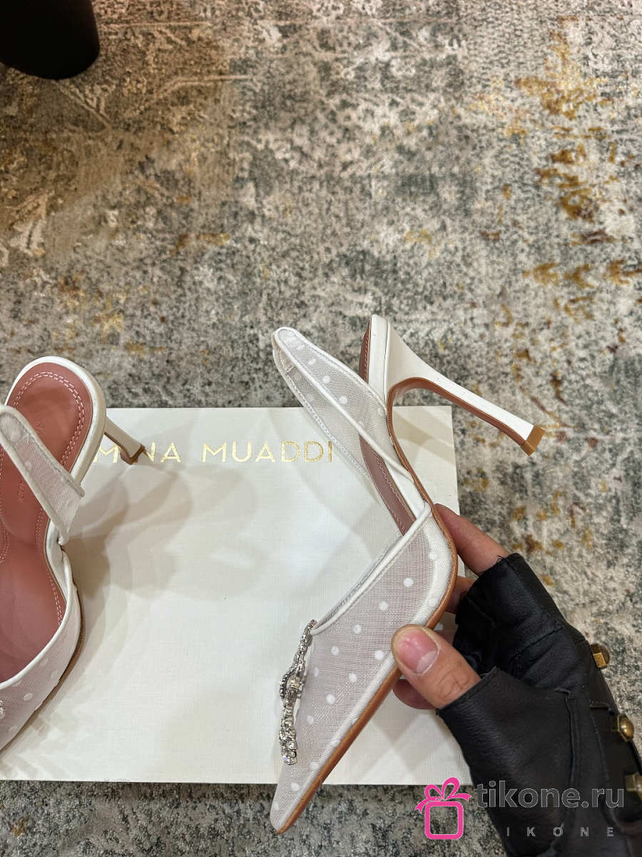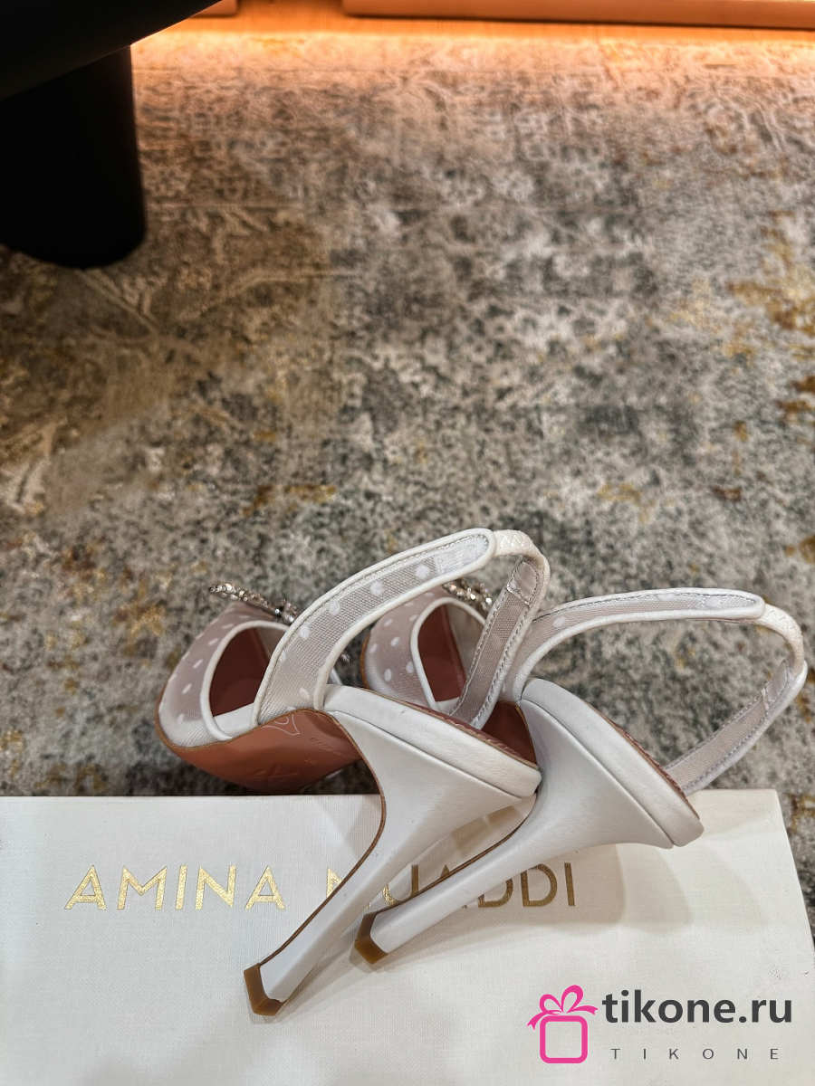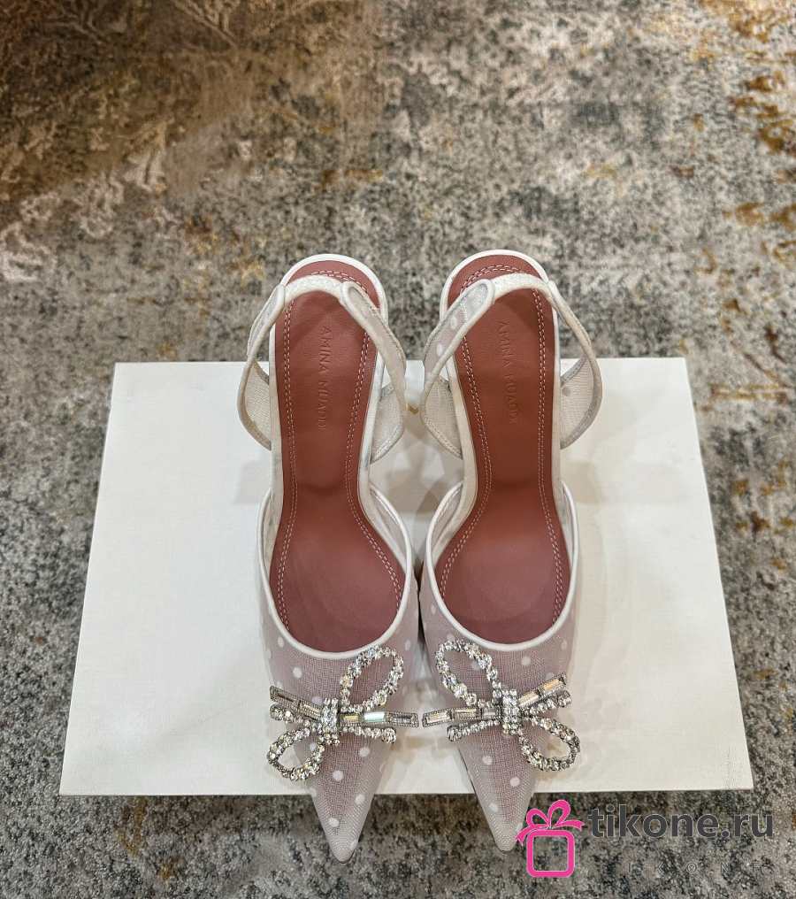 Amina Muaddi Rosie Sling 95 White Polka-Dot Lace