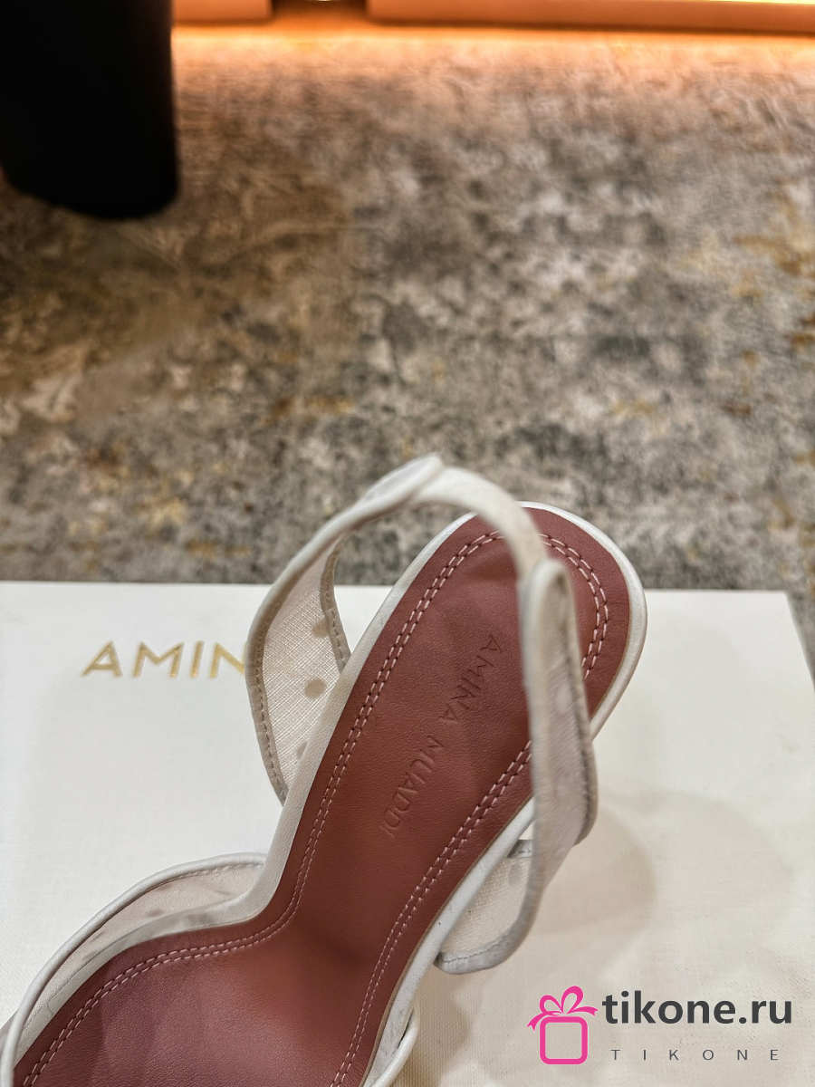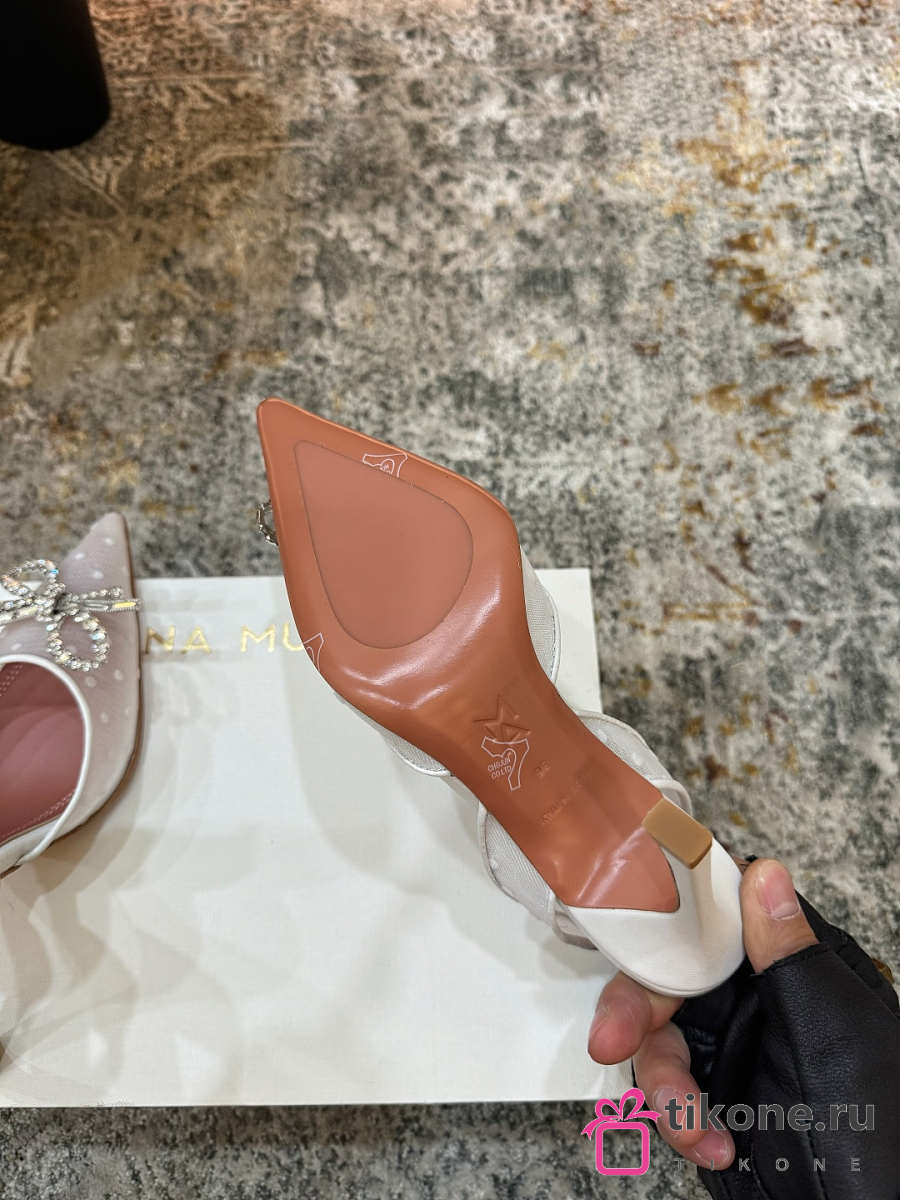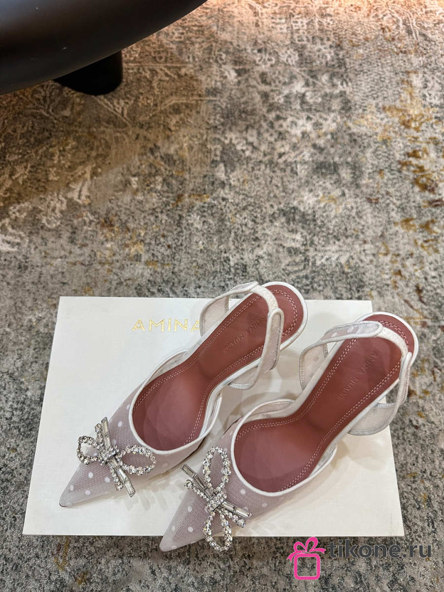 Amina Muaddi Rosie Sling 95 White Polka-Dot Lace