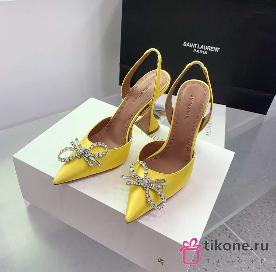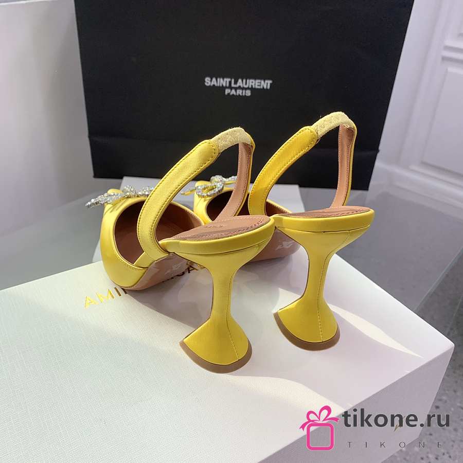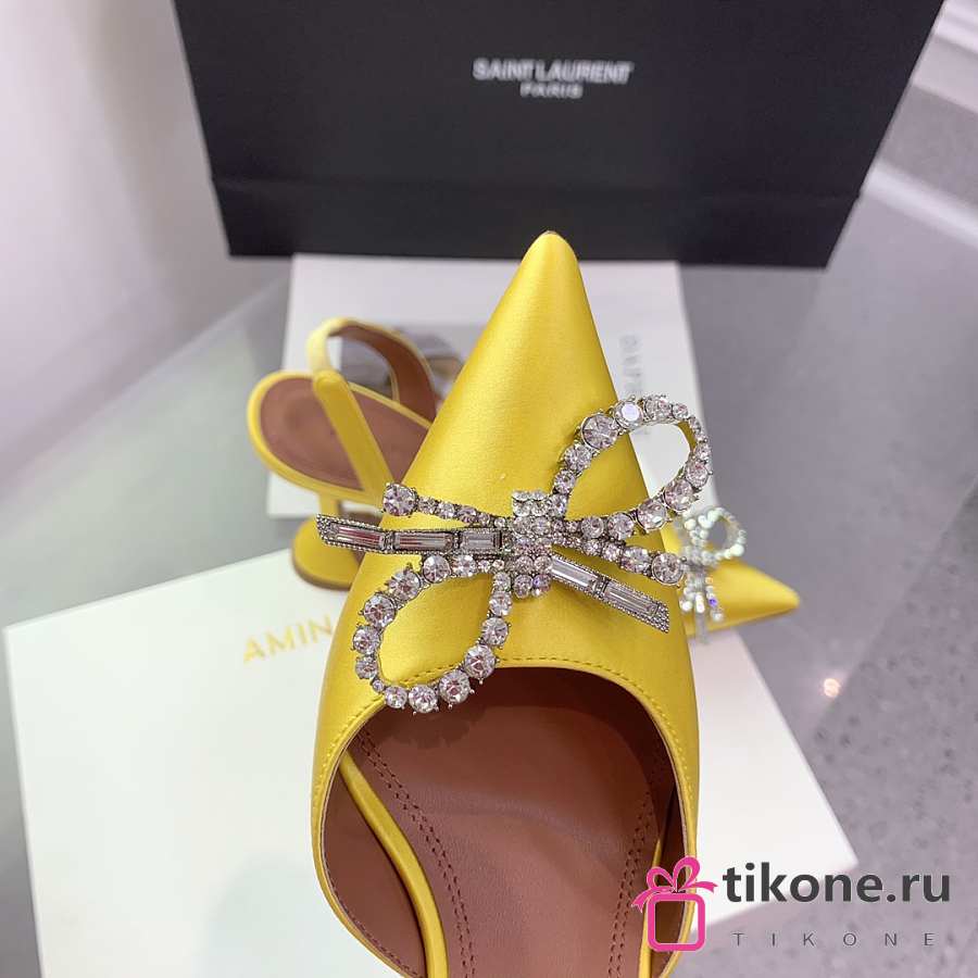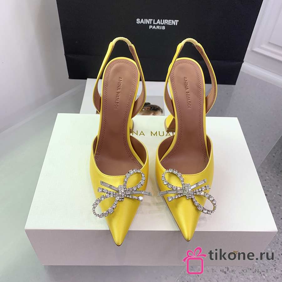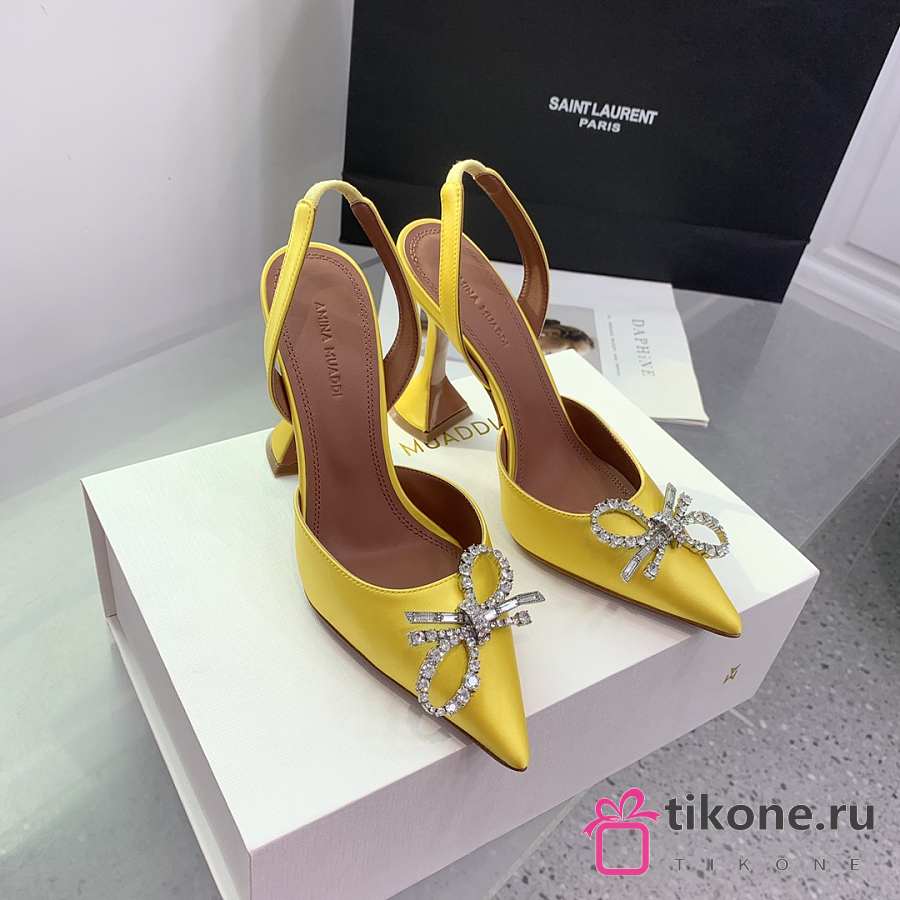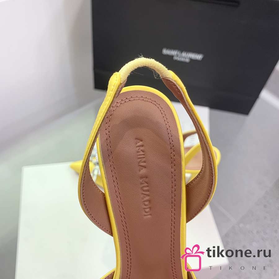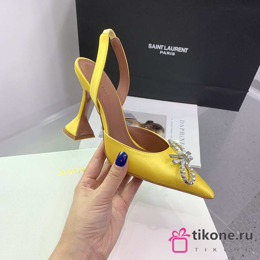 Amina Muaddi Rosie Sling Black Satin Yellow 9.5cm