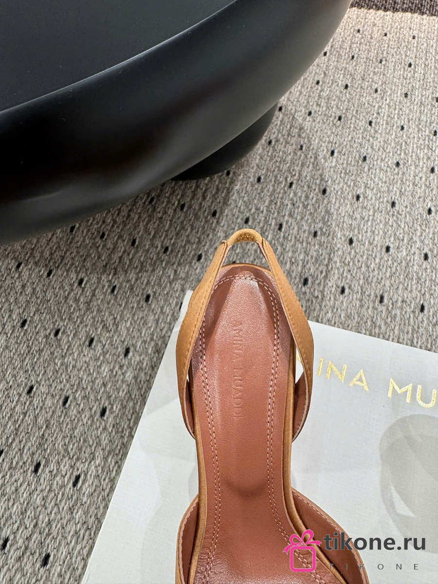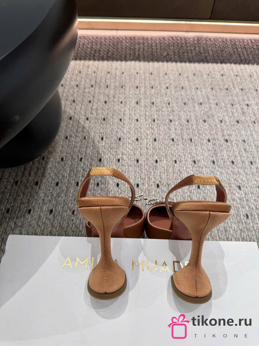 Amina Muaddi Rosie Slingback Satin Mocha 9.5cm
