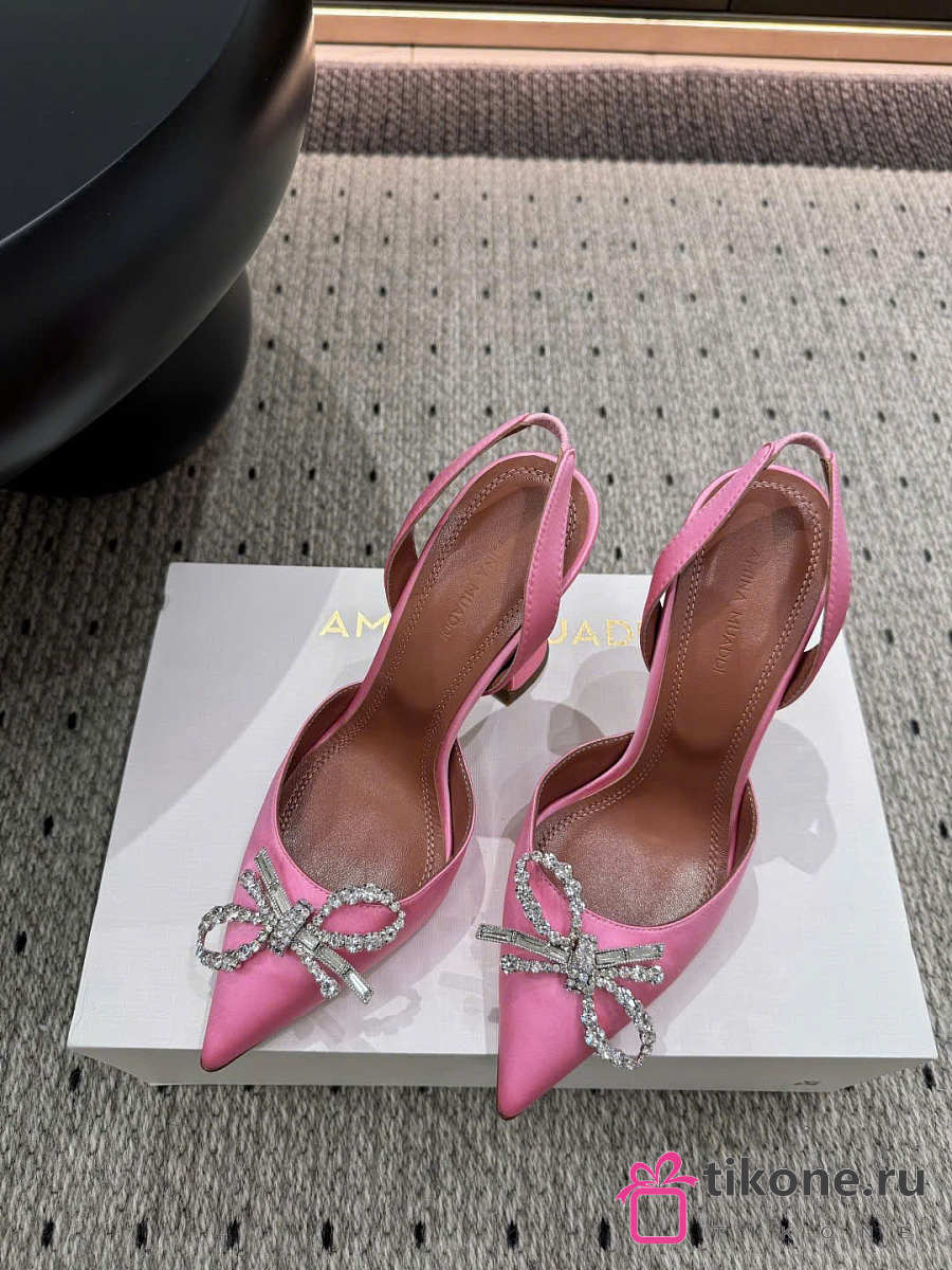 Amina Muaddi Rosie Slingback Satin Pink 9.5cm