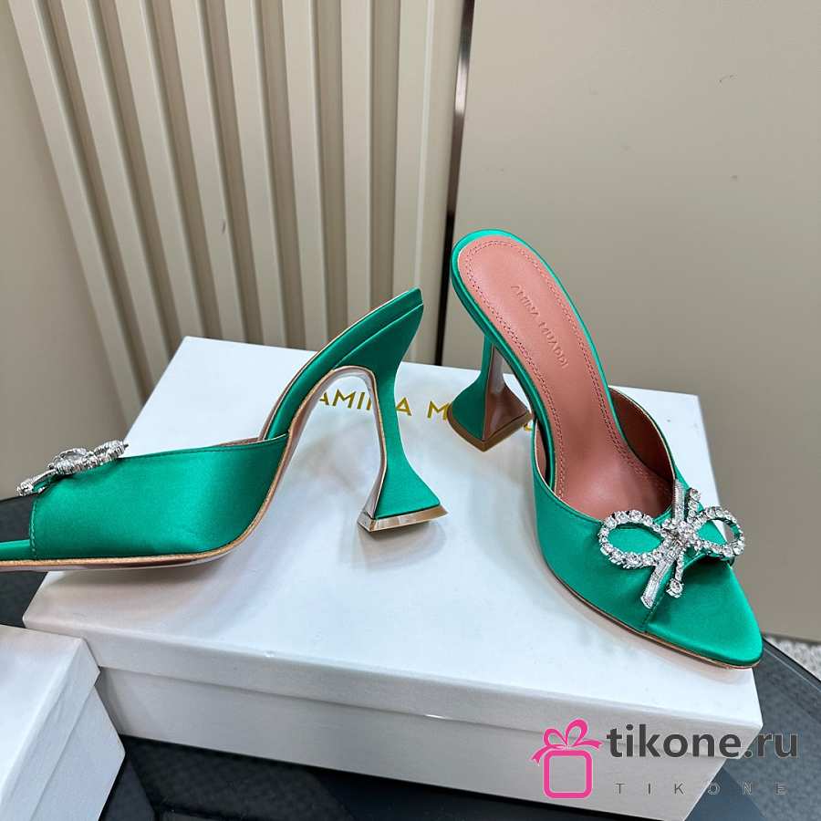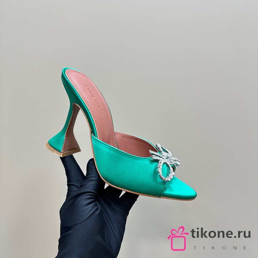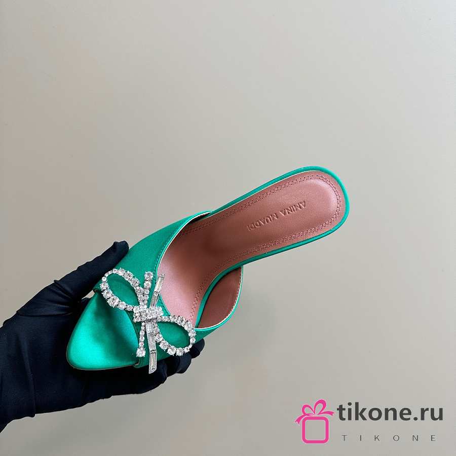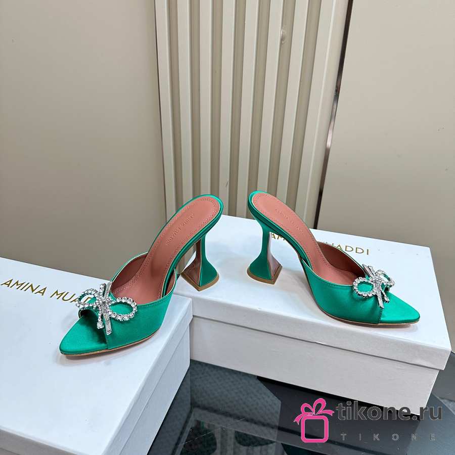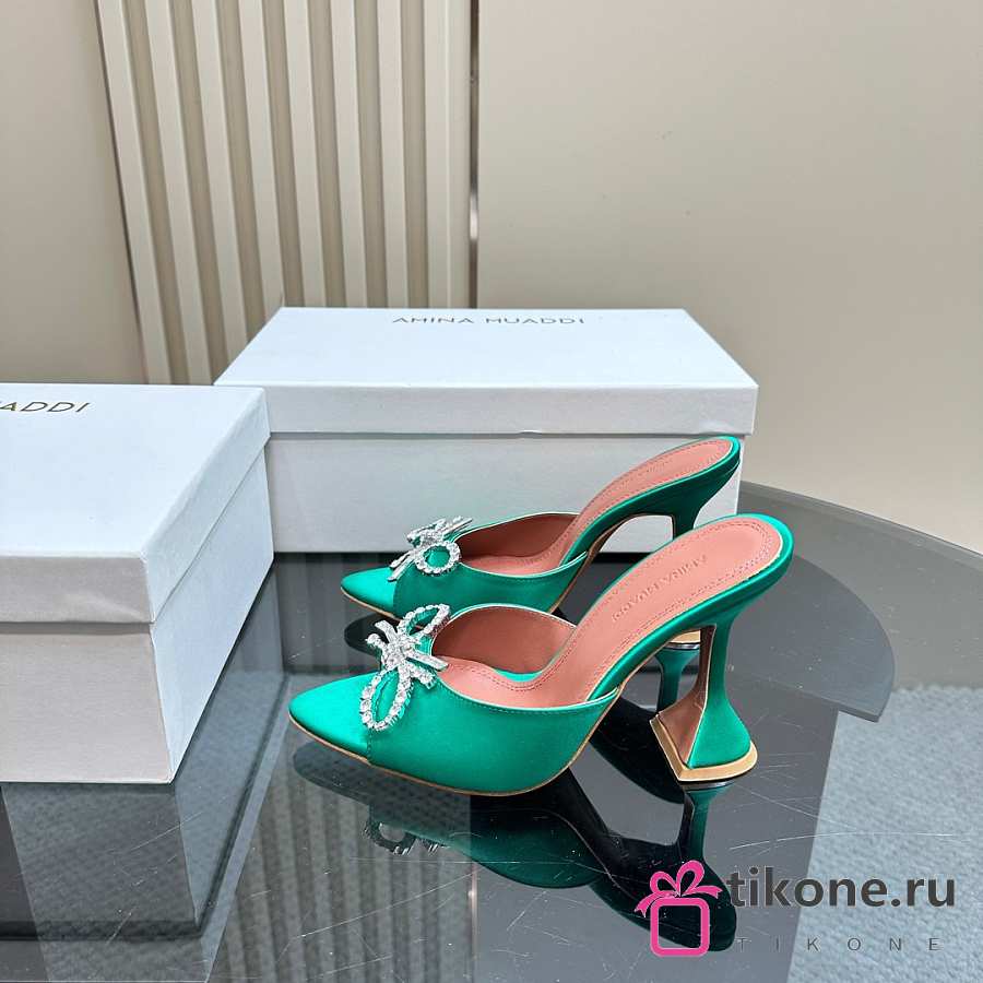 Amina Muaddi Rosie Slipper Green Satin 9.5cm