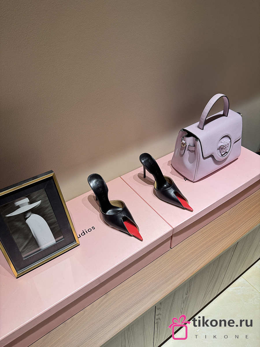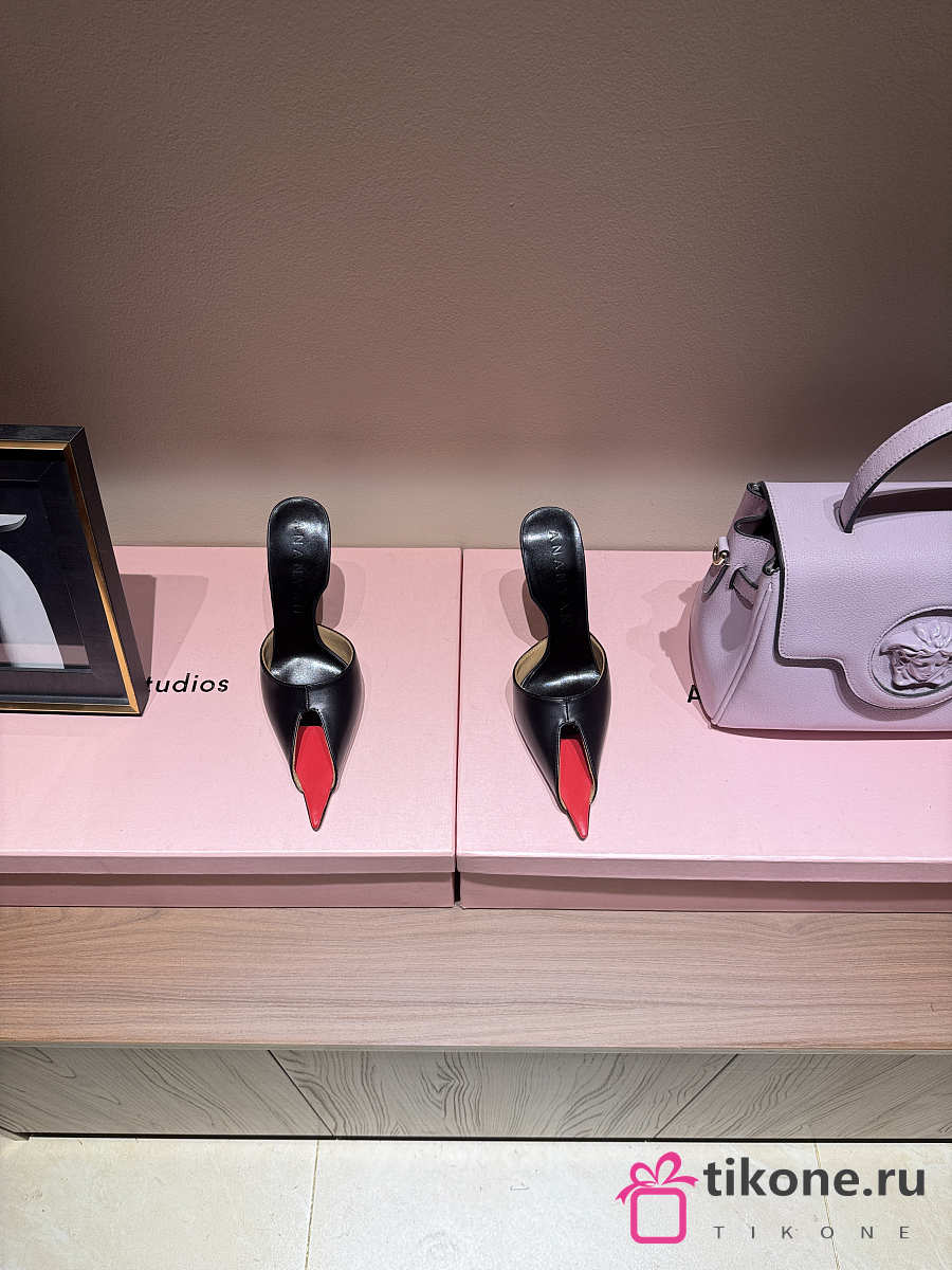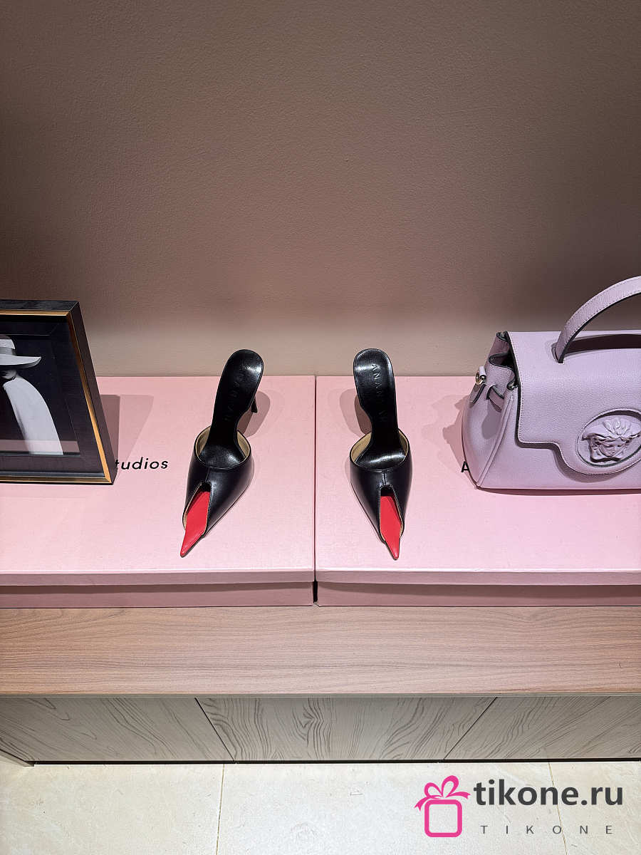 Ananyan Vag Black Leather Open Pointed Toe Mules