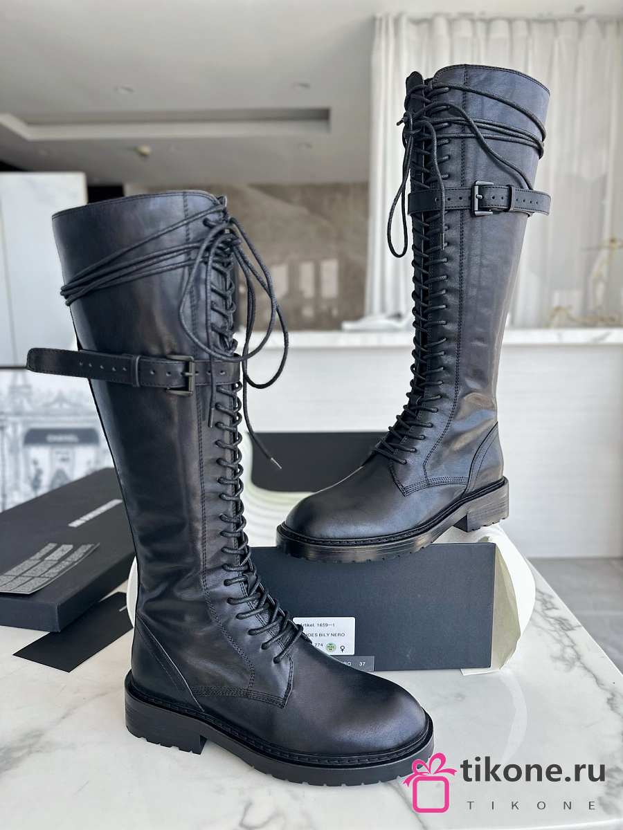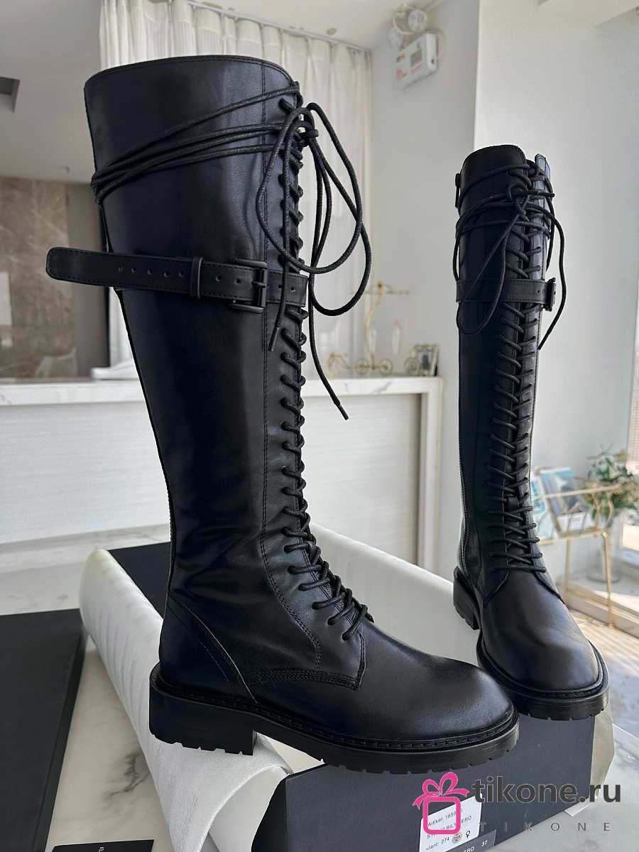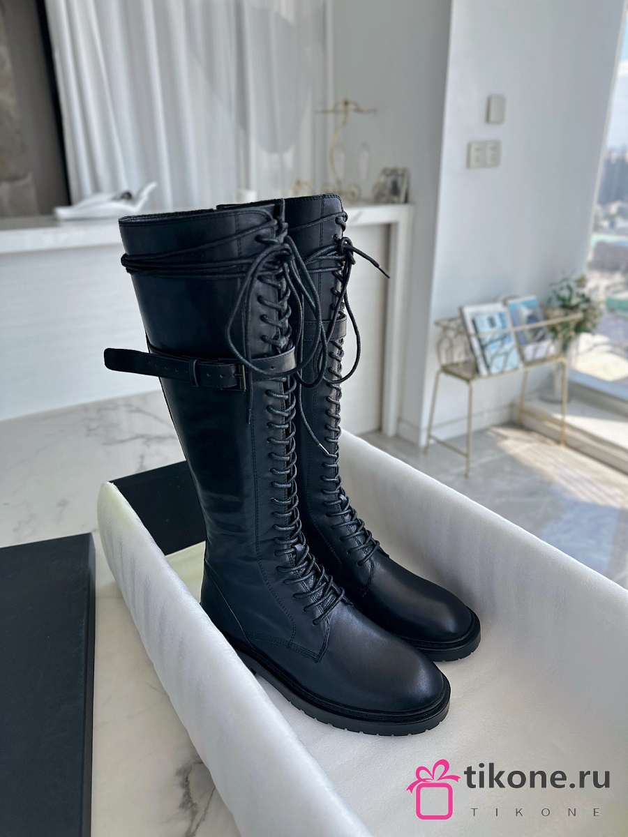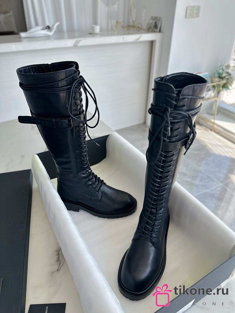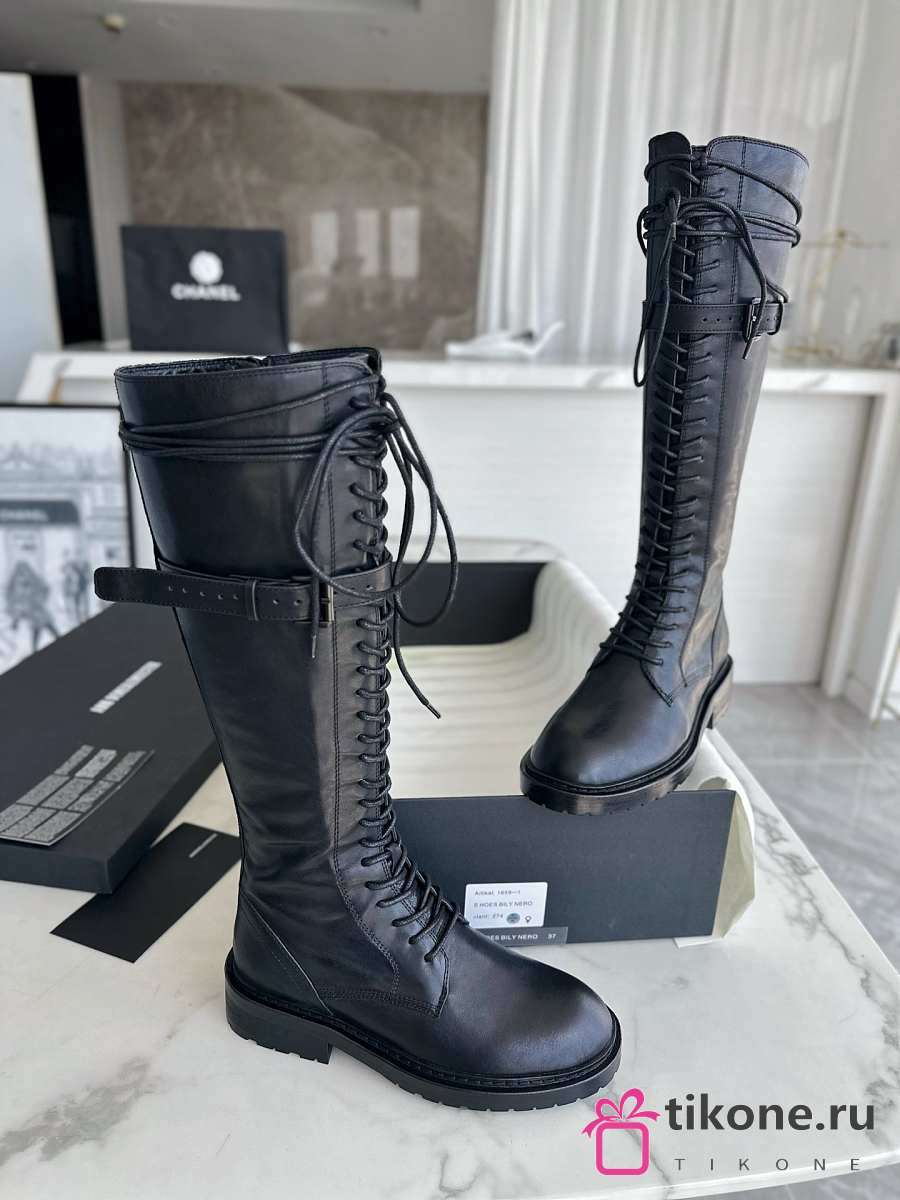 Chanel Thigh Boots Suede & Calfskin Brown Black 6.5cm