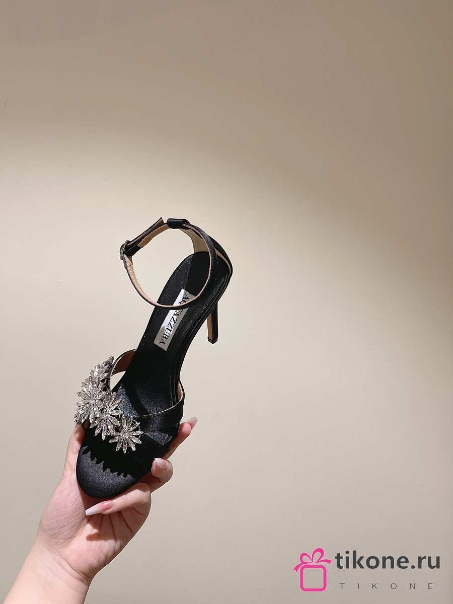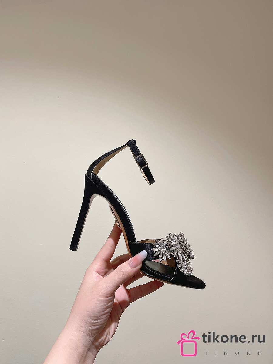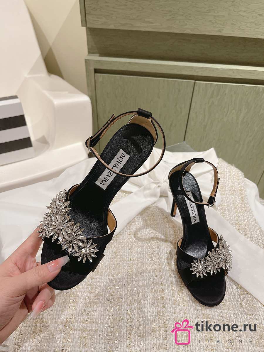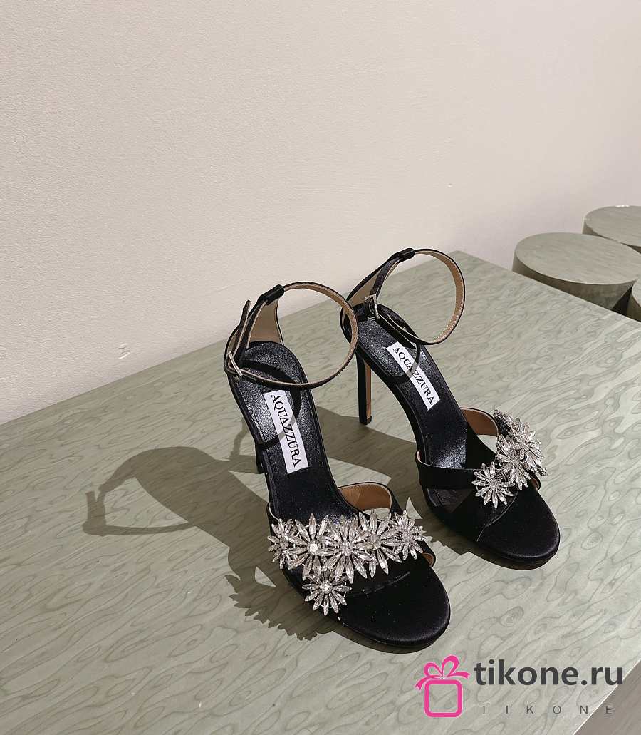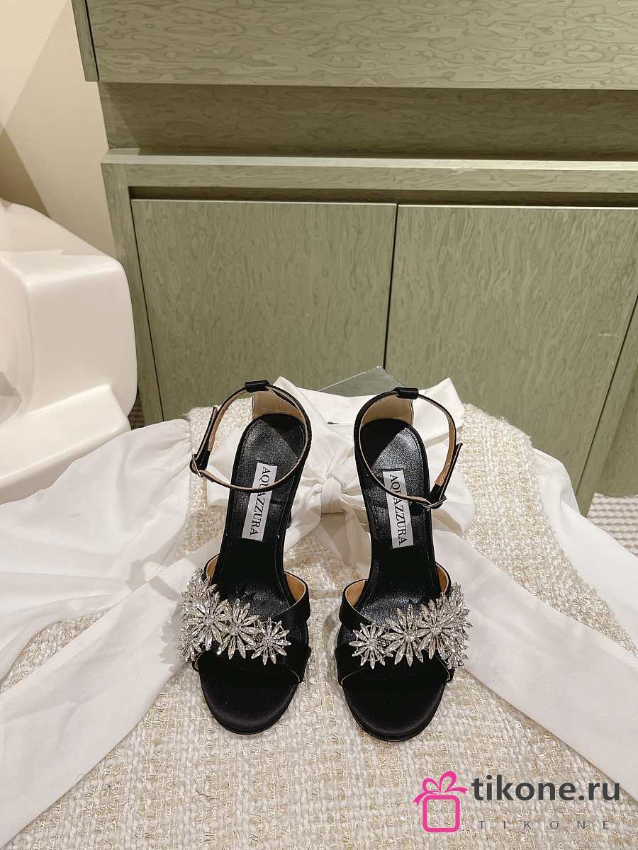 Aquazzura Crystal Margarita Satin Sandal 105 Black