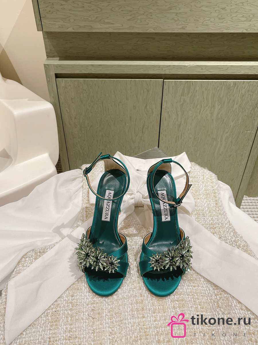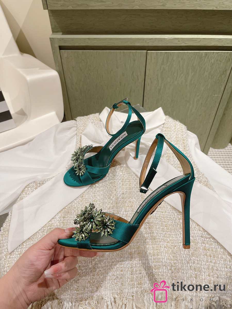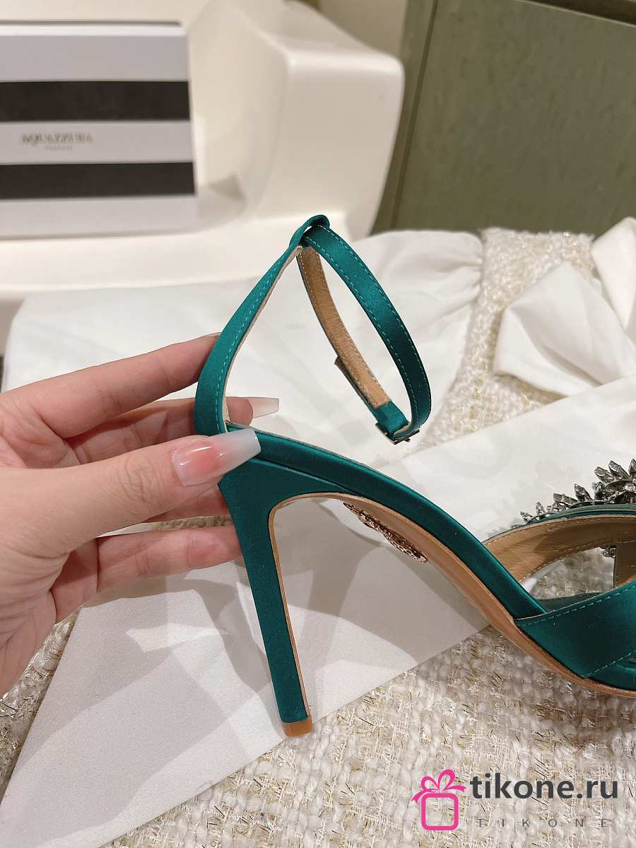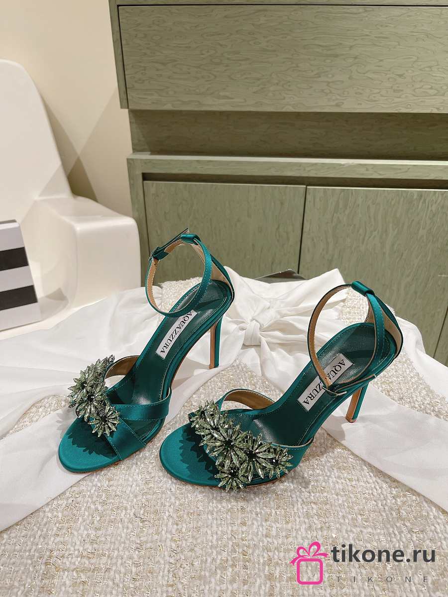 Aquazzura Crystal Margarita Satin Sandal 105 Green