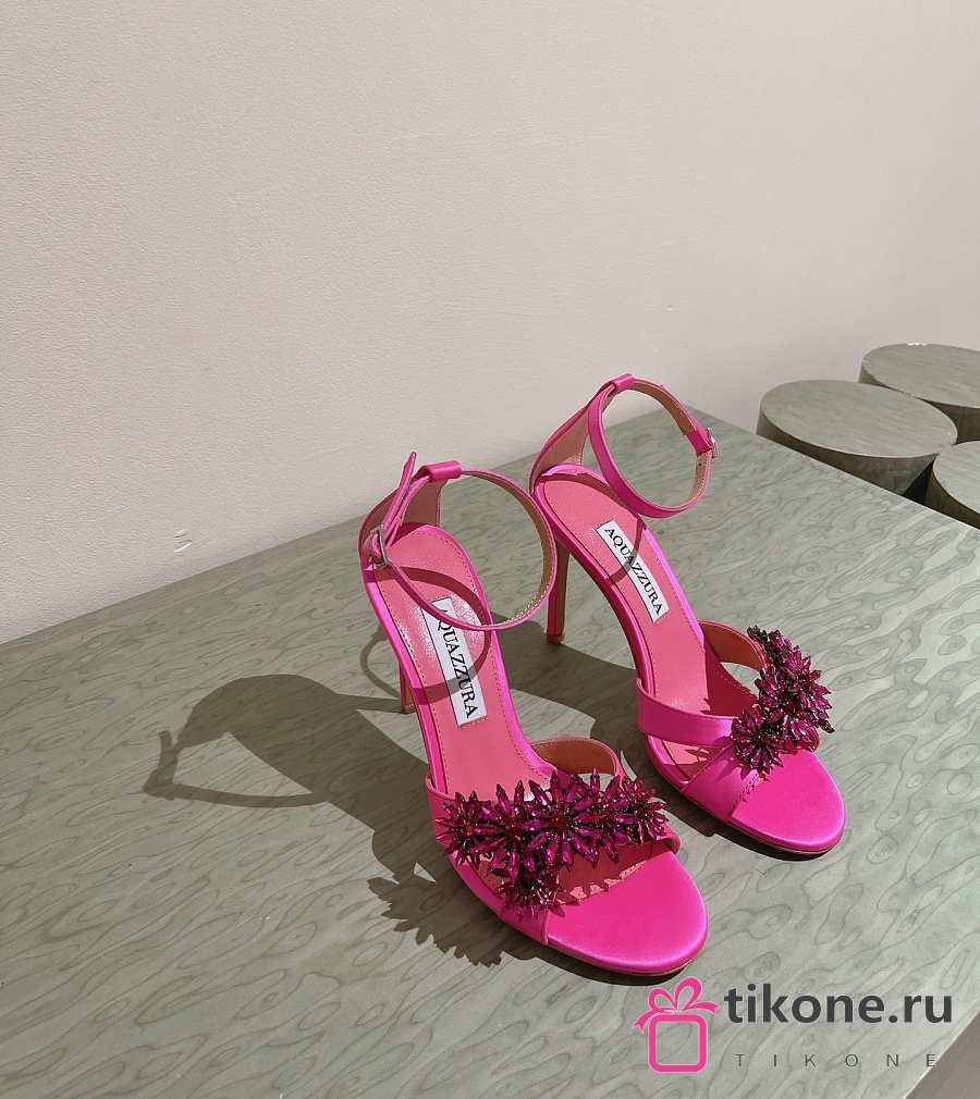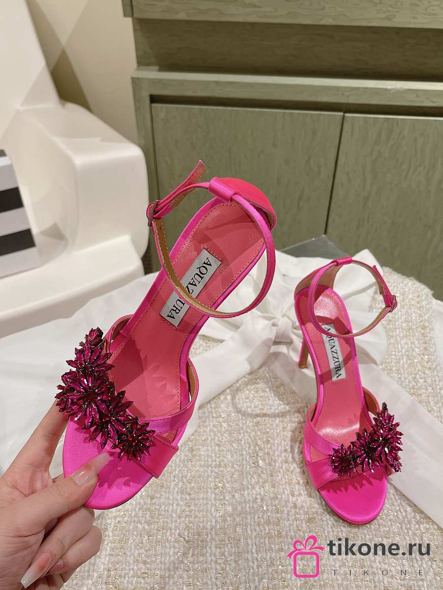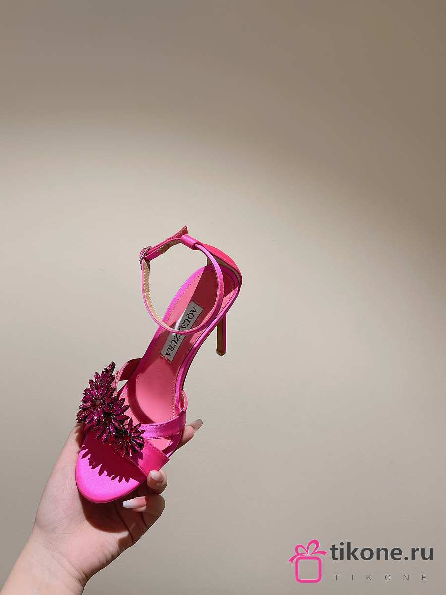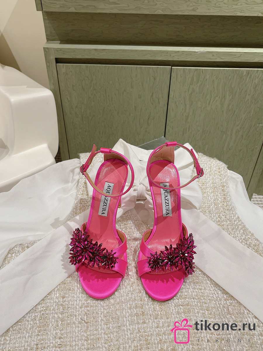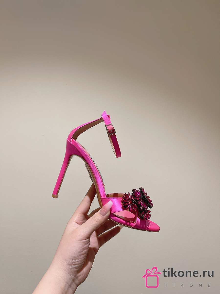 Aquazzura Crystal Margarita Satin Sandal 105 Pink