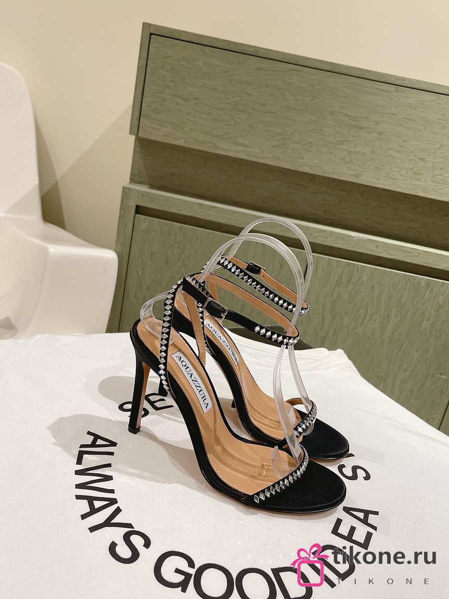Aquazzura Olie Sandal 105 Satin Crystal Black