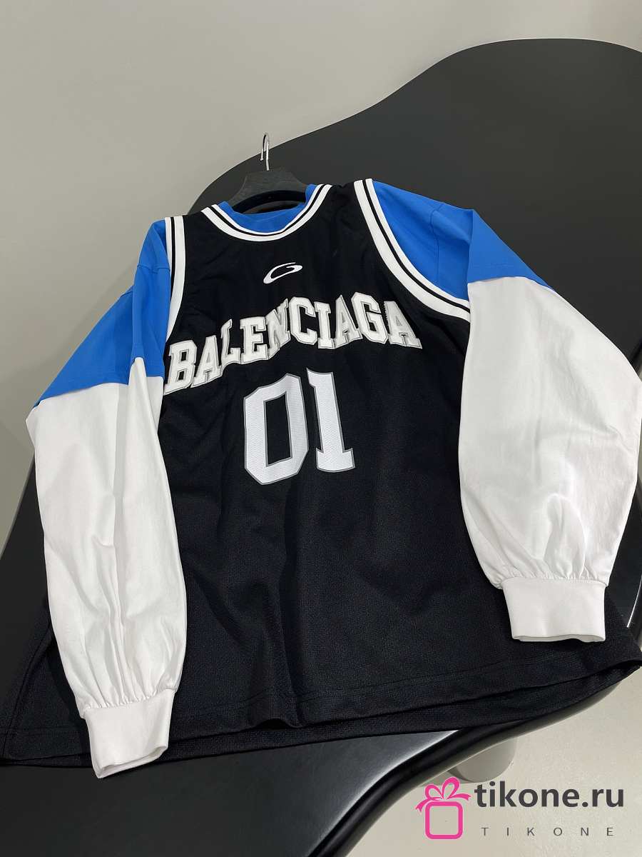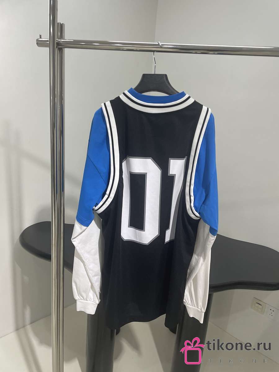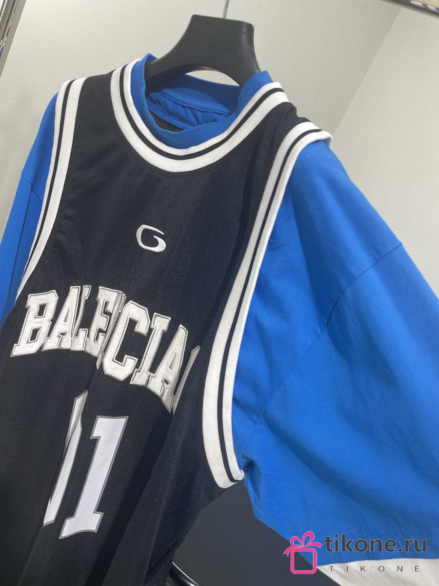 Balenciaga Basketball Series - Layered Long Sleeve T-Shirt In Black, Blue And White Sporty Mesh Jersey