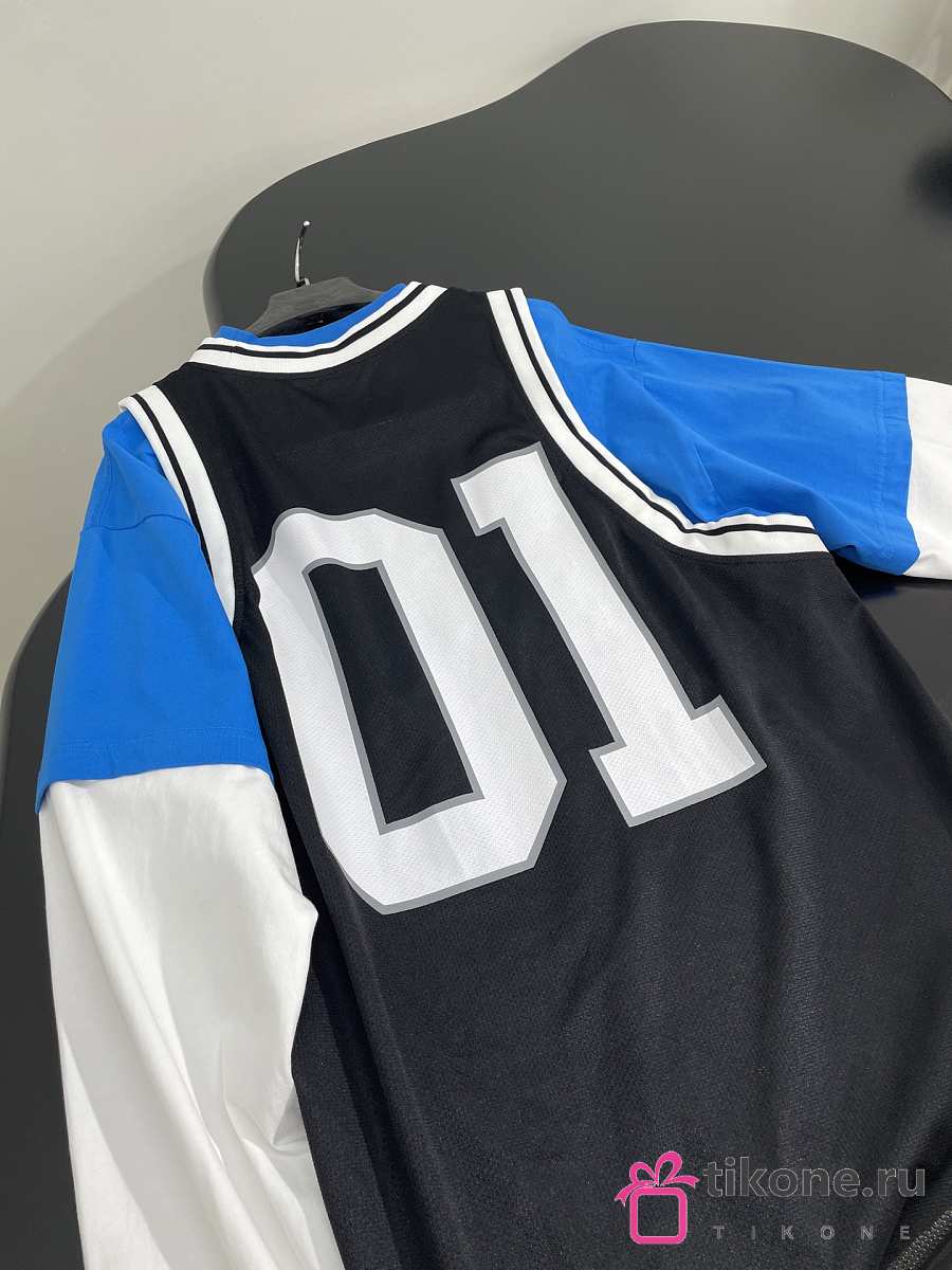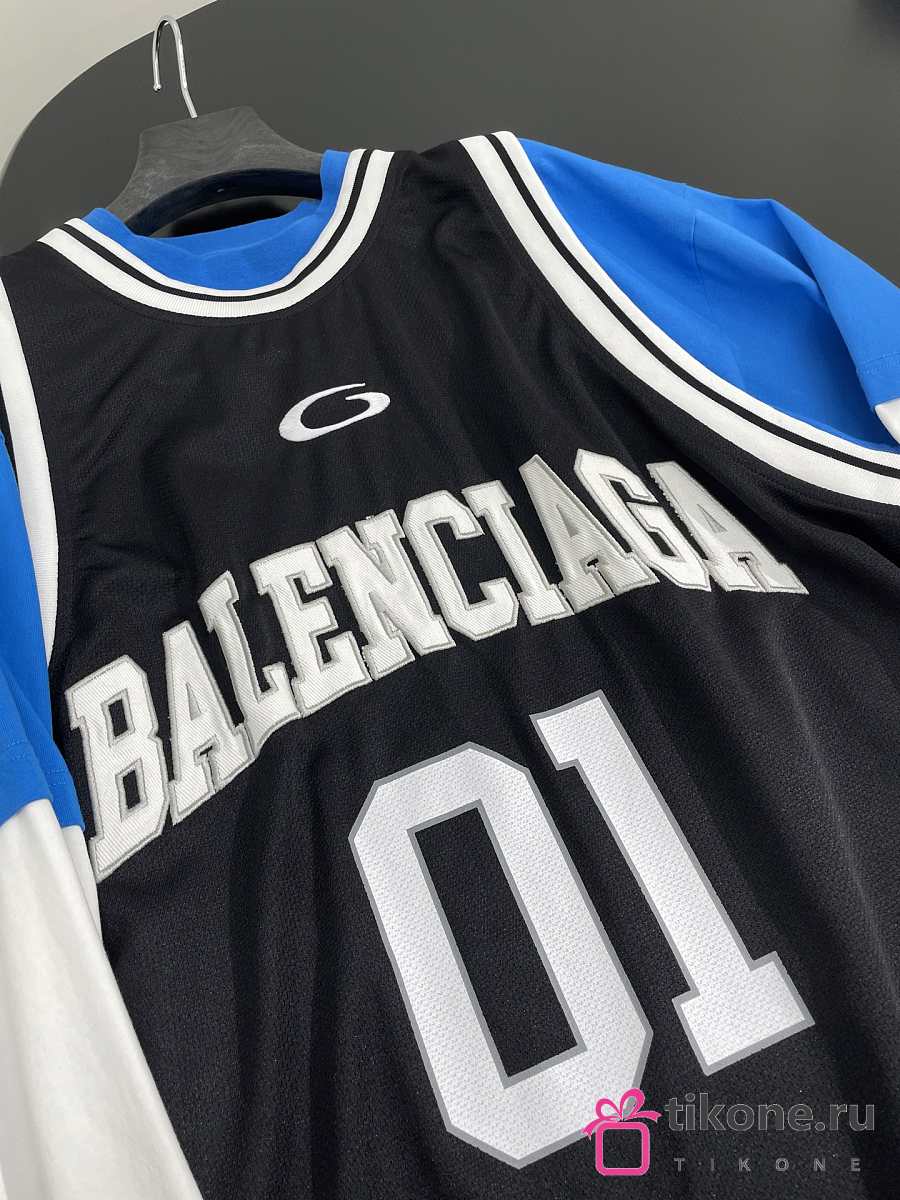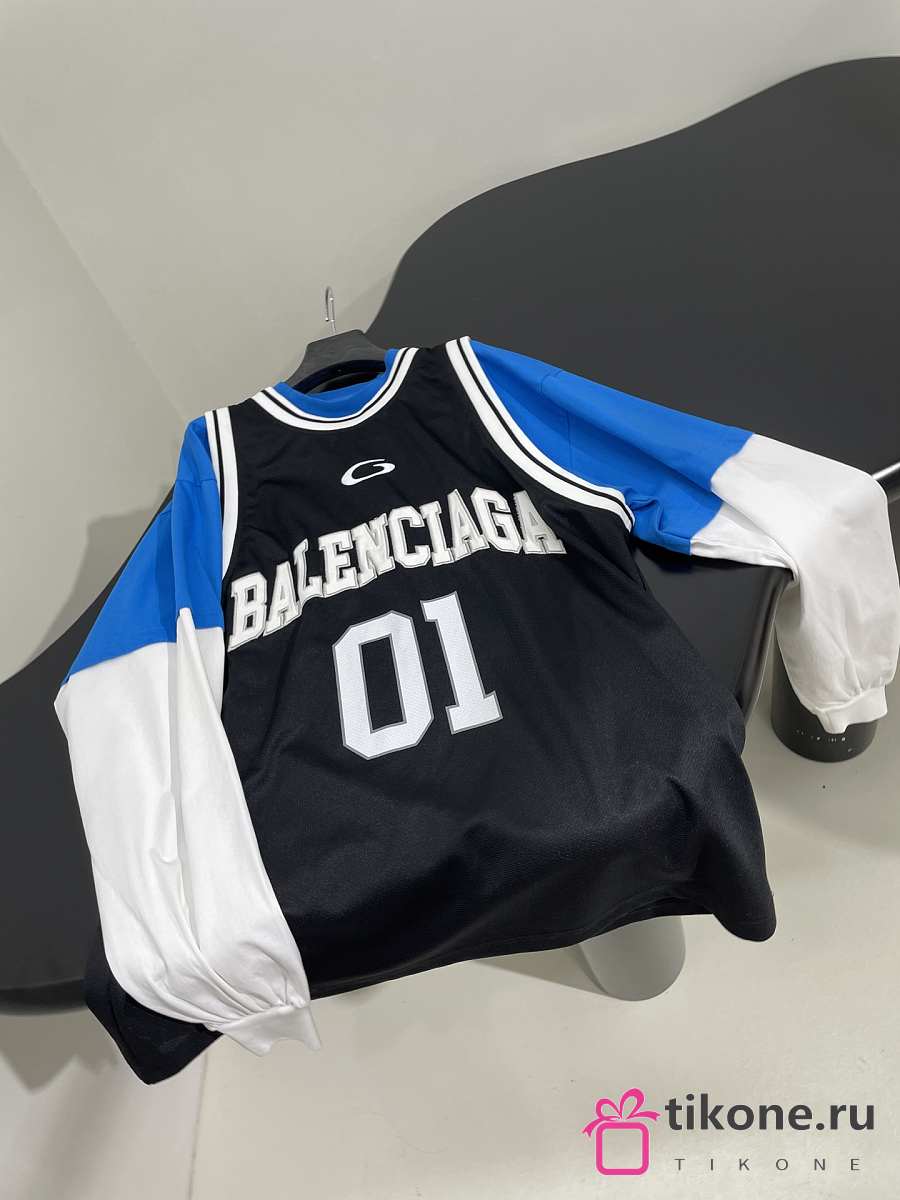 Balenciaga Basketball Series - Layered Long Sleeve T-Shirt In Black, Blue And White Sporty Mesh Jersey