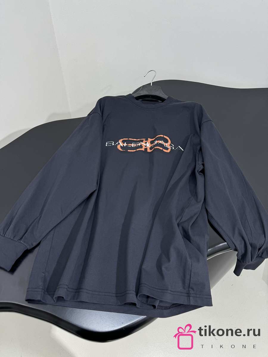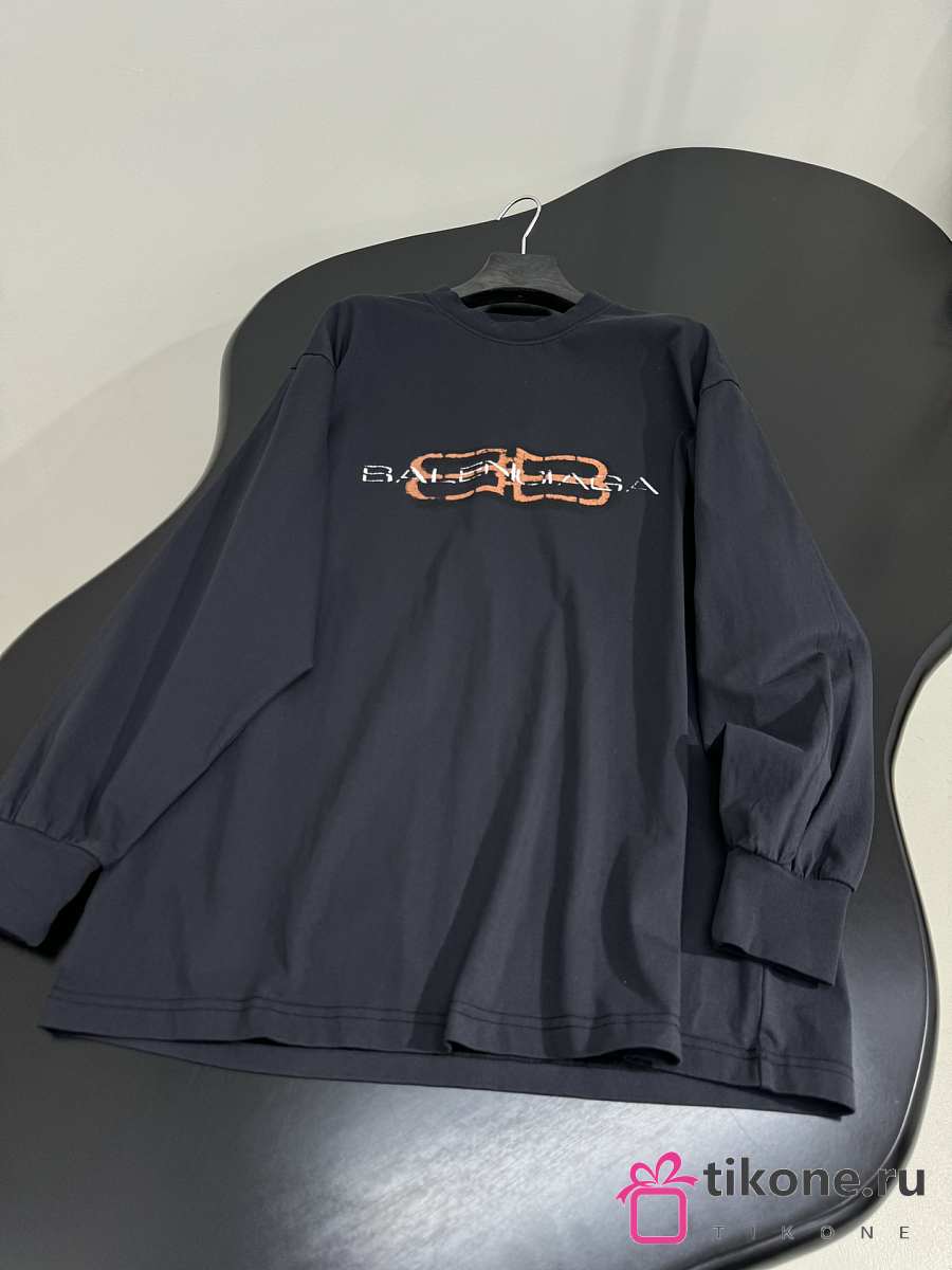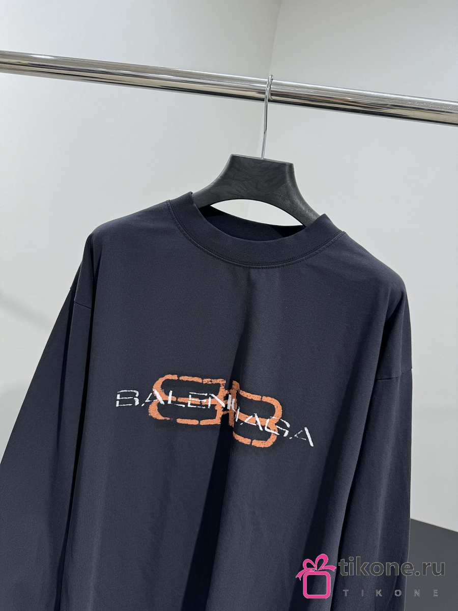 Balenciaga BB Icon Stencil Long Sleeve T-shirt Large Fit in Faded Black Dry Jersey