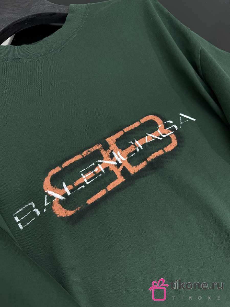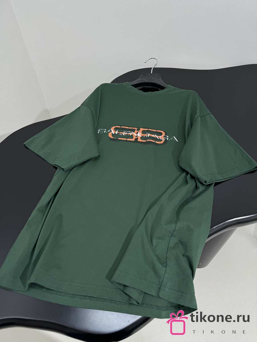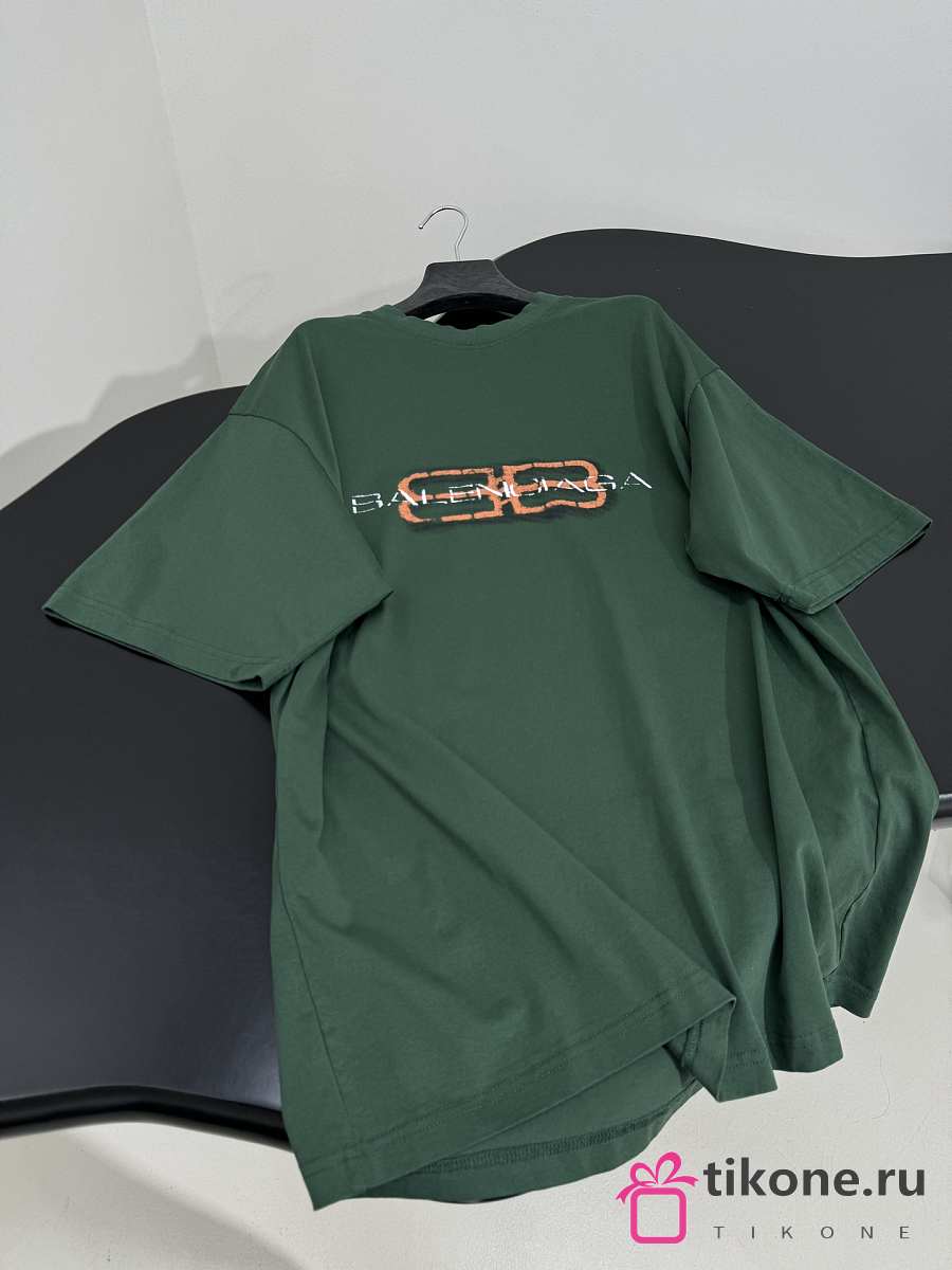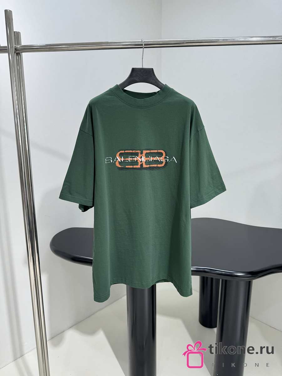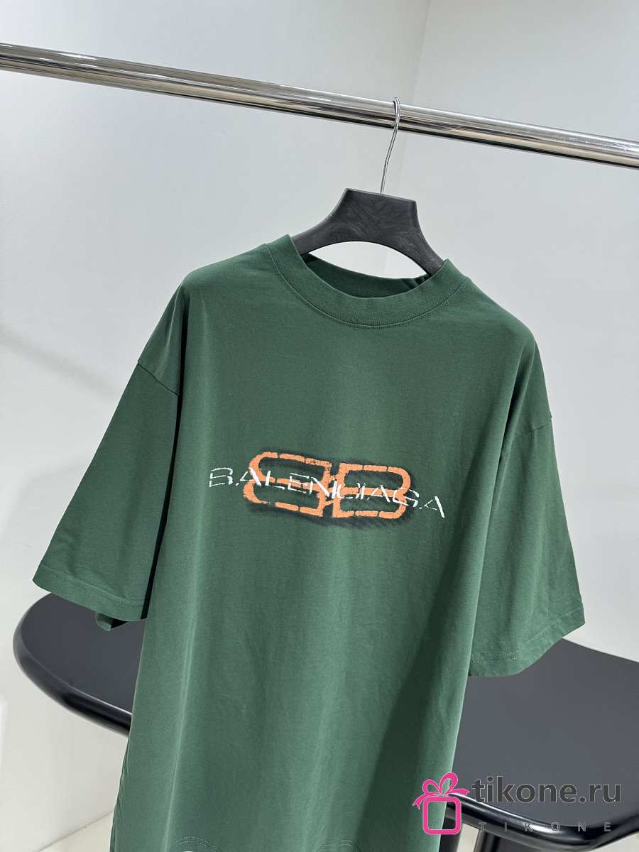 Balenciaga BB Icon Stencil T-Shirt Medium Fit In Faded Green Dry Jersey