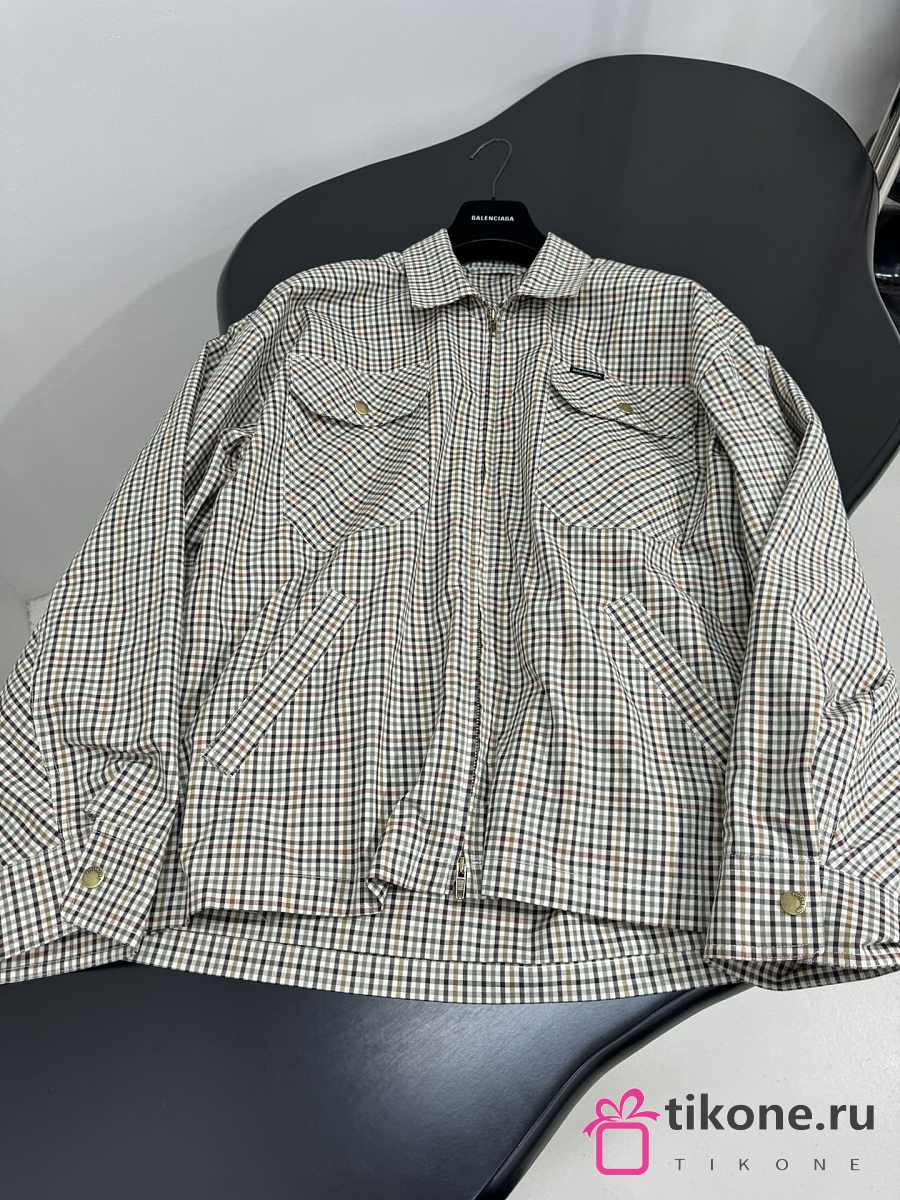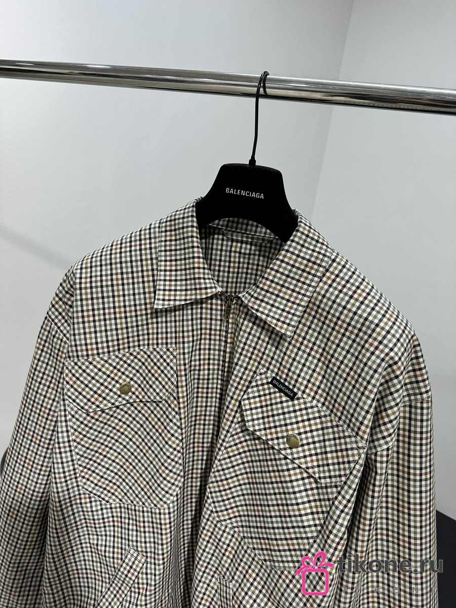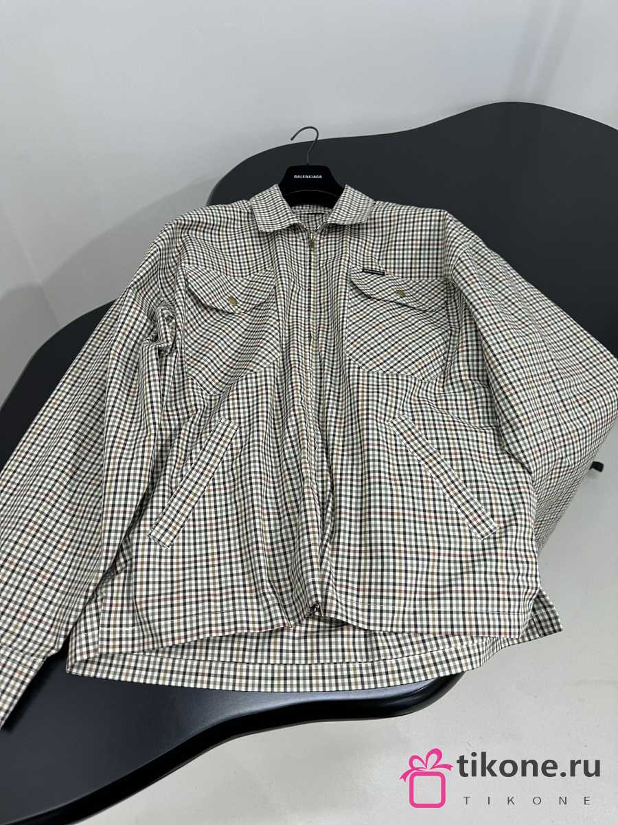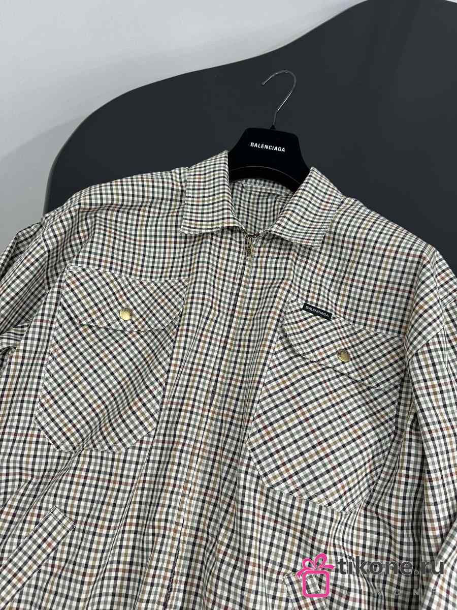 Balenciaga Check Zip-up Shirt Jacket Beige