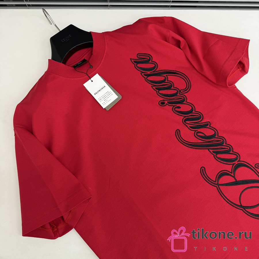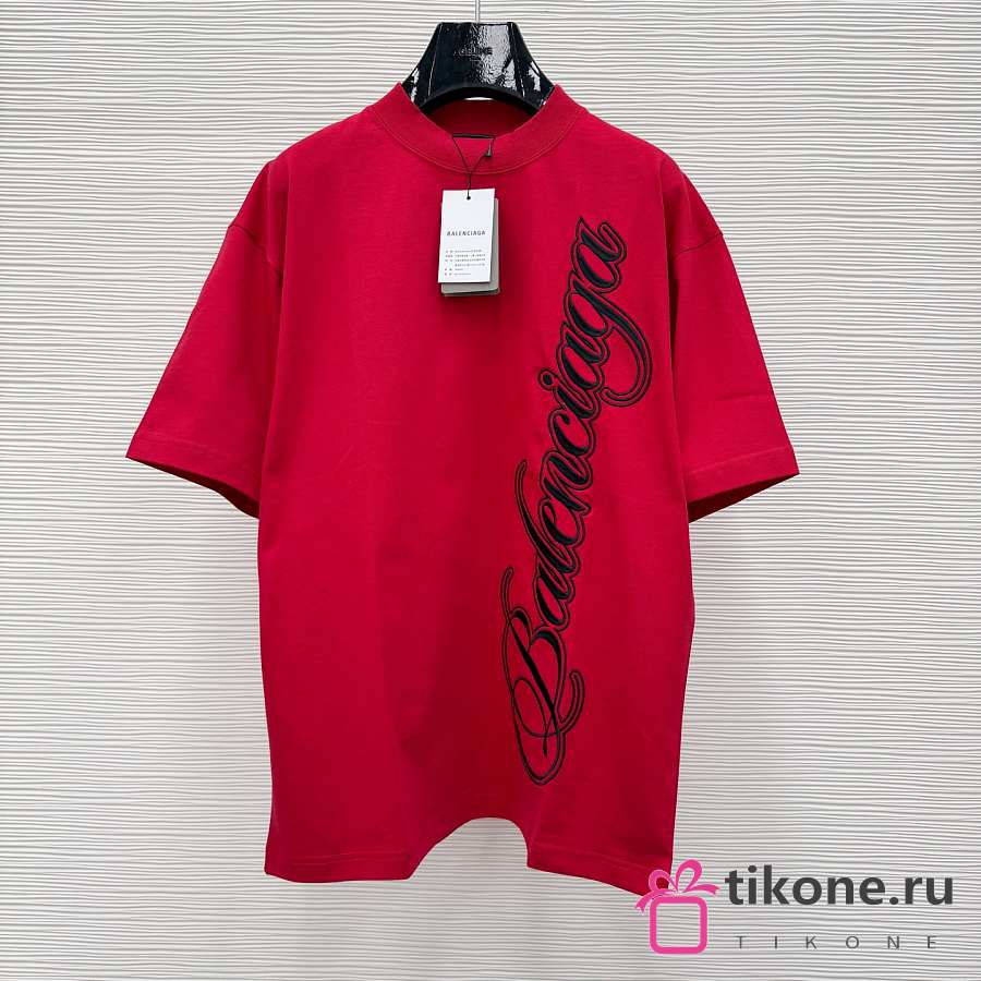 Balenciaga Cursive T-shirt Medium Fit in Red/Black