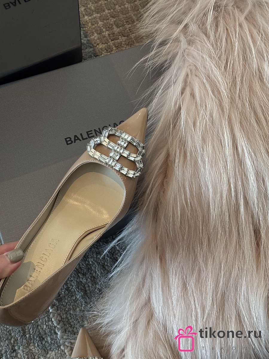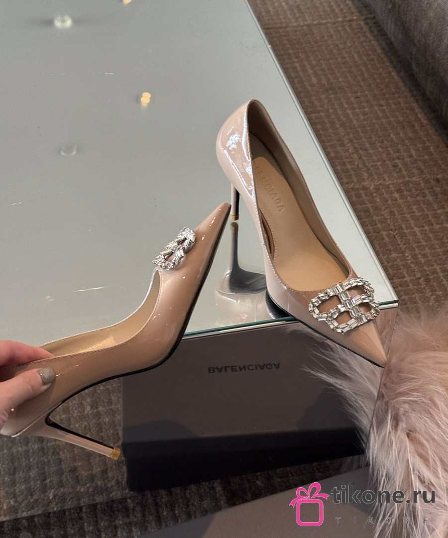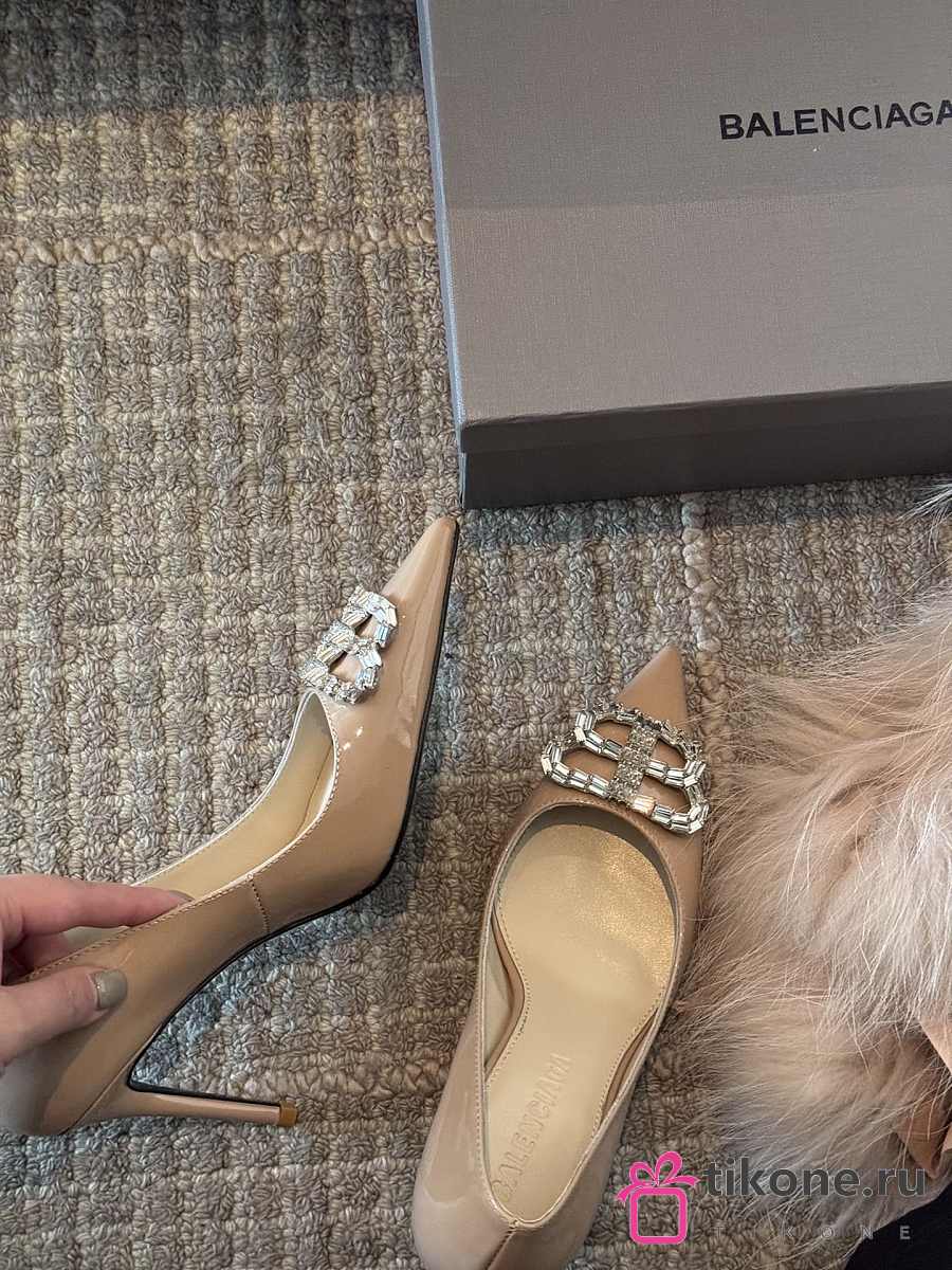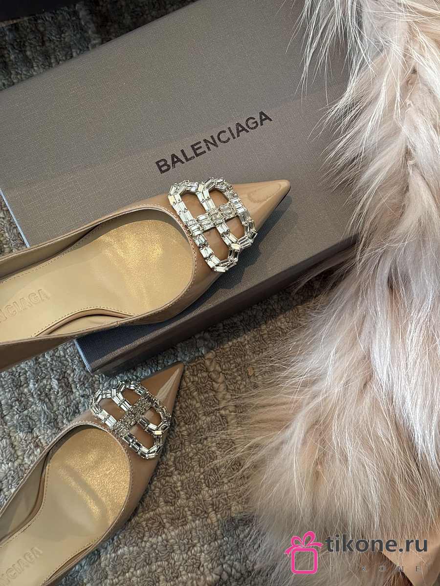 Balenciaga Diamond Buckle Heeled Sandals Beige Patent 8.5cm