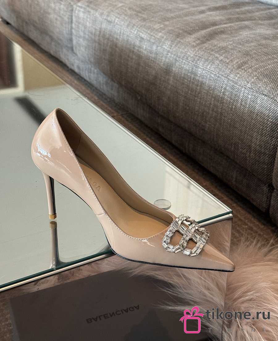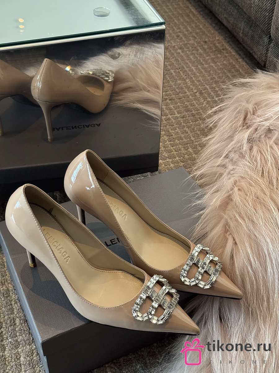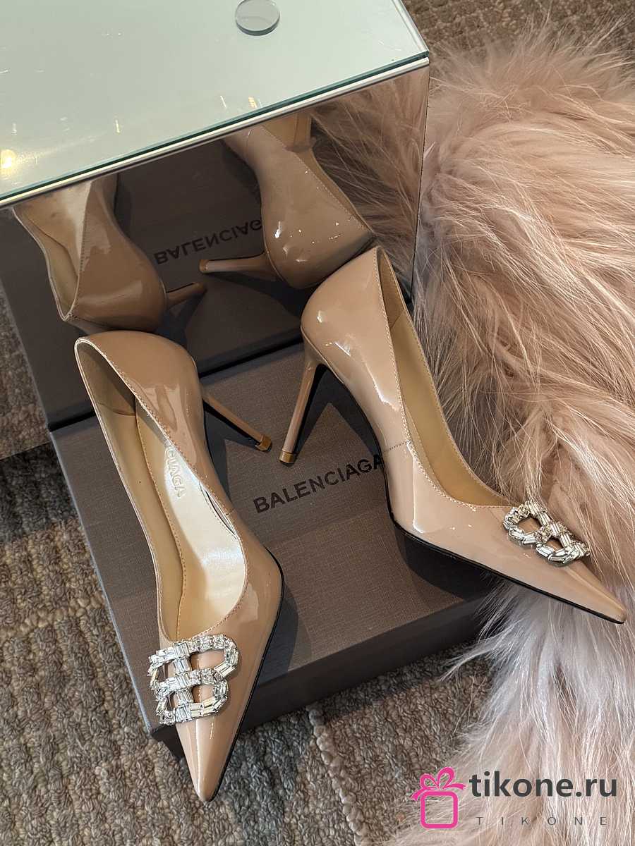 Balenciaga Diamond Buckle Heeled Sandals Beige Patent 8.5cm