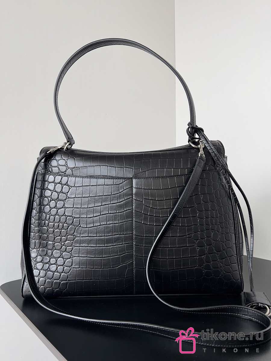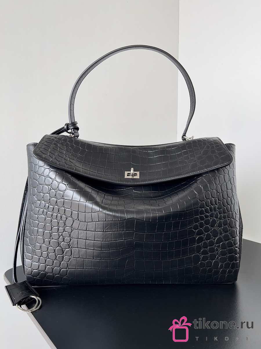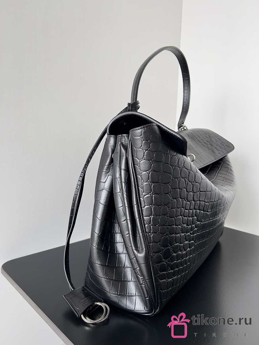 Balenciaga Rodeo Large Handbag in Crocodile Embossed Black Silver Hardware - 40x30x13cm