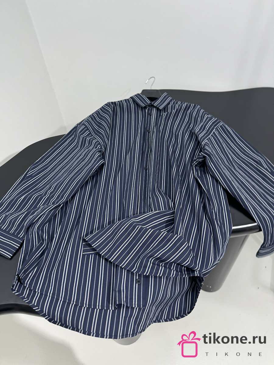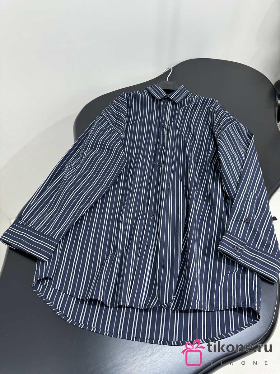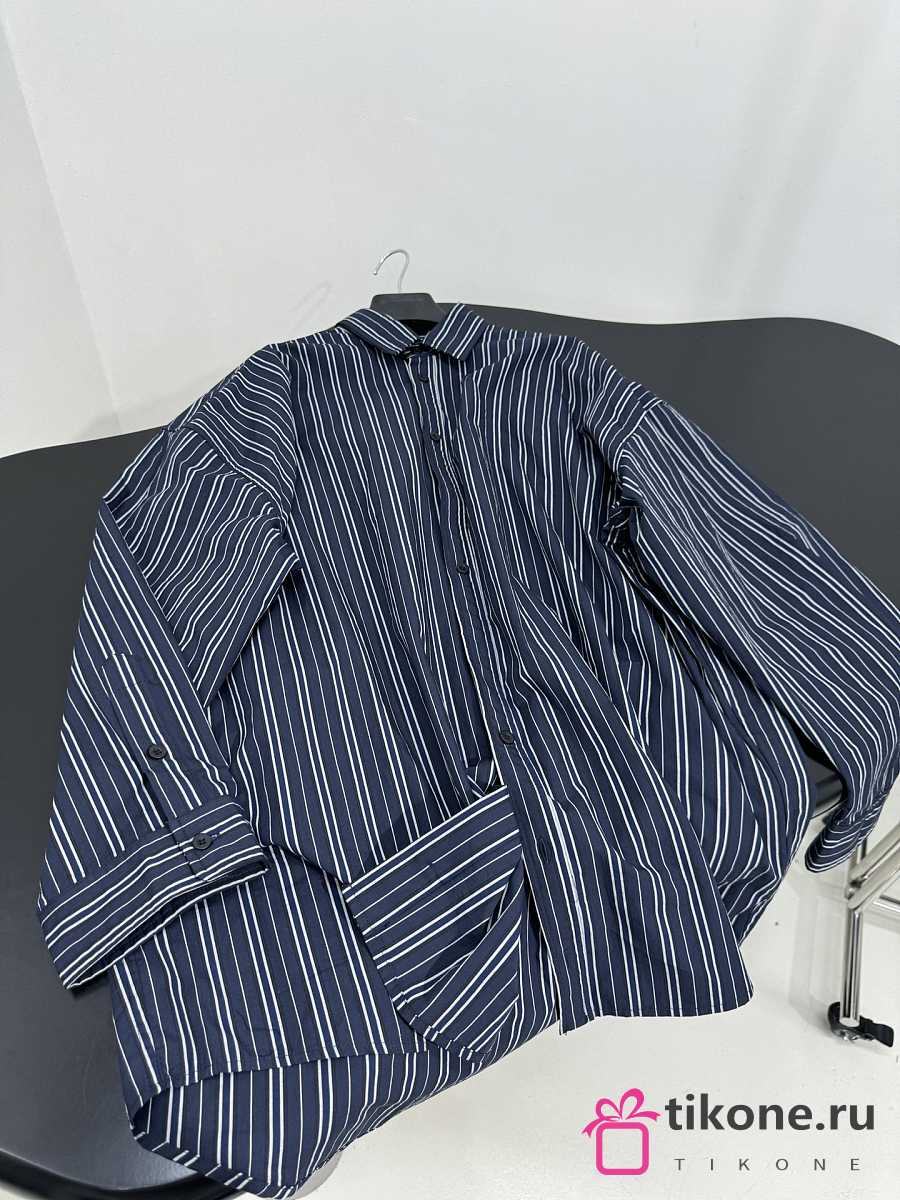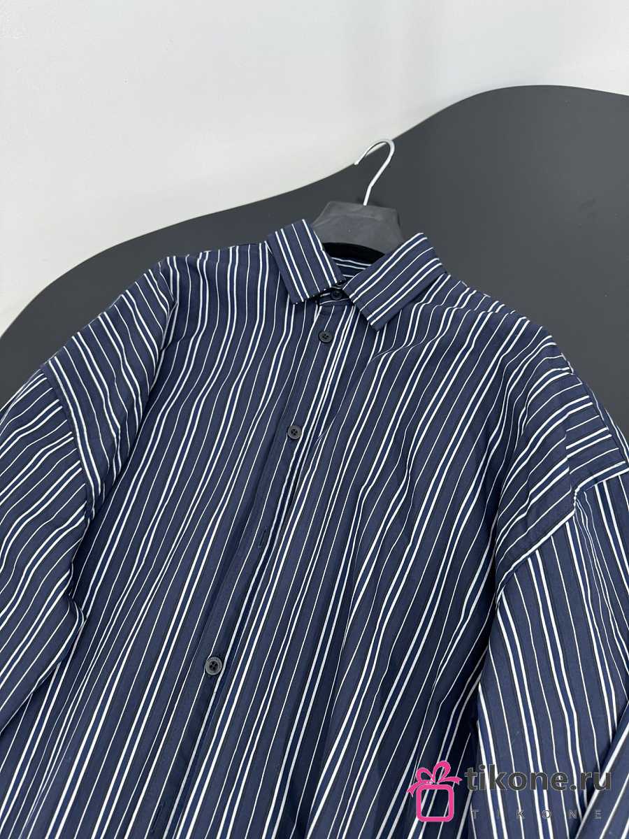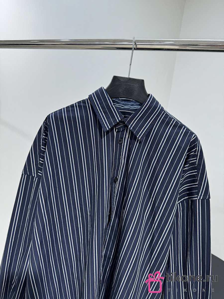 Balenciaga Stripe Cotton Mini Shirt Dress In Blue