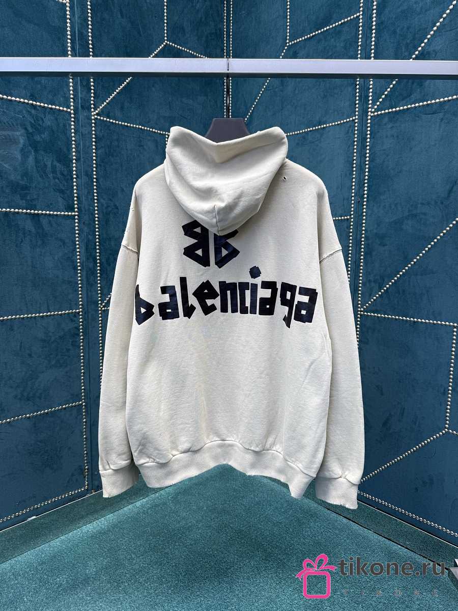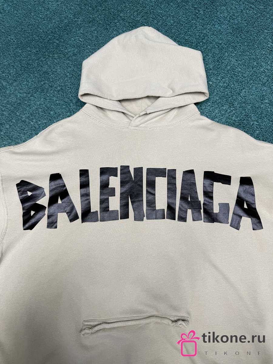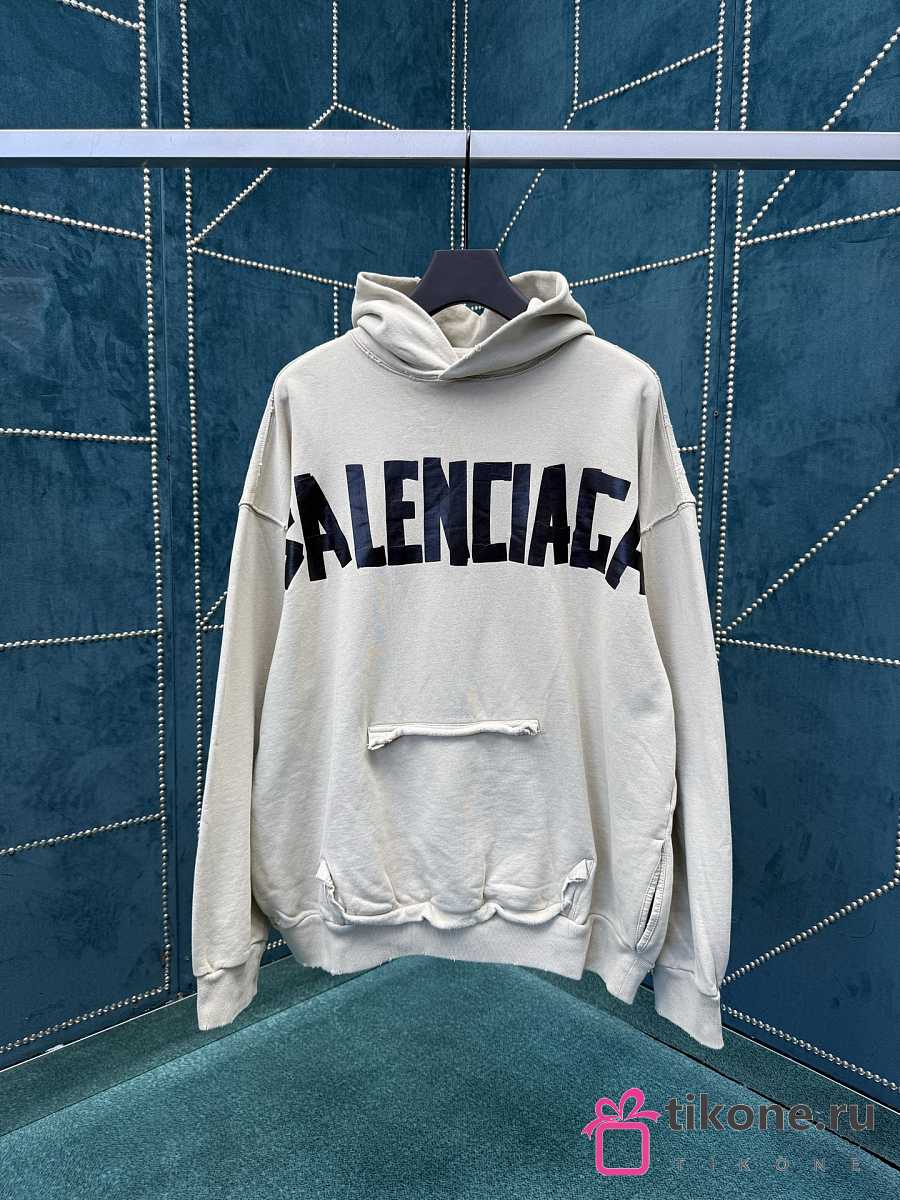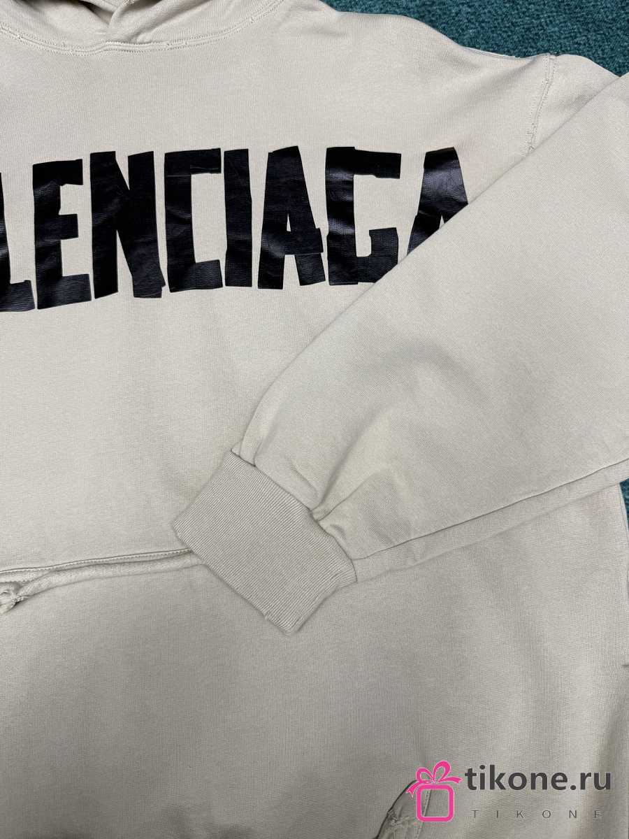 Balenciaga Tape Type Ripped Hoodie In Beige Dry Fleece