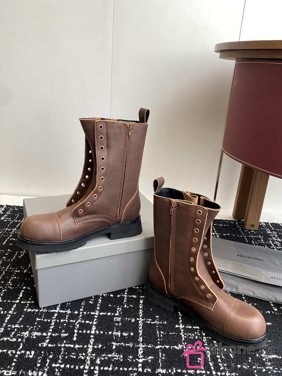 Chanel Mid-Calf Boots Suede Calfskin & Calfskin Brown Black 3.5cm