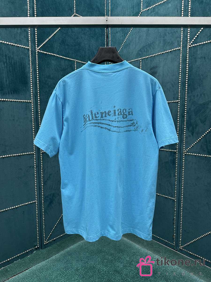 Balenciaga Washed Crayon Political T-Shirt Medium Fit In Azure Dry Jersey