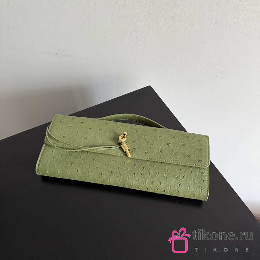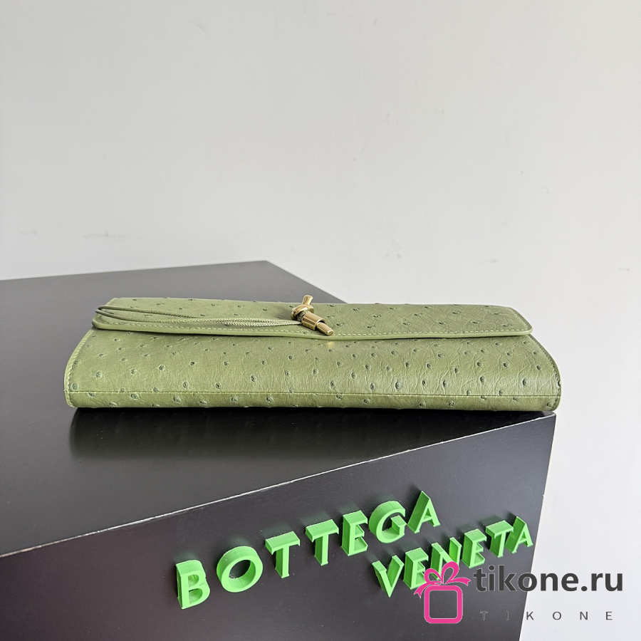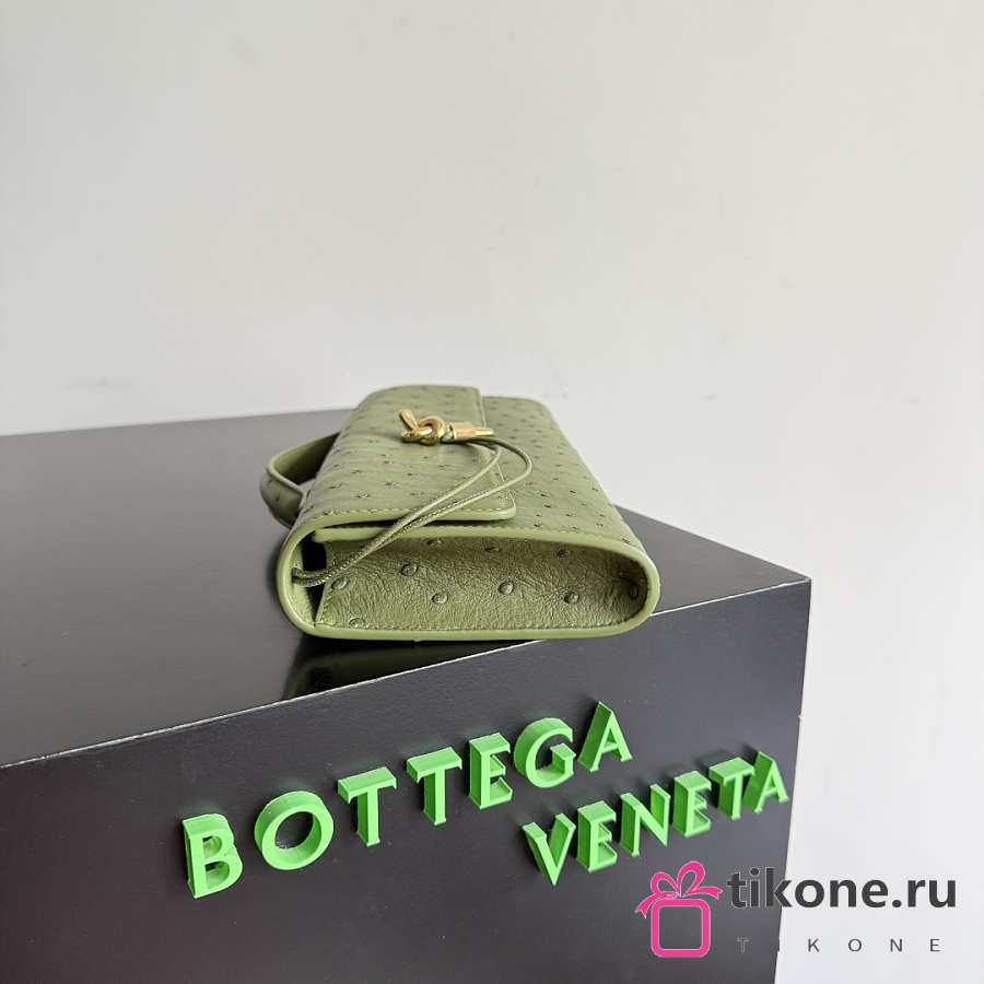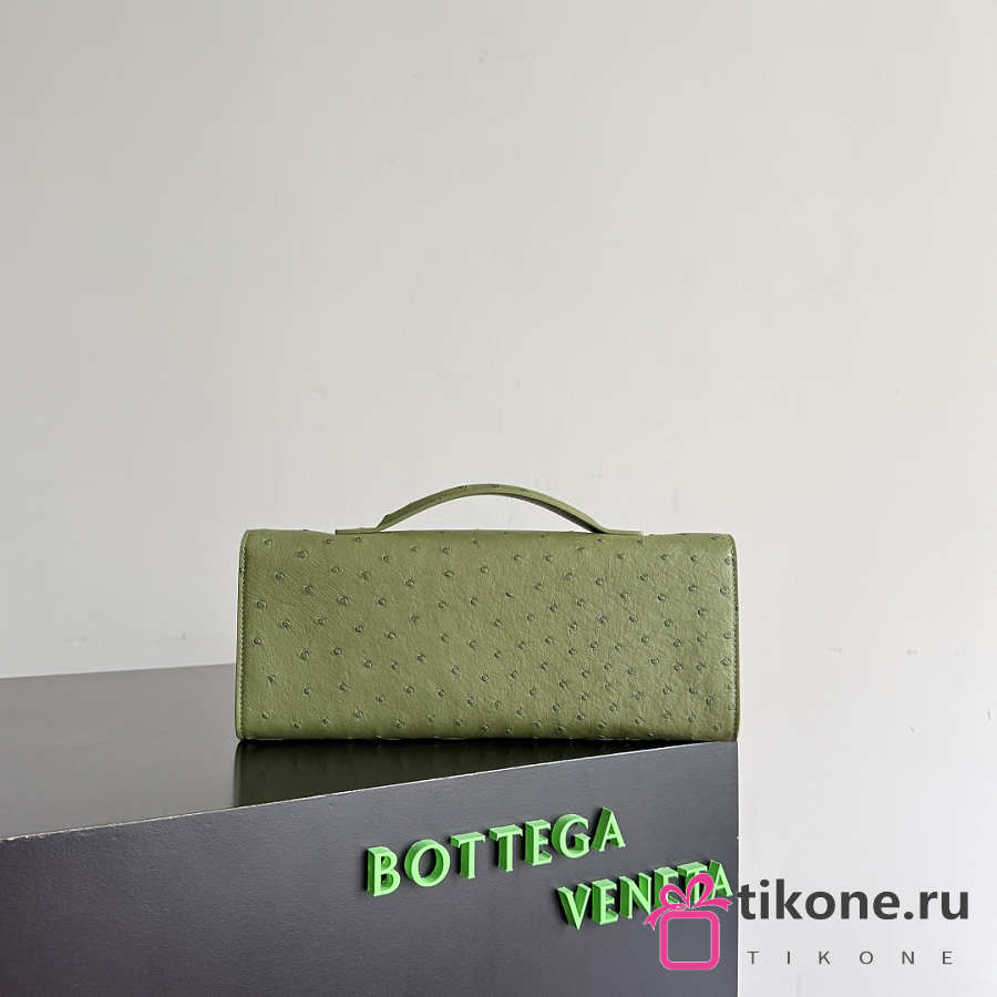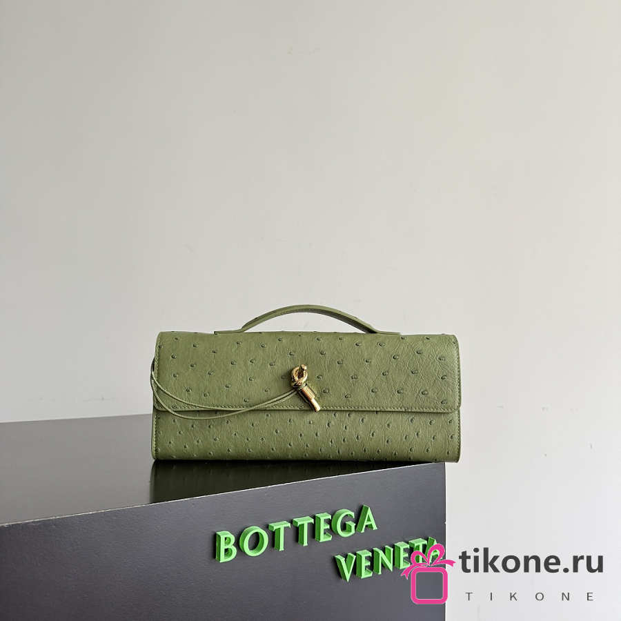 Bottega Veneta Andiamo Clutch in Ostrich Leather Matcha - 31x13x3cm