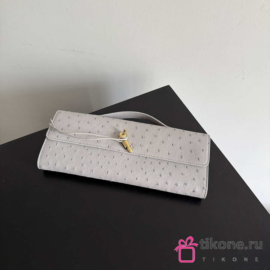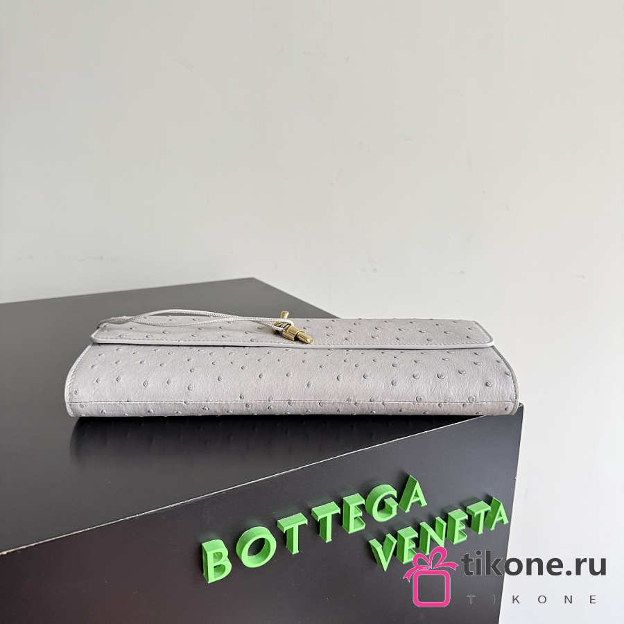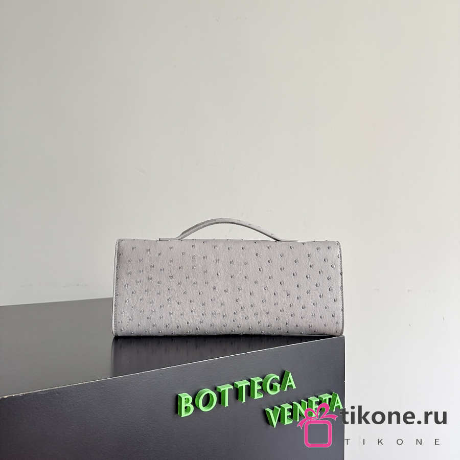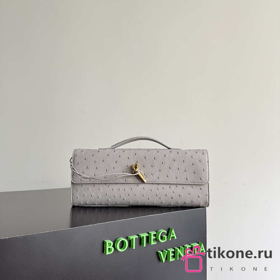 Bottega Veneta Andiamo Clutch in Ostrich Leather Sterling - 31x13x3cm