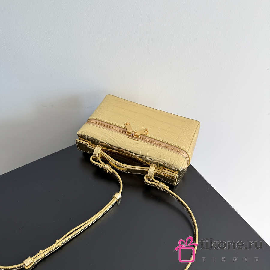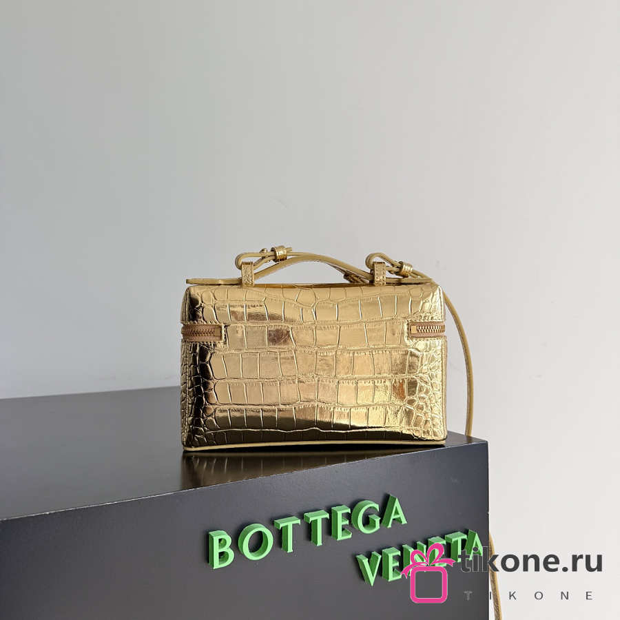 Bottega Veneta Bang Bang Vanity Case Crocodile Gold - 23x12.5x4cm