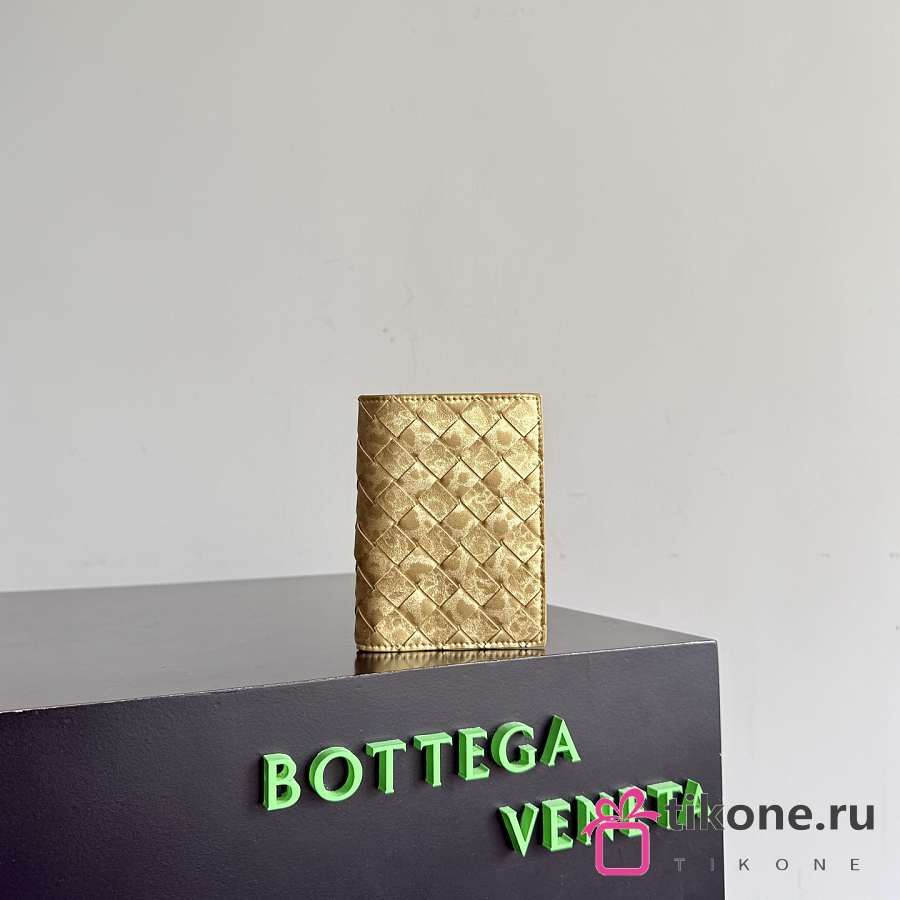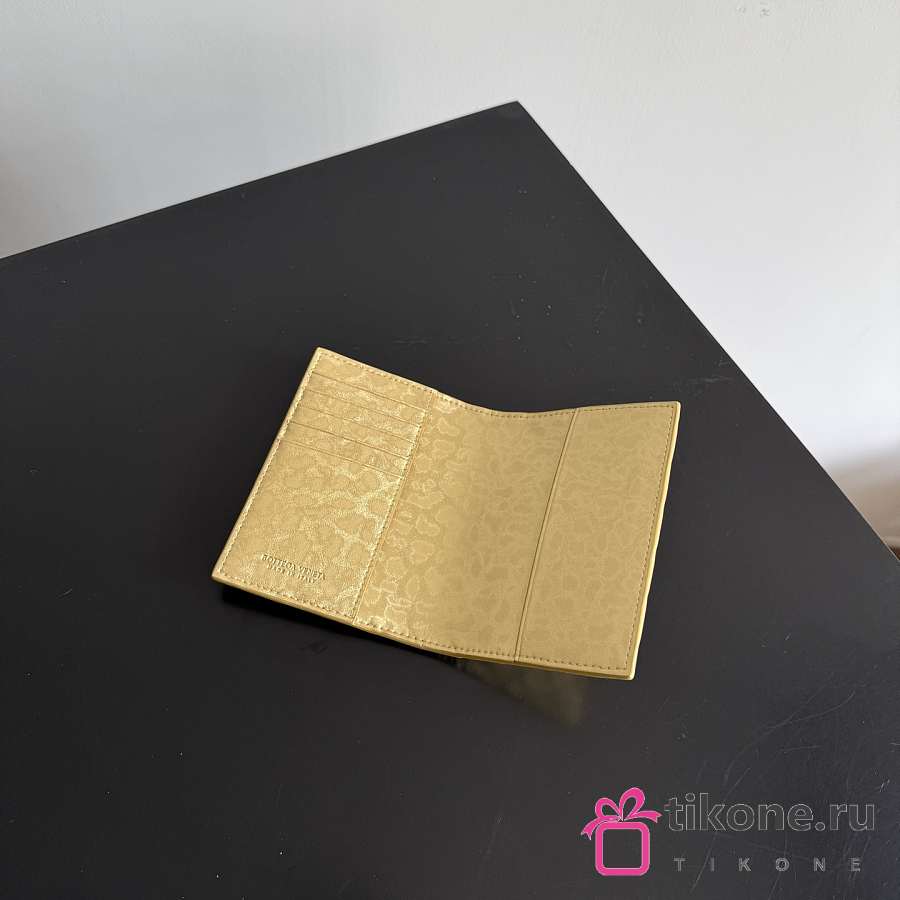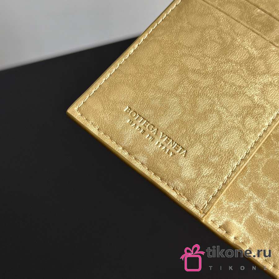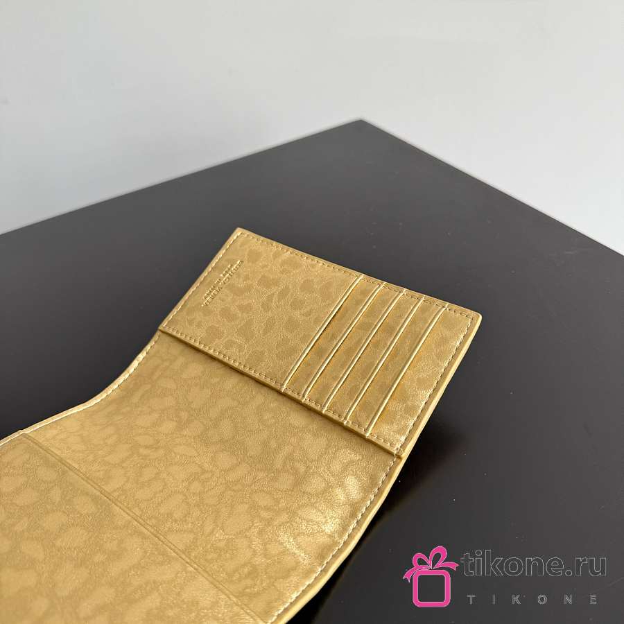 Bottega Veneta Intrecciato Passport Case in Lamina Satin Leather Gold - 13.6x9.5x0.5cm