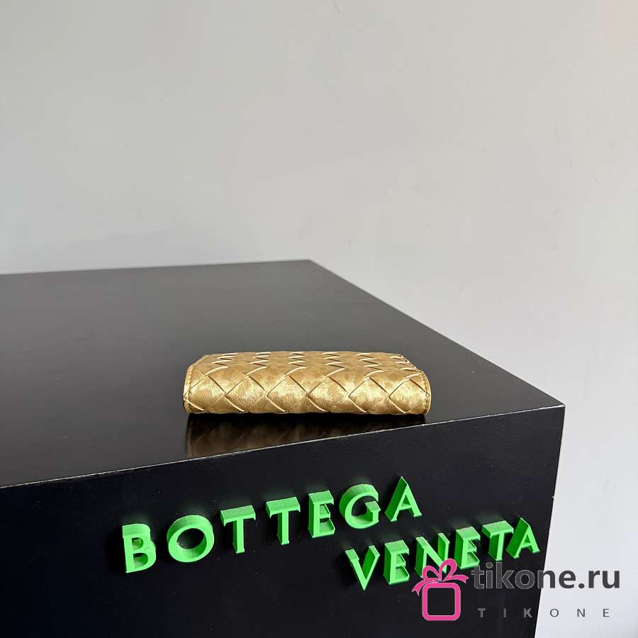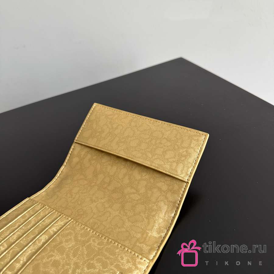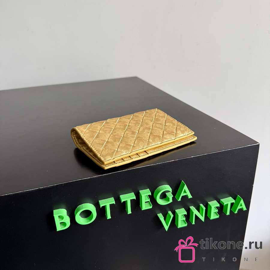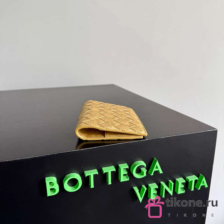 Bottega Veneta Intrecciato Passport Case in Lamina Satin Leather Gold - 13.6x9.5x0.5cm