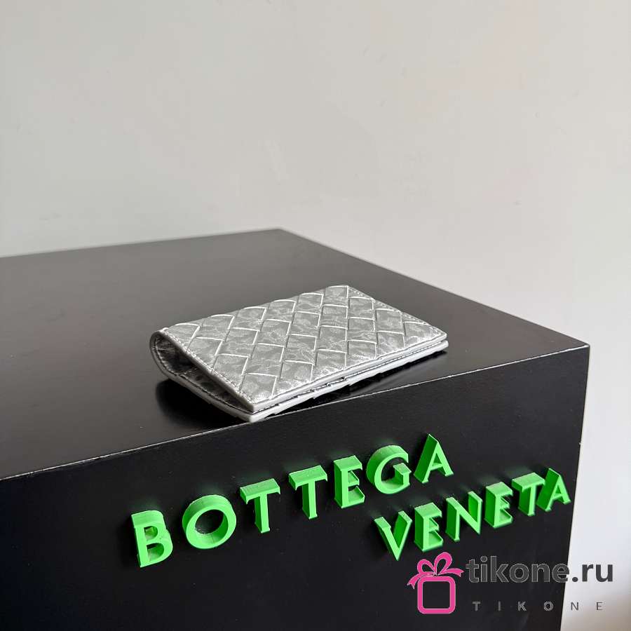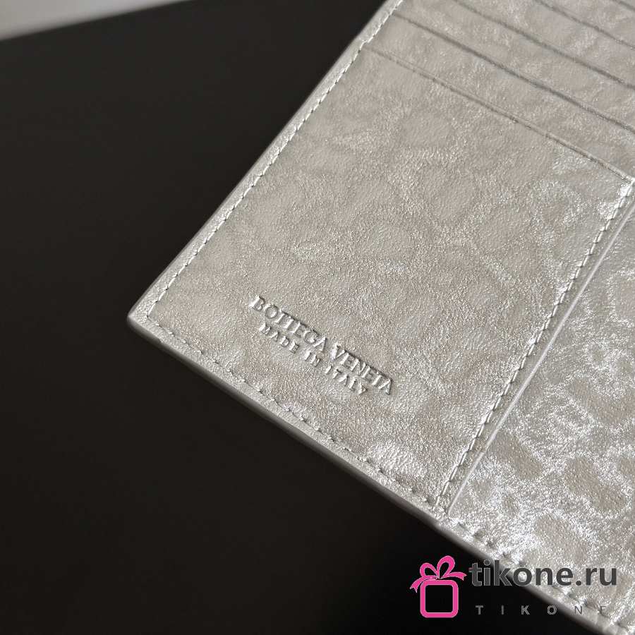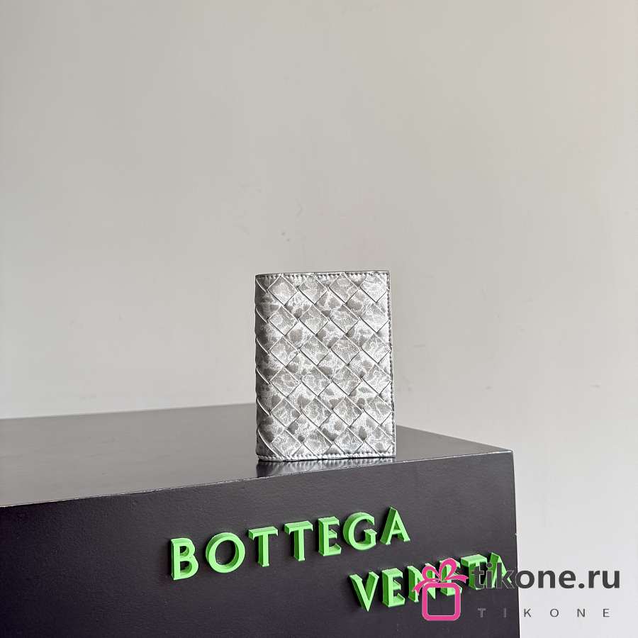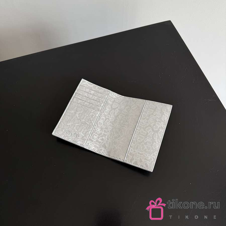 Bottega Veneta Intrecciato Passport Case in Lamina Satin Leather Silver - 13.6x9.5x0.5cm