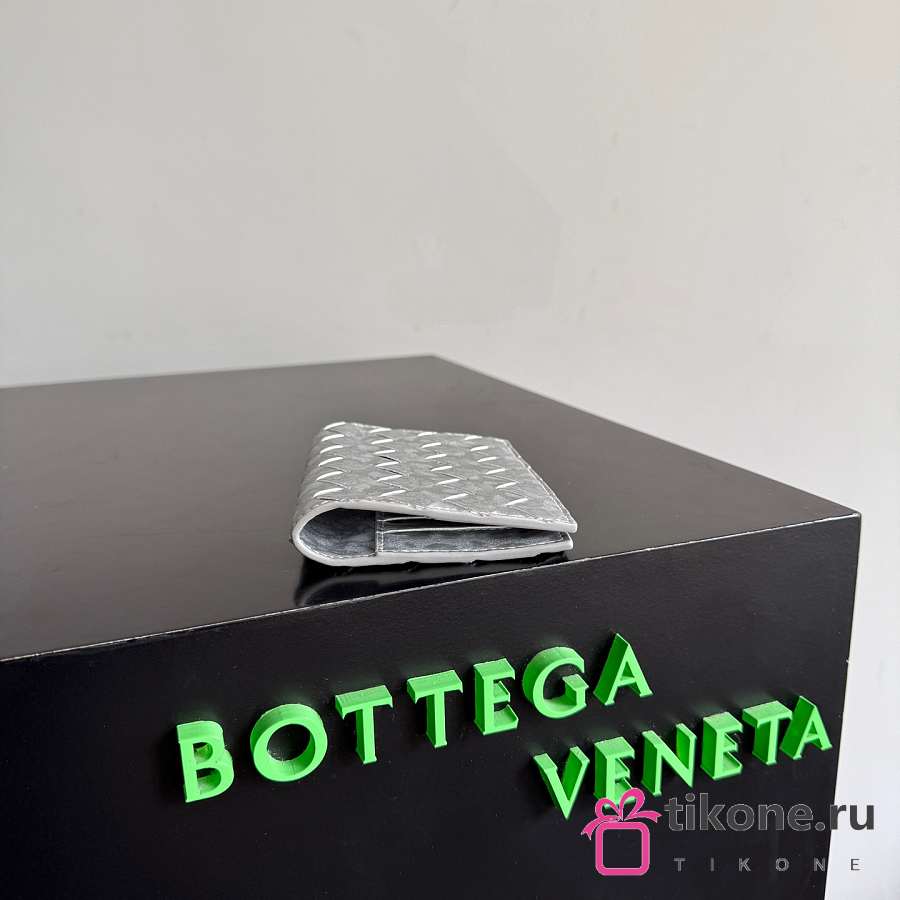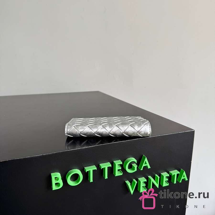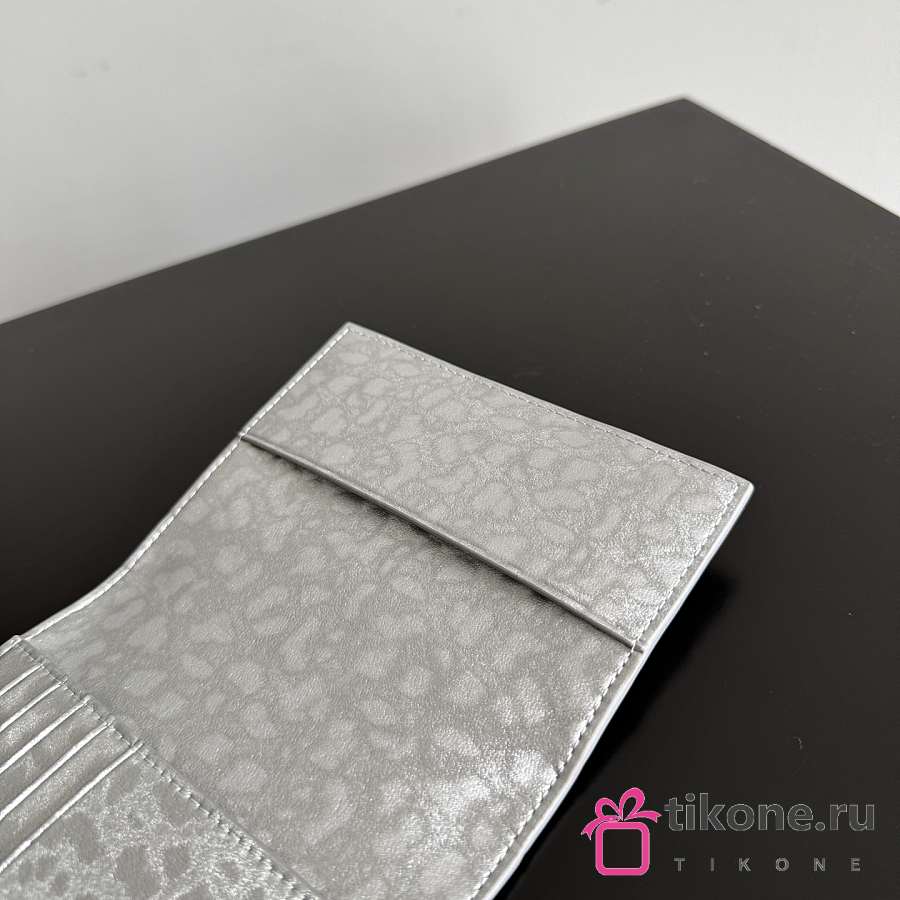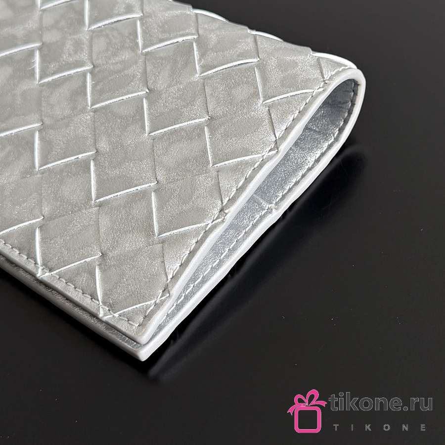 Bottega Veneta Intrecciato Passport Case in Lamina Satin Leather Silver - 13.6x9.5x0.5cm