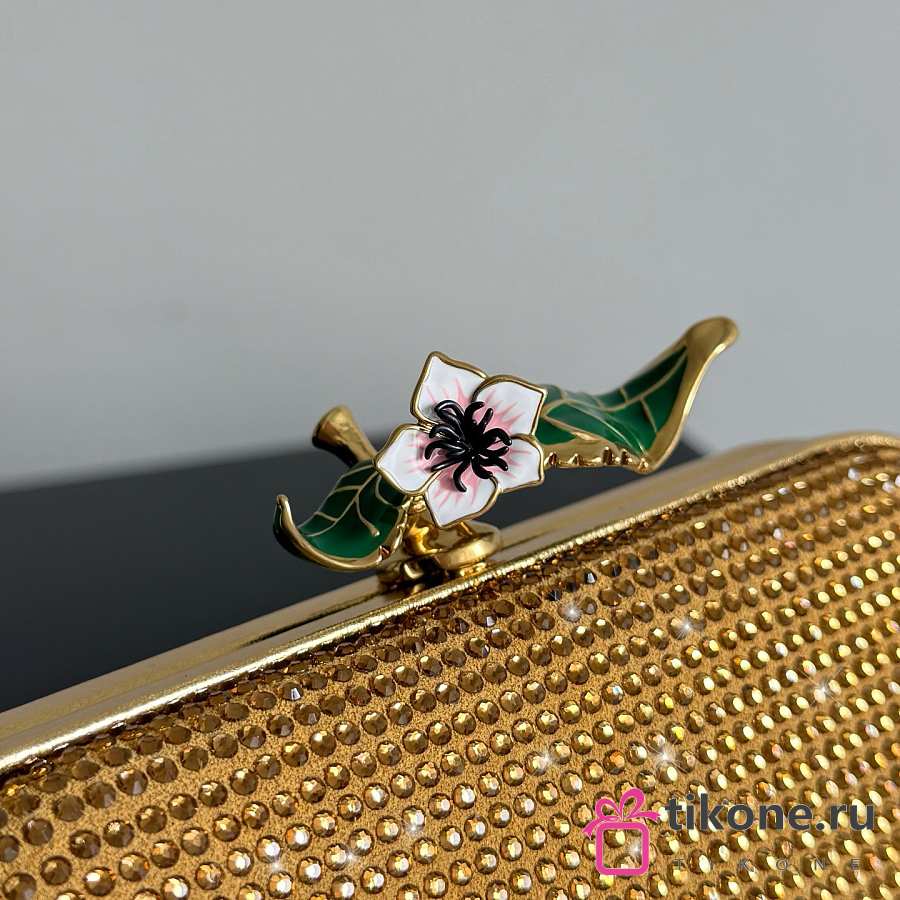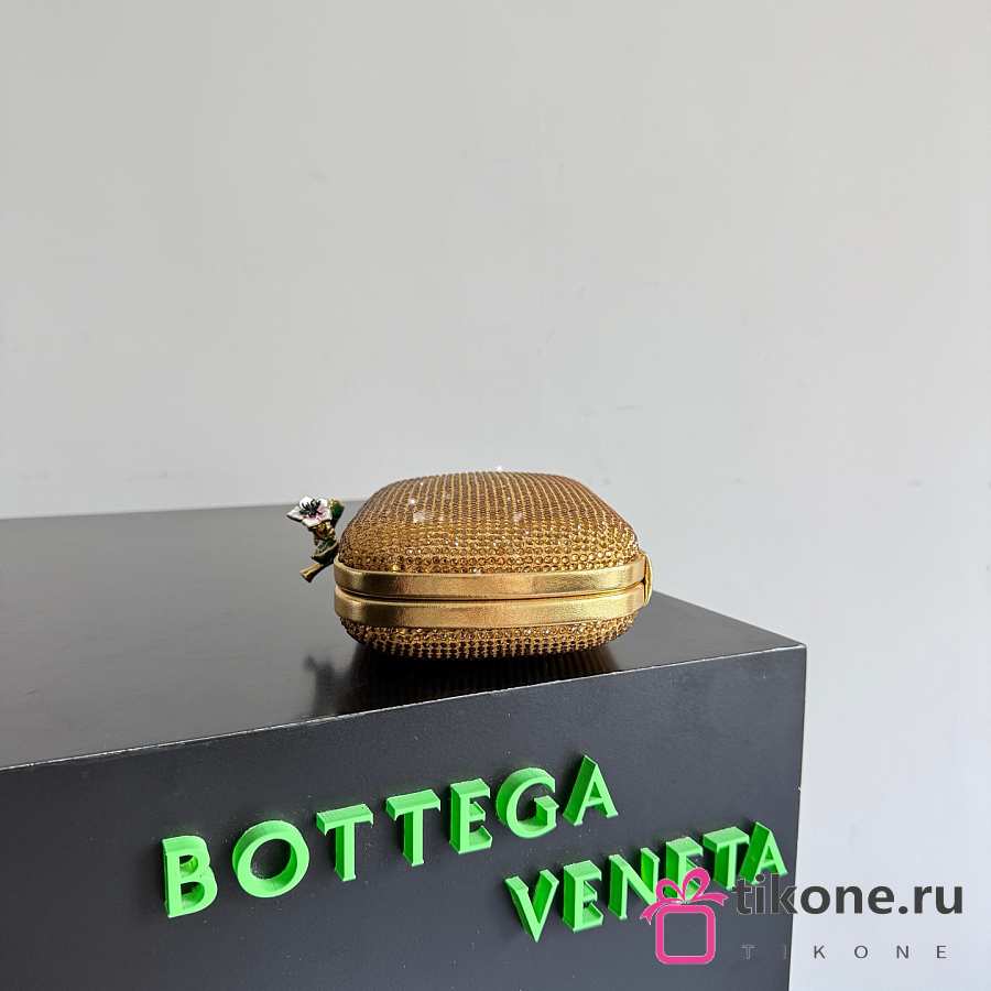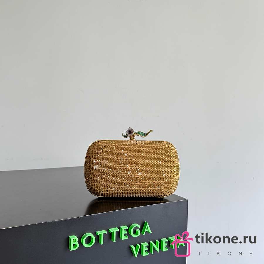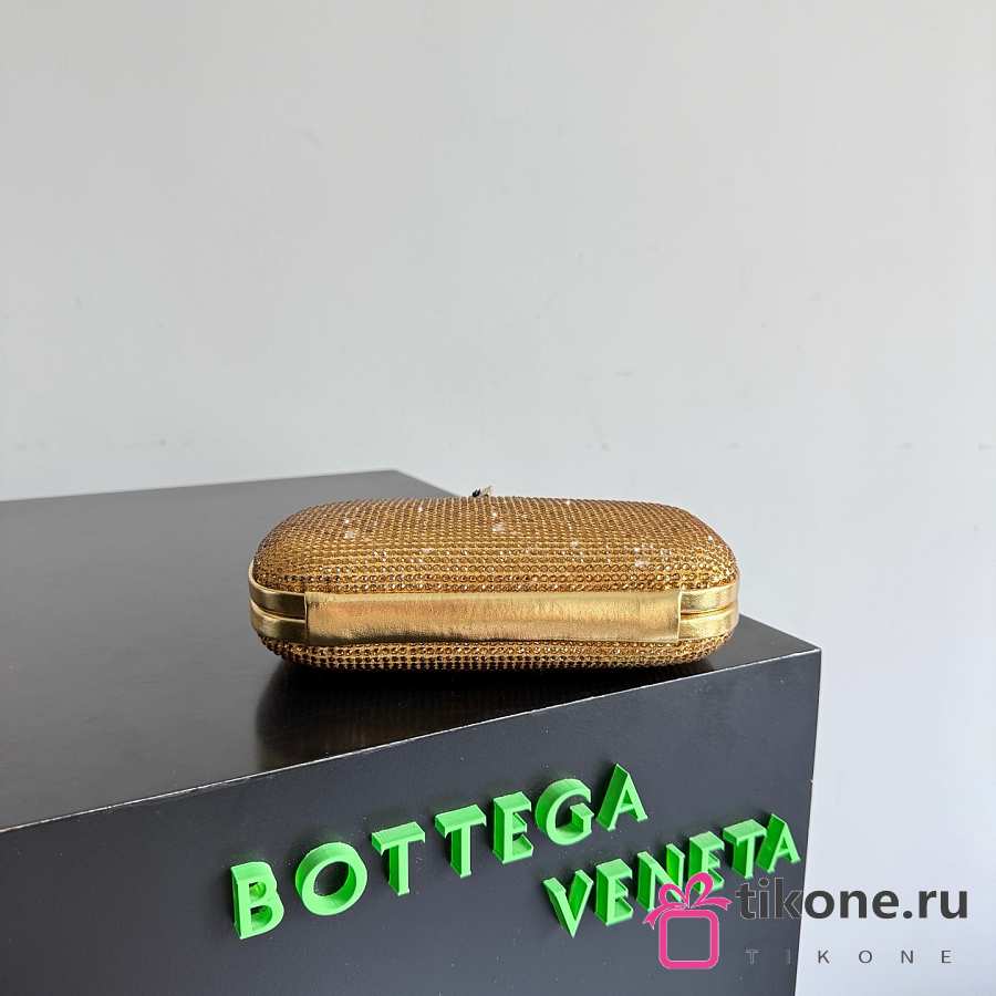 Bottega Veneta Knot Crystal Leather Minaudiere in Gold - 19x11.5x5cm