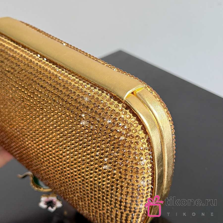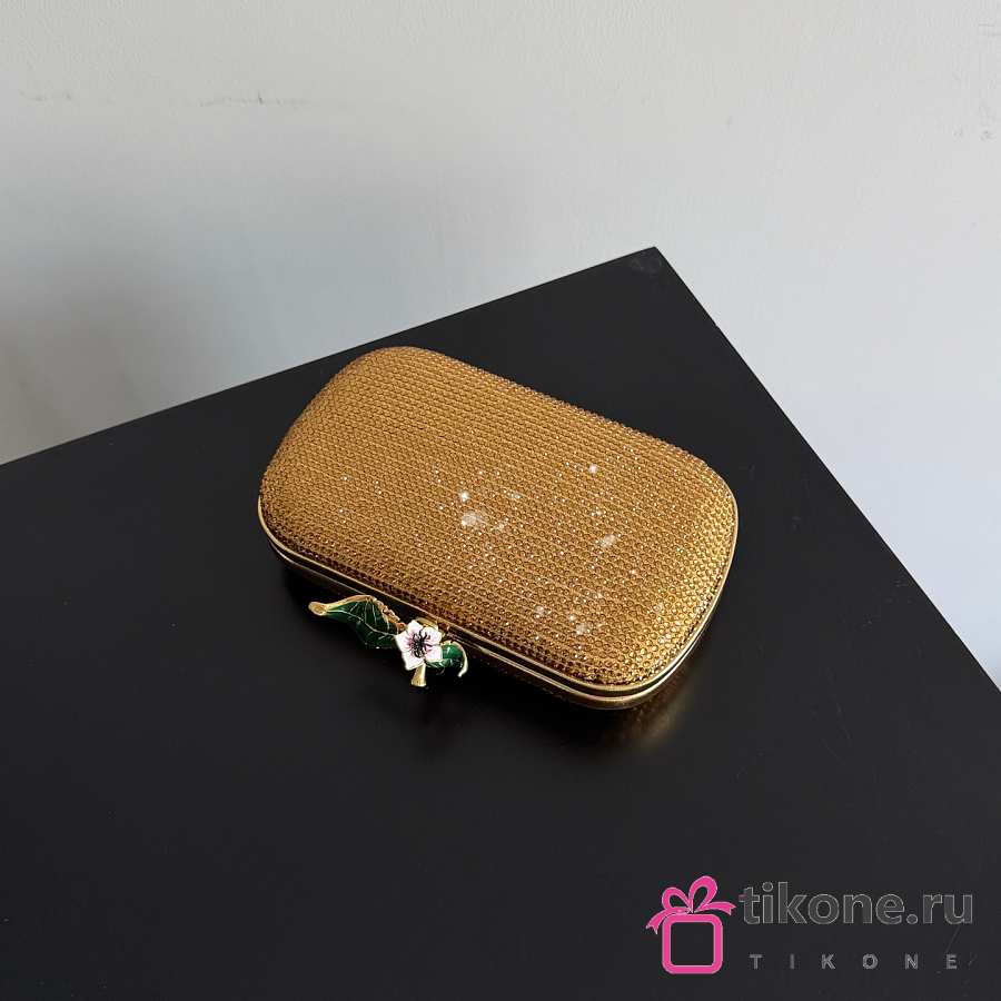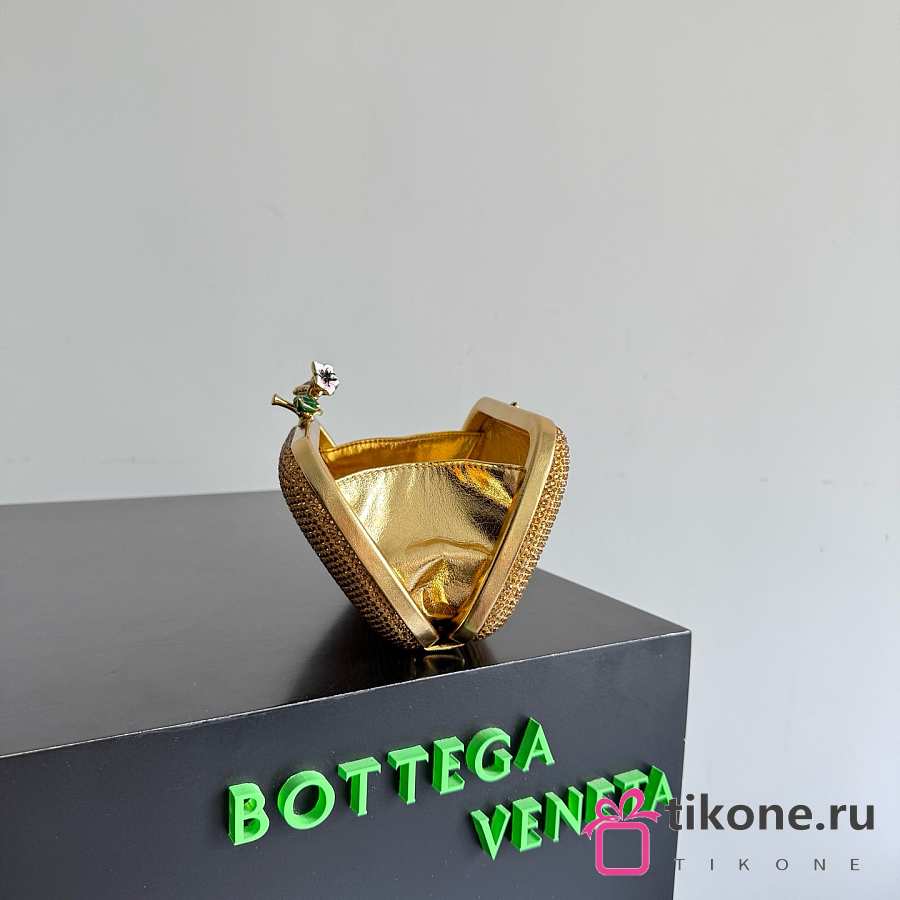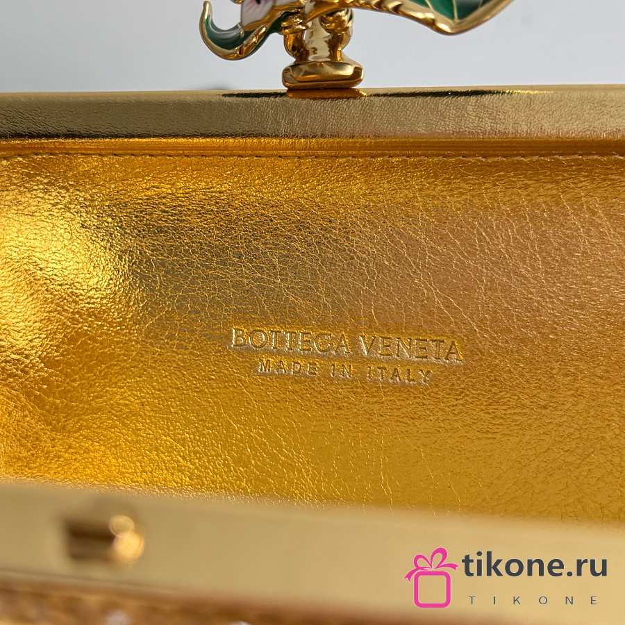 Bottega Veneta Knot Crystal Leather Minaudiere in Gold - 19x11.5x5cm