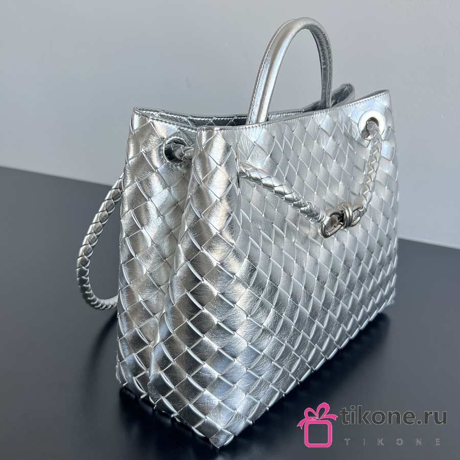 Bottega Veneta Medium Andiamo Foggy Mirror Leather Silver - 32x25x11cm