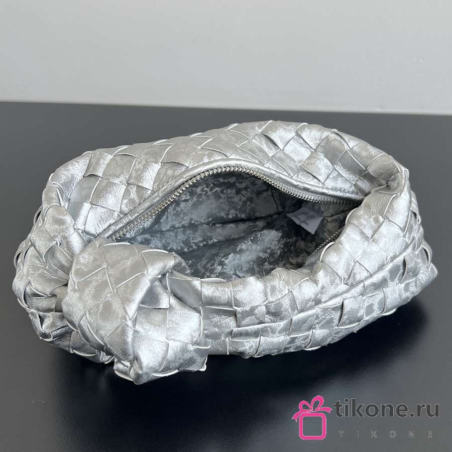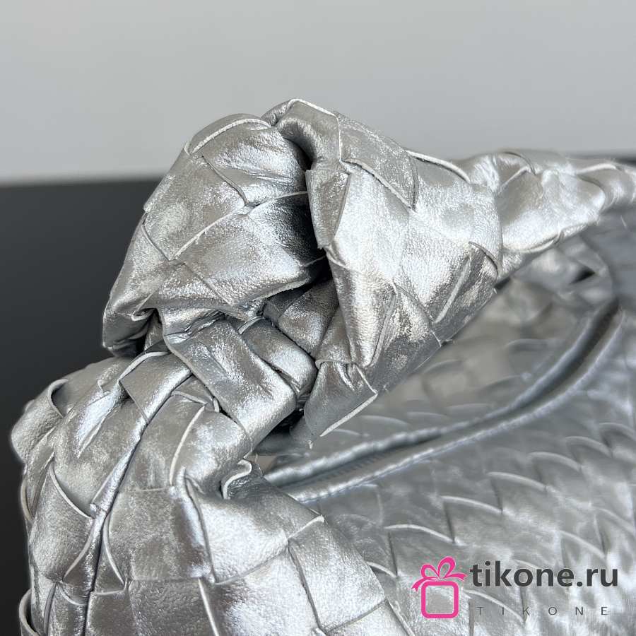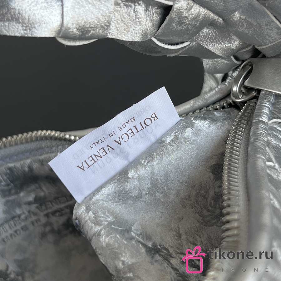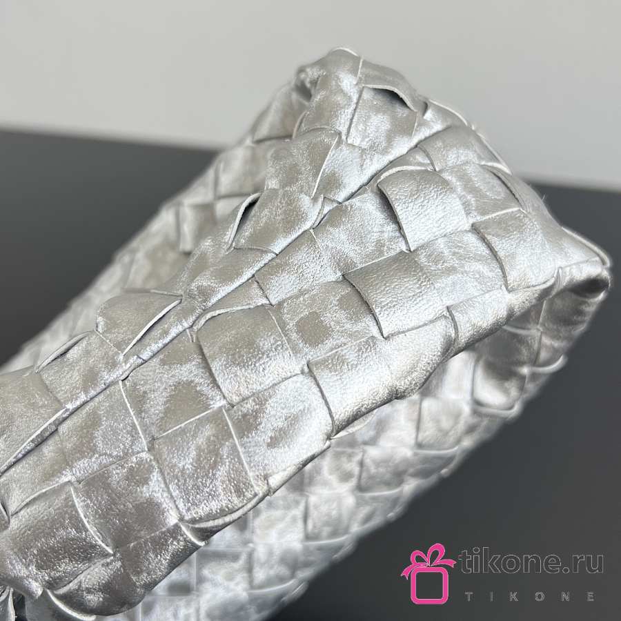 Bottega Veneta Mini Jodie Lamina Satin Leather Silver - 28x23x8cm