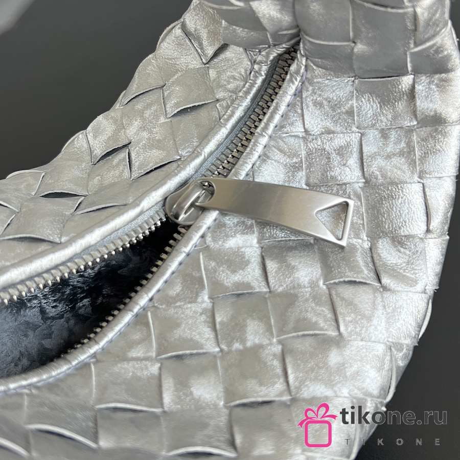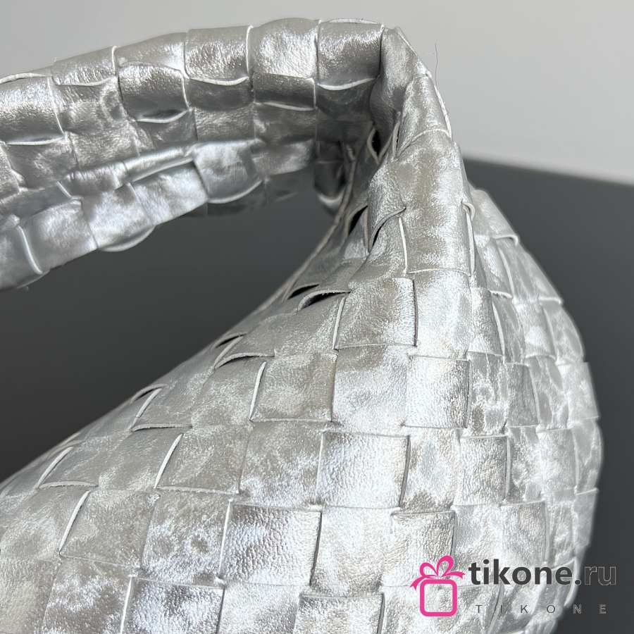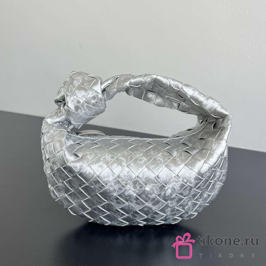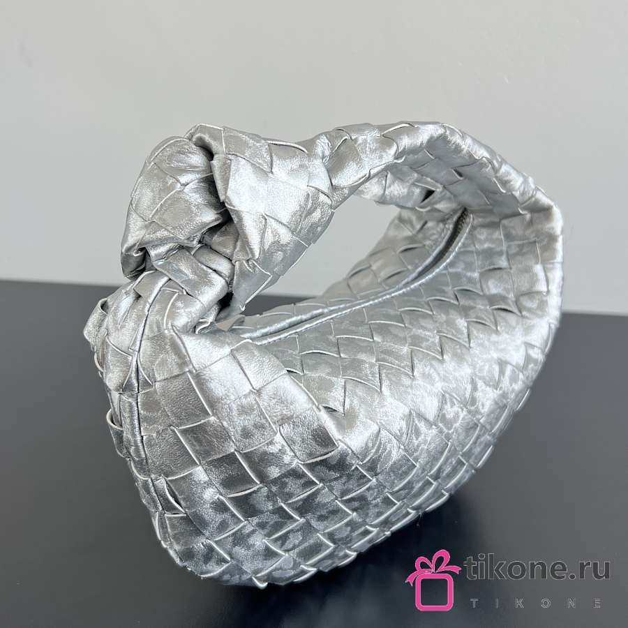 Bottega Veneta Mini Jodie Lamina Satin Leather Silver - 28x23x8cm