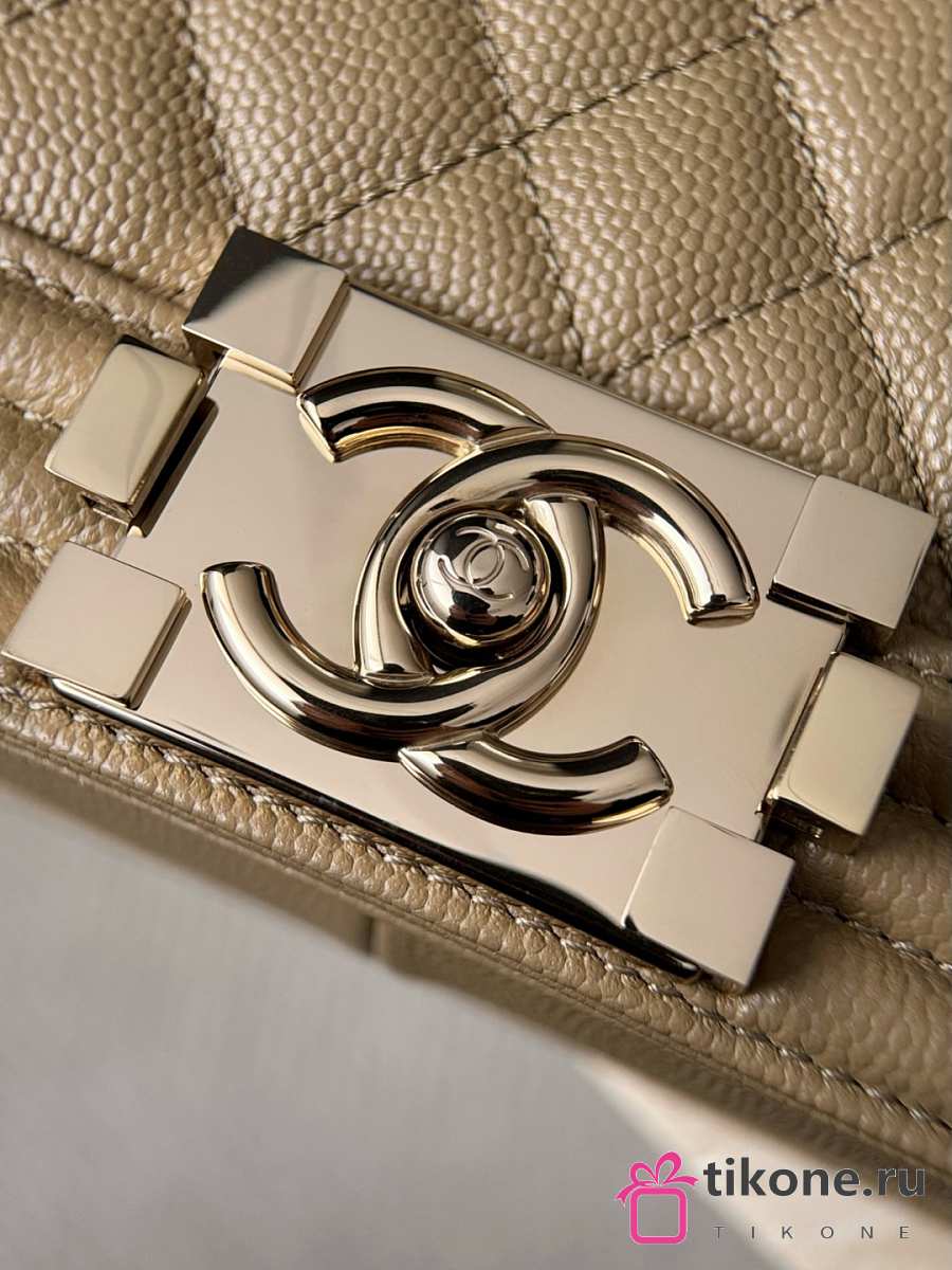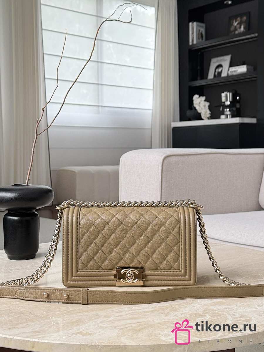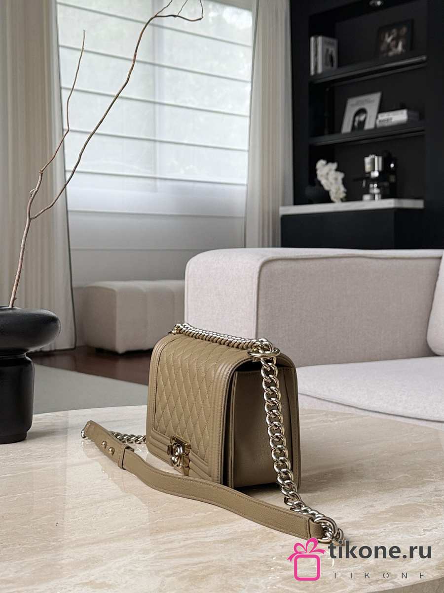 Boy Chanel Handbag Grained Calfskin & Light Gold-Tone Metal Dark Beige - 25x15x9cm
