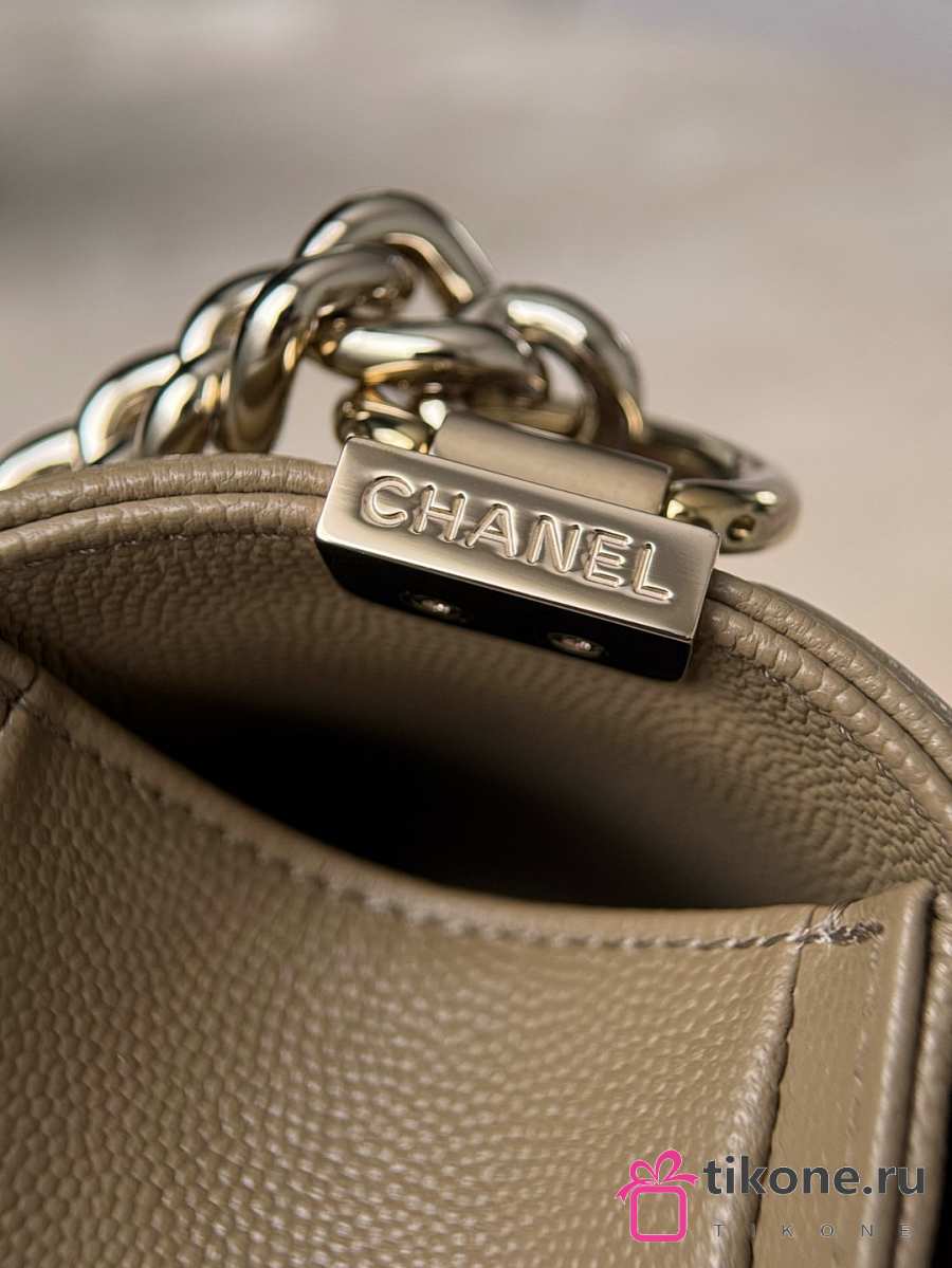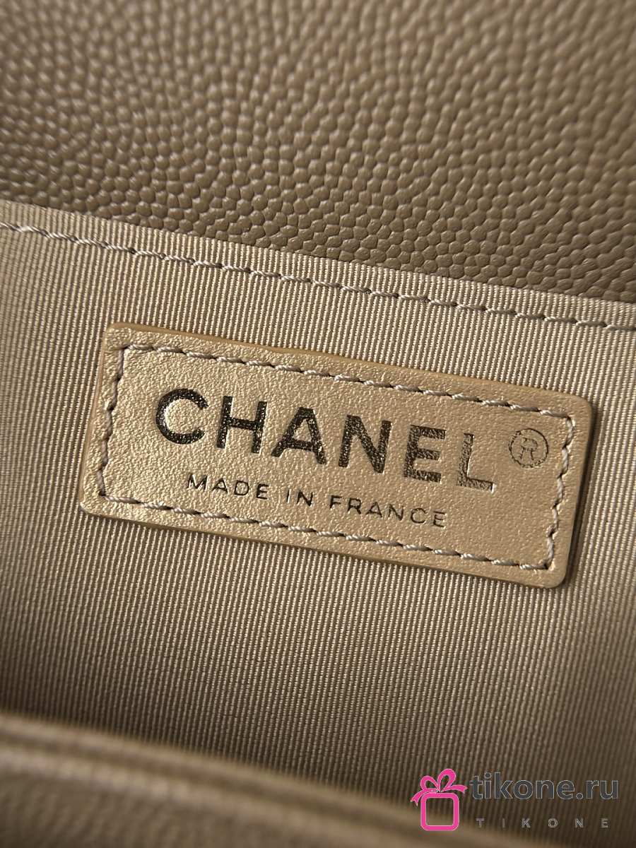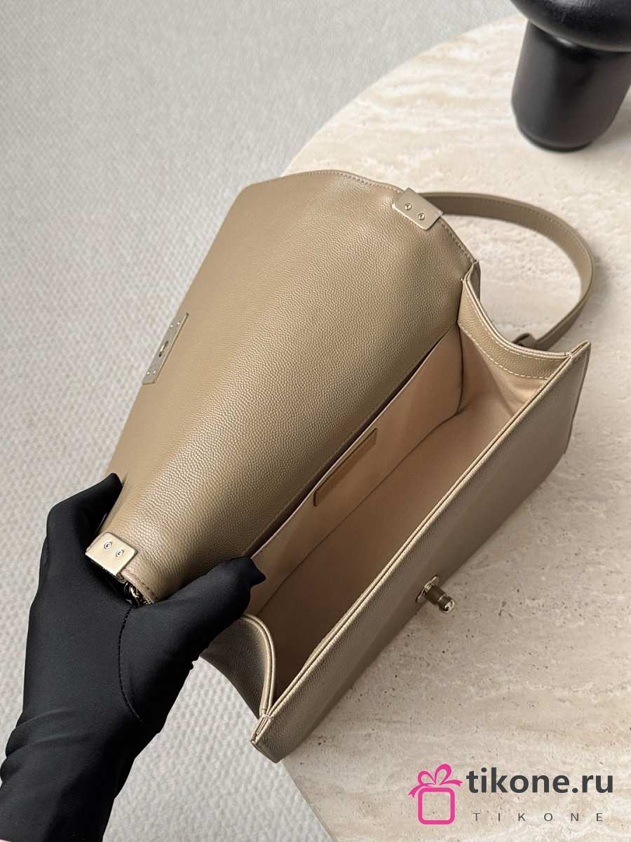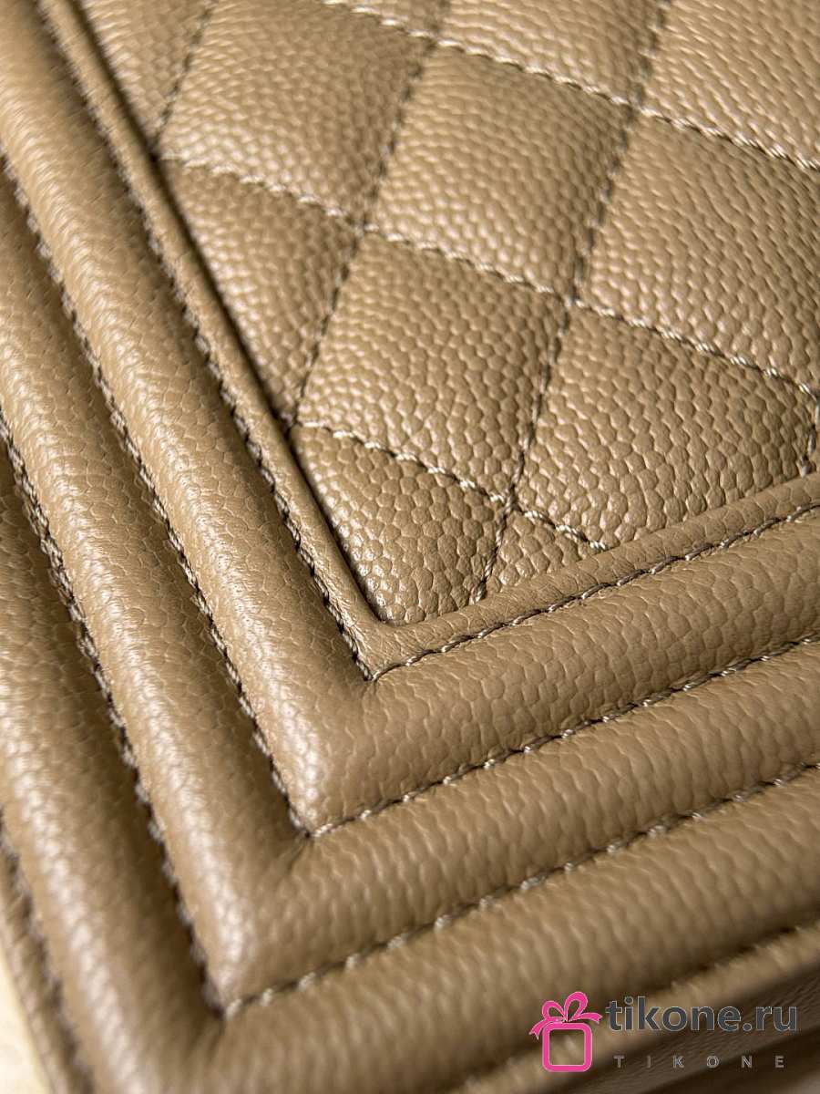 Boy Chanel Handbag Grained Calfskin & Light Gold-Tone Metal Dark Beige - 25x15x9cm