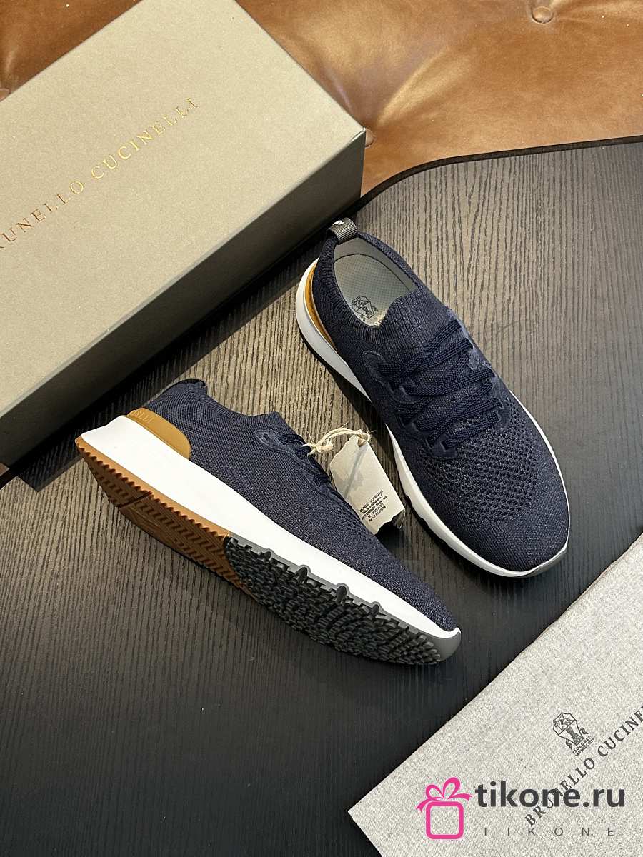 Brunello Cucinelli Cotton Chine Knit Runners Azure (CO250)