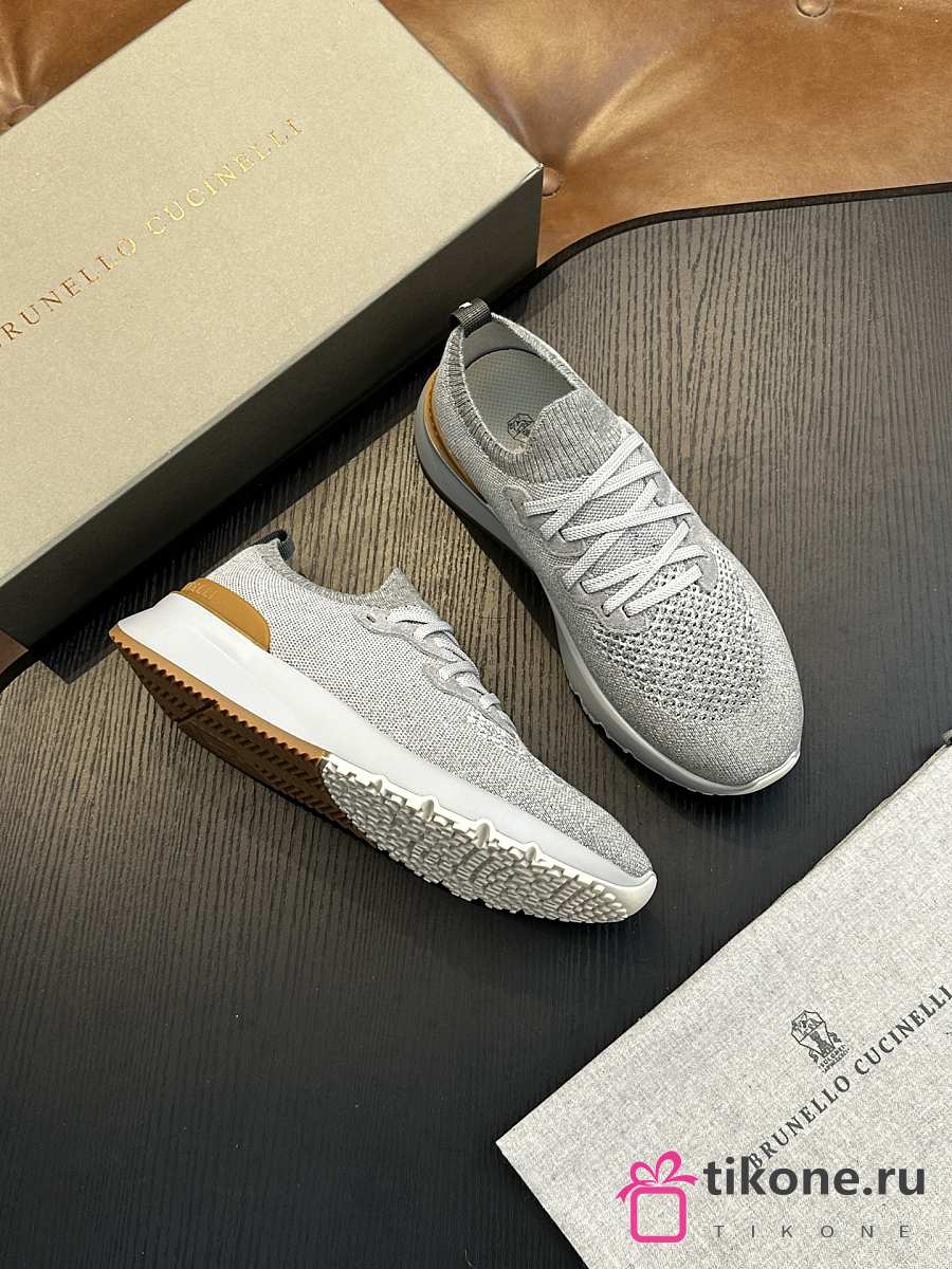 Brunello Cucinelli Cotton Chine Knit Runners Grey (CJN33)